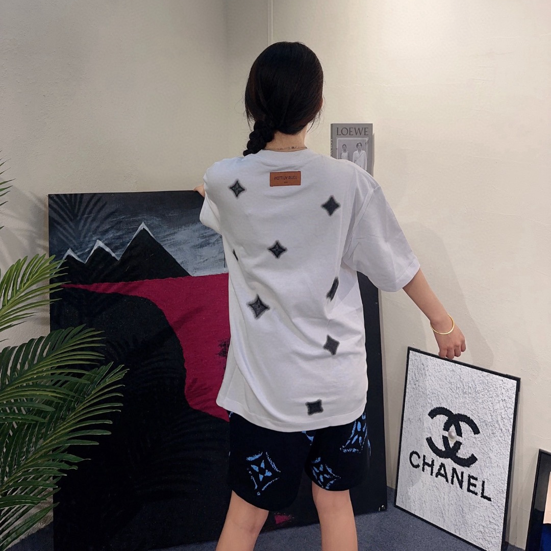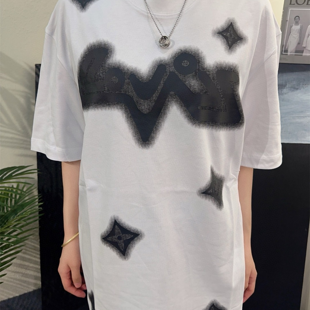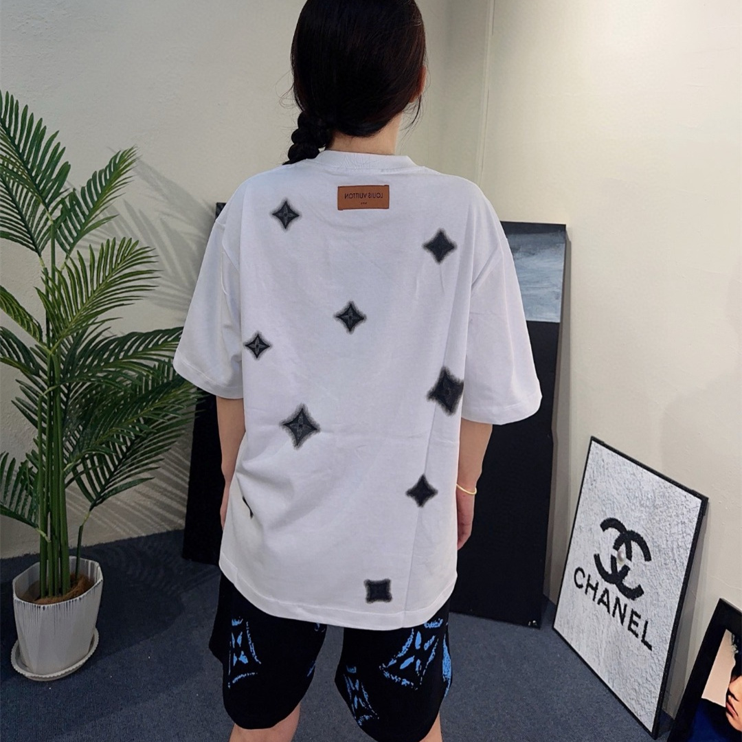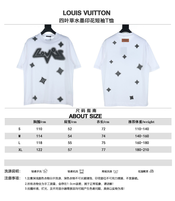 LOUIS VUITTON/路易威登四葉草水墨印花短袖T恤,原版1:1定制定染純棉面料,多次調整才能達到與原版一致的滿印效果.區別市場的一坨沒層次感的印花,頂級版本,男女同款.