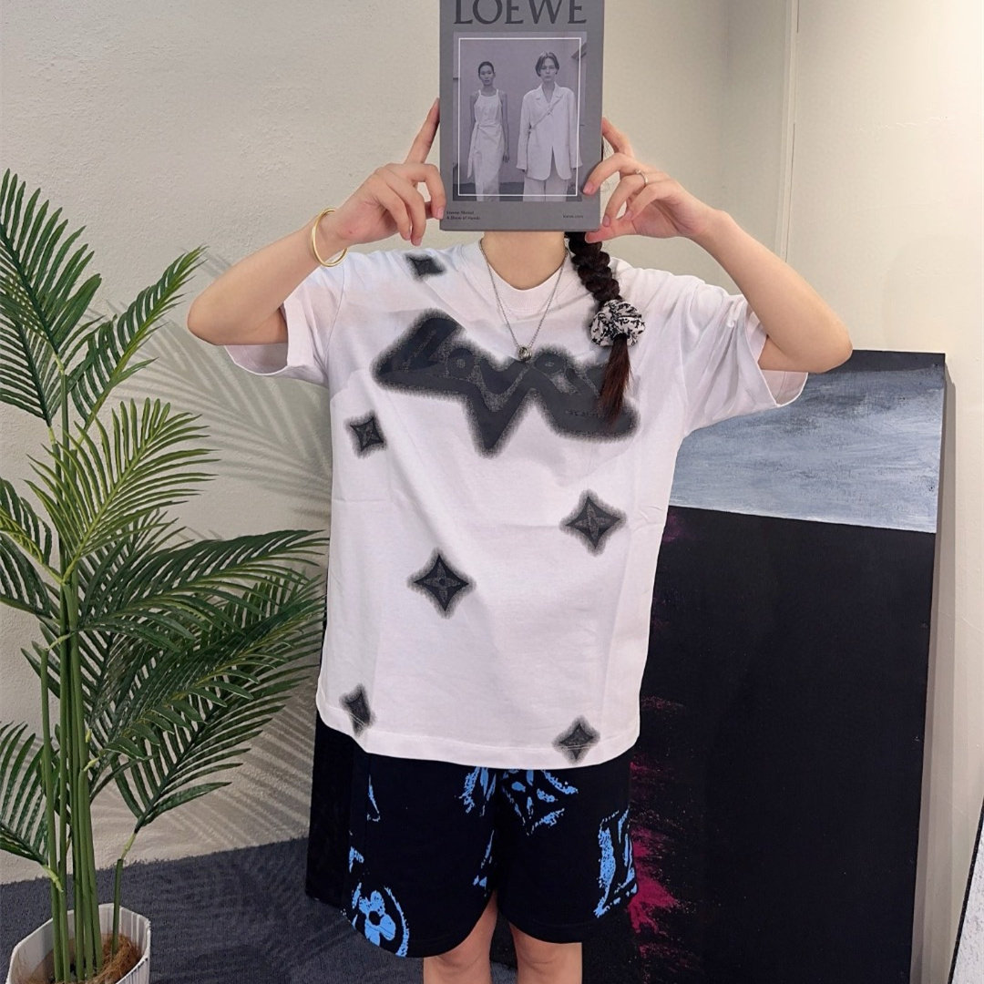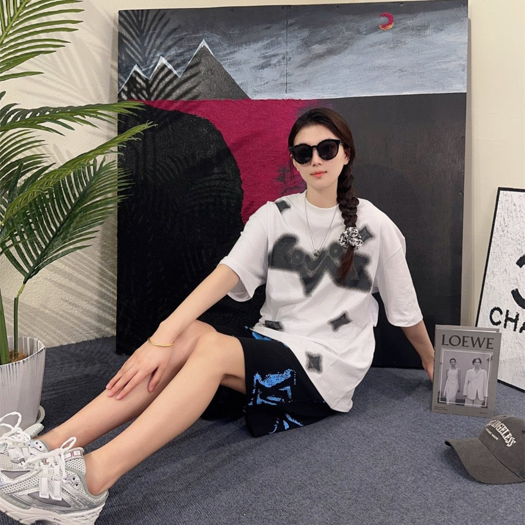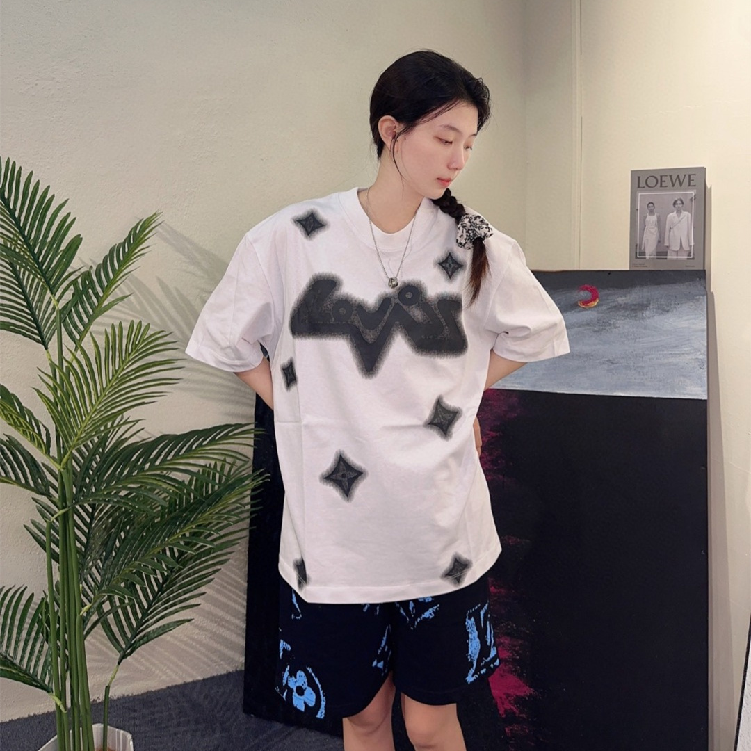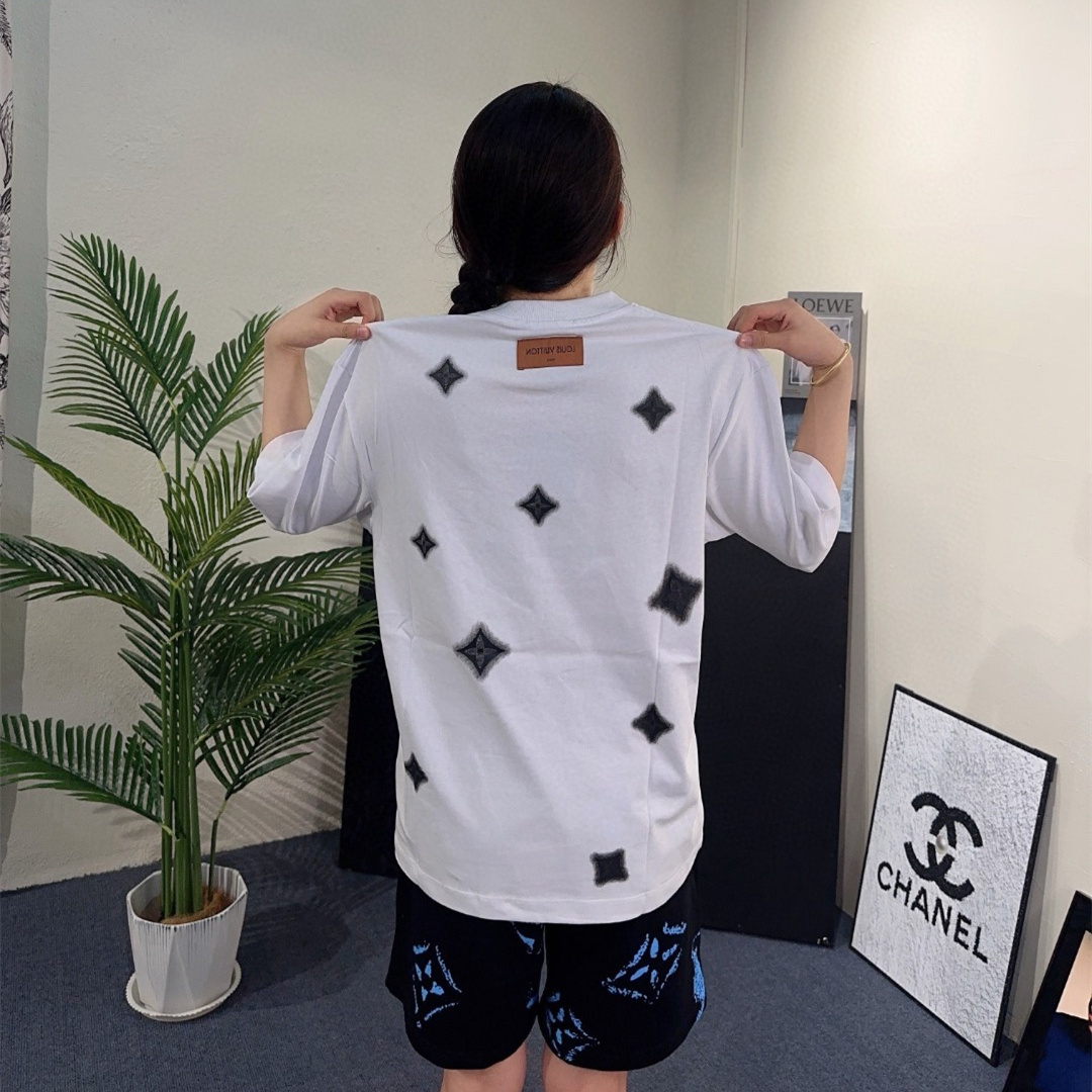 LOUIS VUITTON/路易威登四葉草水墨印花短袖T恤,原版1:1定制定染純棉面料,多次調整才能達到與原版一致的滿印效果.區別市場的一坨沒層次感的印花,頂級版本,男女同款.