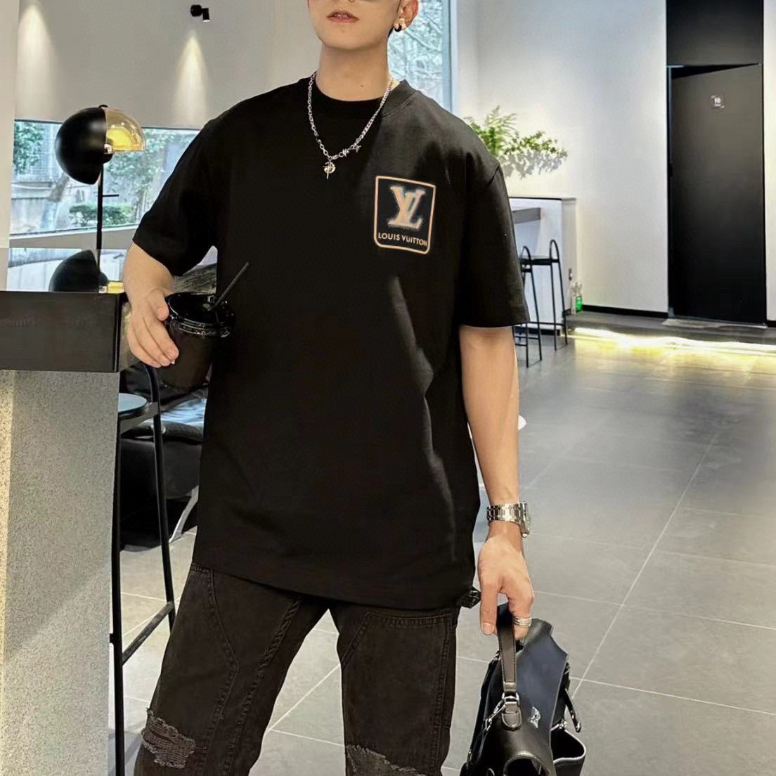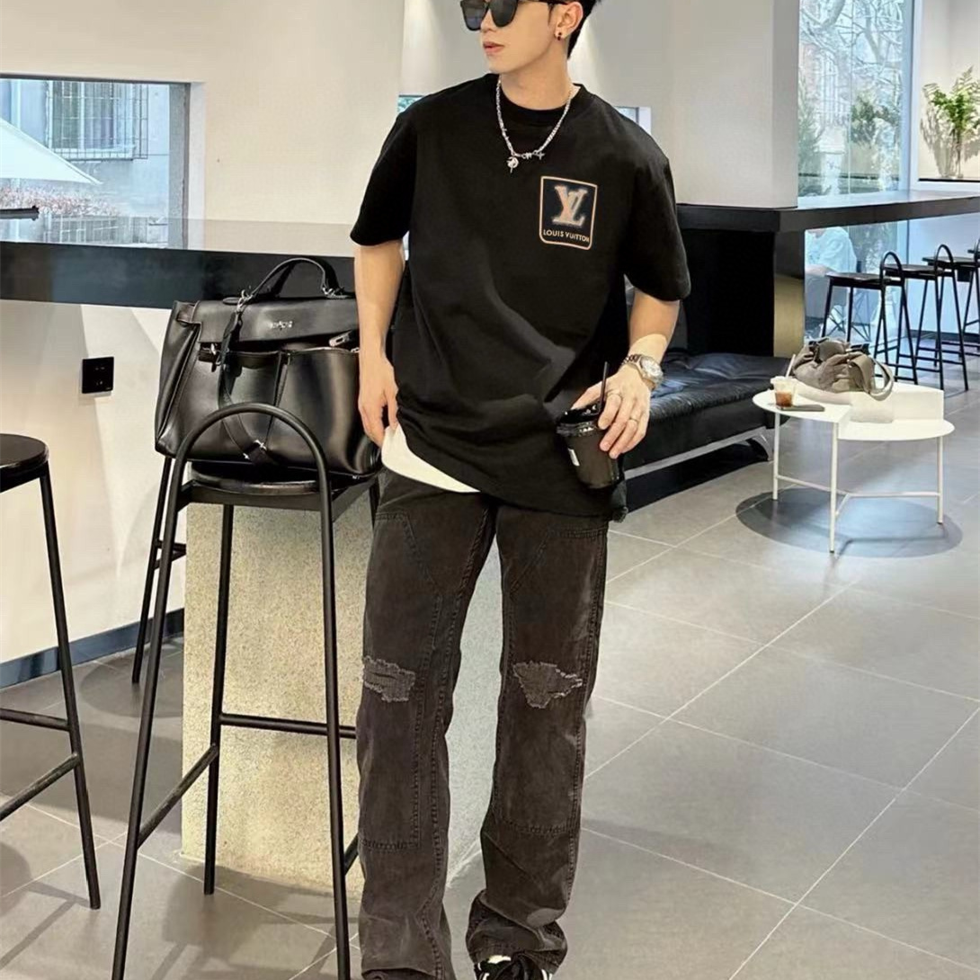 / 高仿LV*SS24系列1AFR006浮雕標誌短袖黑色