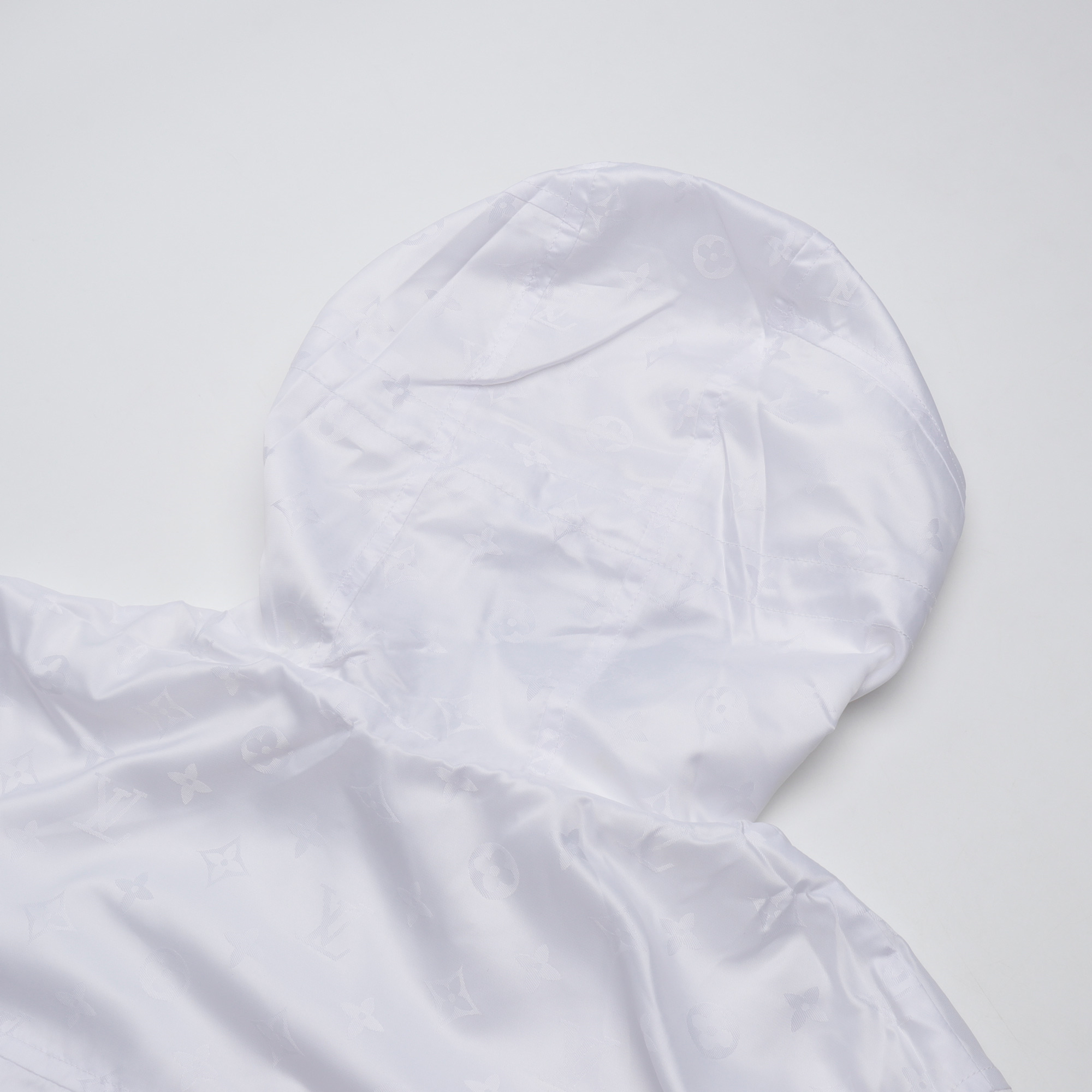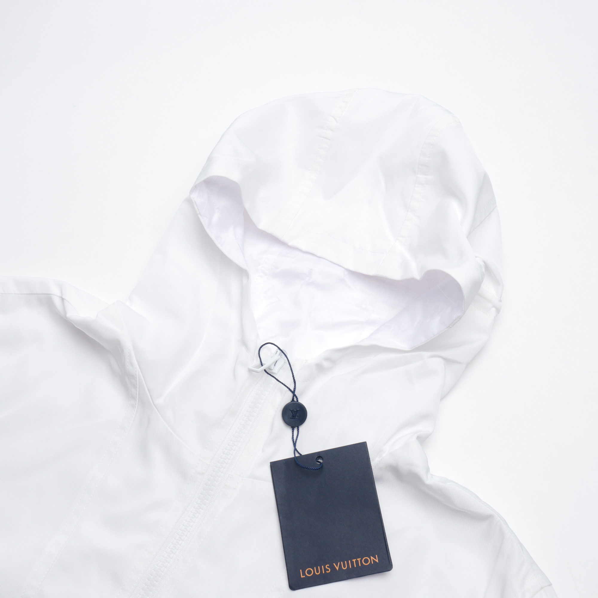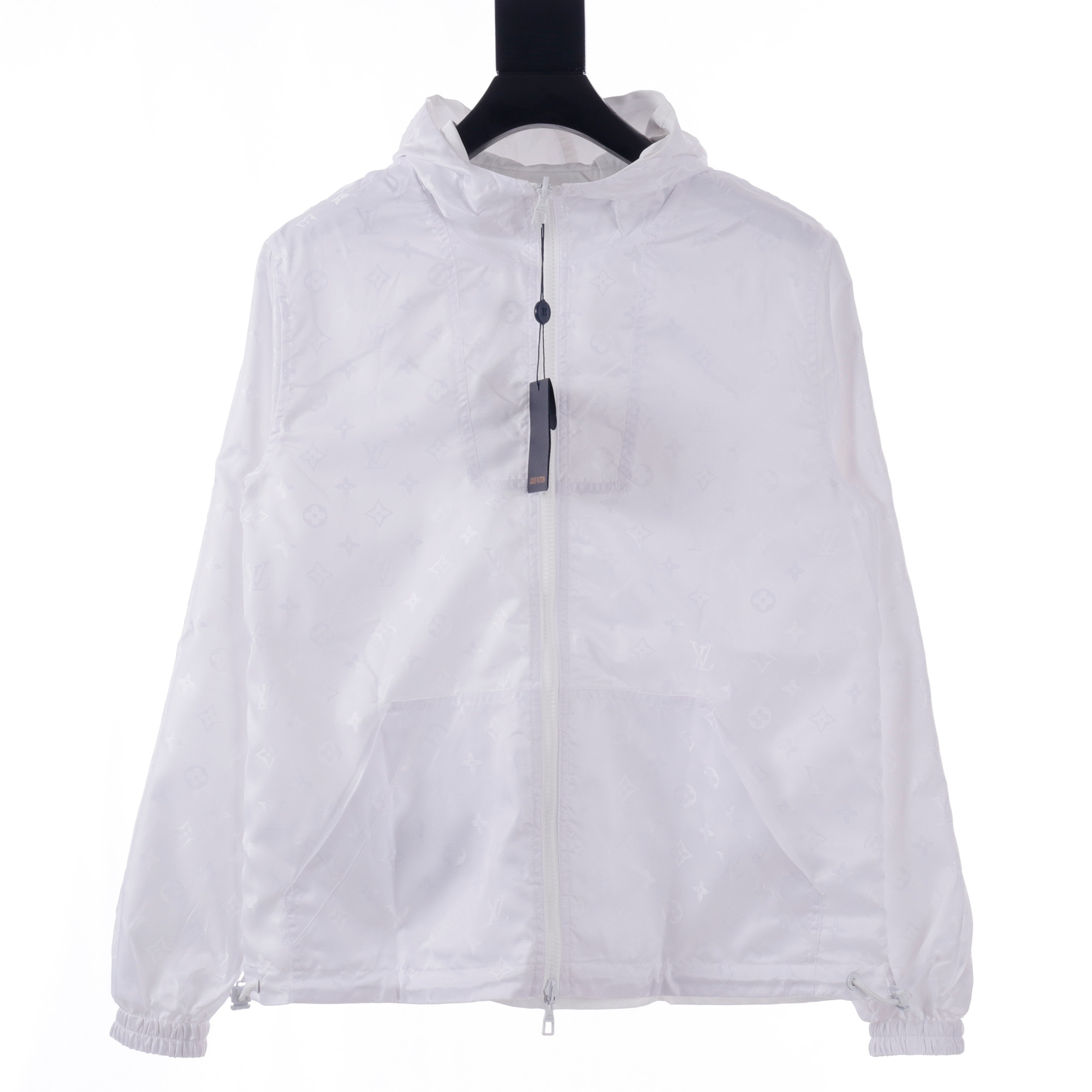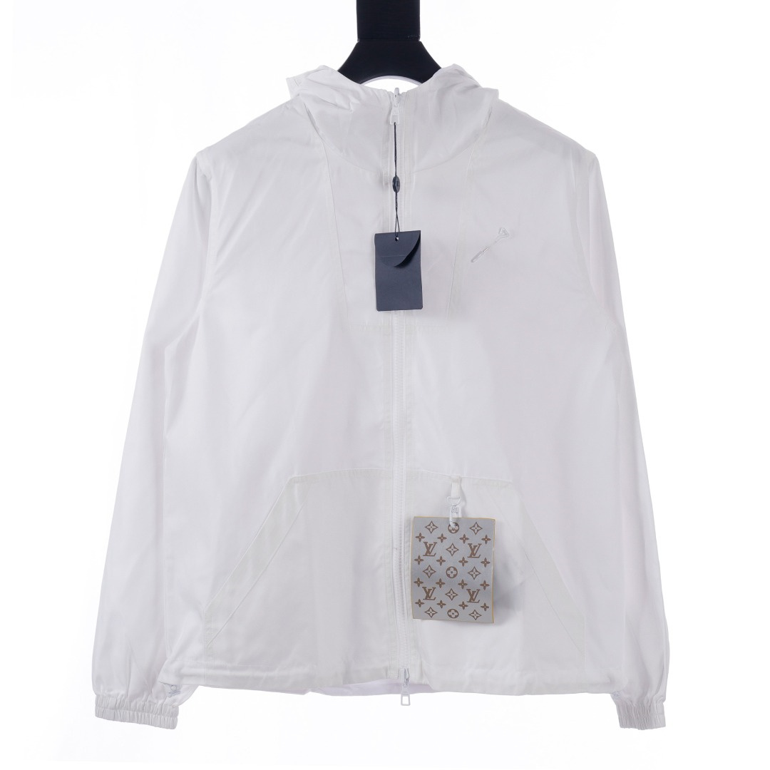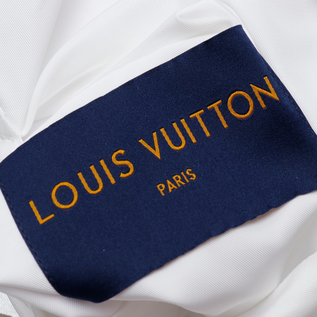 LouisVuitton/路易威登LV暗紋提花雙面穿夾克沖鋒衣外套雙面穿夾克,分為純色面和滿logo提花面,兩種風格隨意切換,款式不需多說,低調奢華,雙面都帶走LV經典元素,寬松版型,上身休閒舒適.僅胸口五金裝飾,五金可拆卸,里外五金全部雙面刻字,原版一致去定制定染.衣身同色無色差,工費昂貴.里布為真絲提花面布,經典滿幅logo提花工藝,全部需要織上去,工藝成本極高.