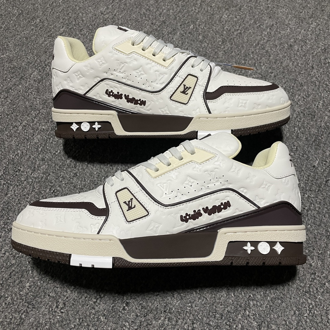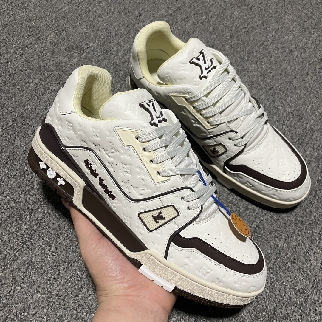 Louis Vuitton路易威登Trainer系列低幫休閑闆鞋,海淘代購同渠道品質高端零售外貿充正專供.原版購入開發正品級全套包裝完美楦型正確卡色大底TPU,質感媲美原版細節與原版一致請註意區分市面通貨.