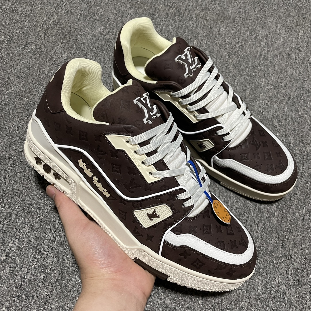 Louis Vuitton路易威登Trainer系列低幫休閑闆鞋,海淘代購同渠道品質高端零售外貿充正專供.原版購入開發正品級全套包裝完美楦型正確卡色大底TPU,質感媲美原版細節與原版一致請註意區分市面通貨.