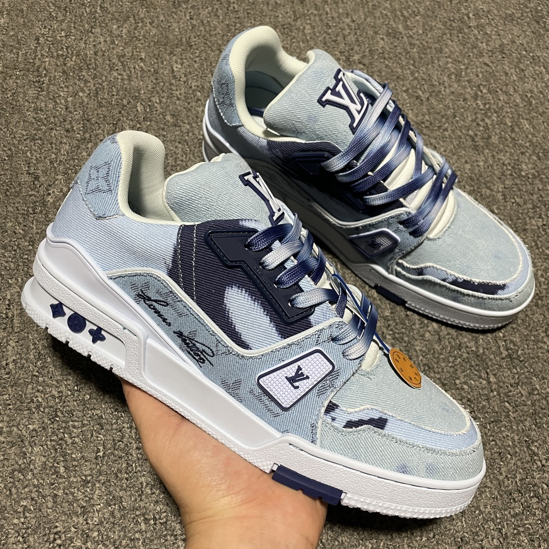Louis Vuitton路易威登Trainer系列低幫休閑闆鞋,海淘代購同渠道品質高端零售外貿充正專供.原版購入開發正品級全套包裝完美楦型正確卡色大底TPU,質感媲美原版細節與原版一致請註意區分市面通貨.
