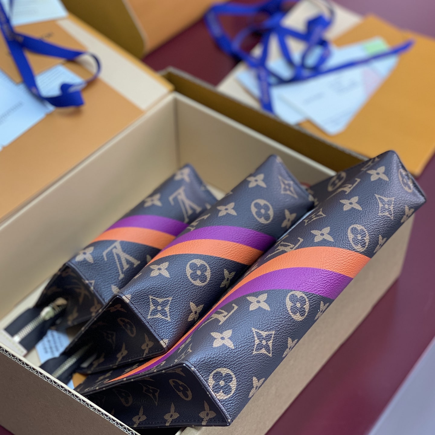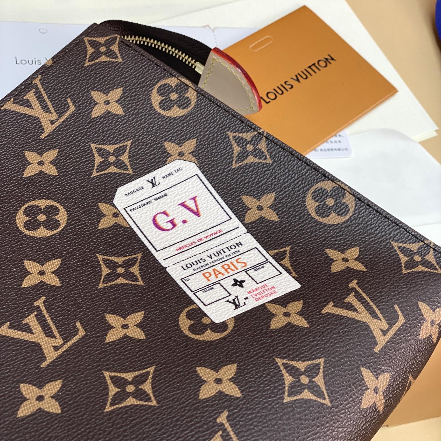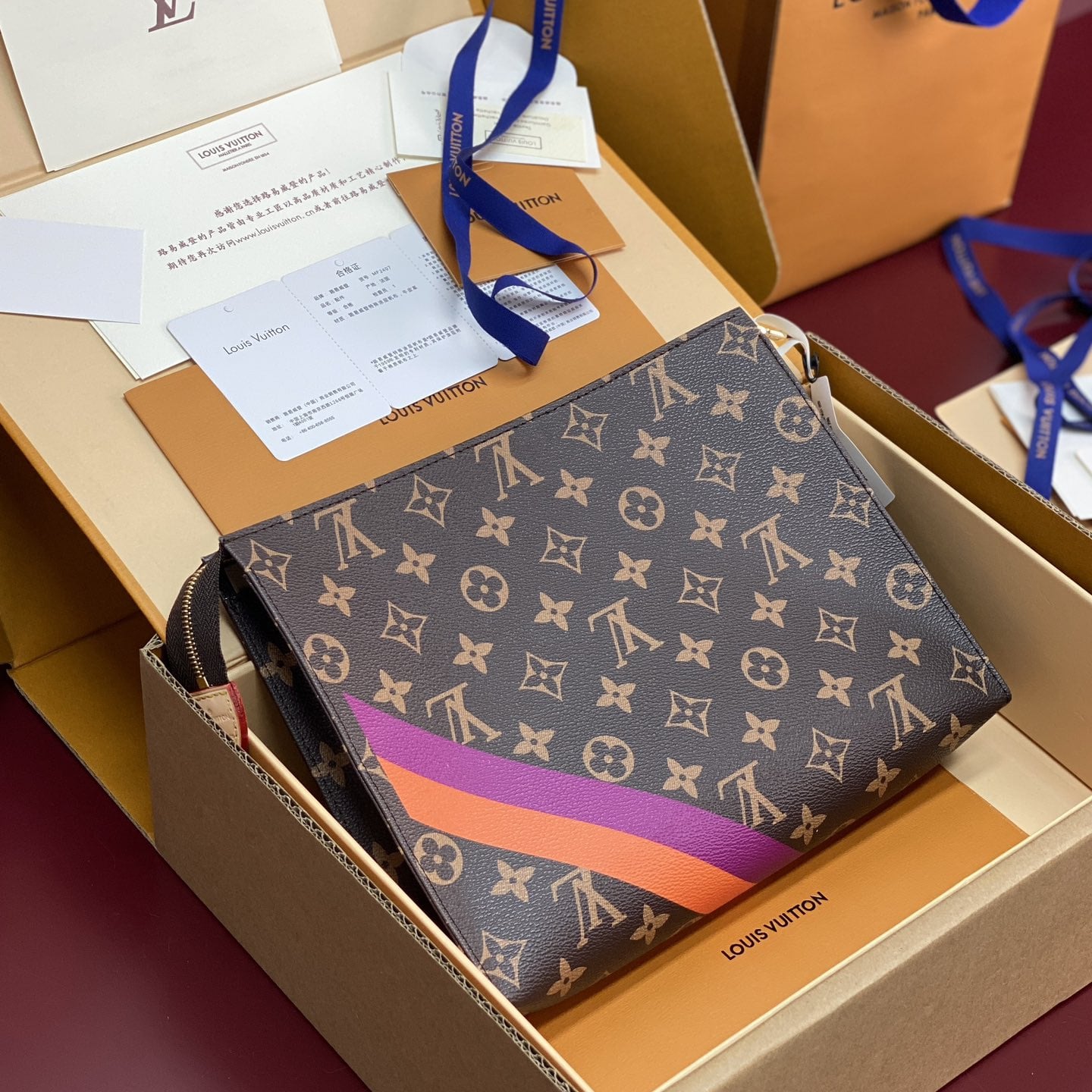 Monogram繫列借尺寸各異的手拿包實現有序收納,再以可洗滌內襯與廣口式開合道出功能考量.可為Monogram帆佈隨心添綴繽紛條紋,專屬字母及典藏風格品牌印花,打造個性風範.