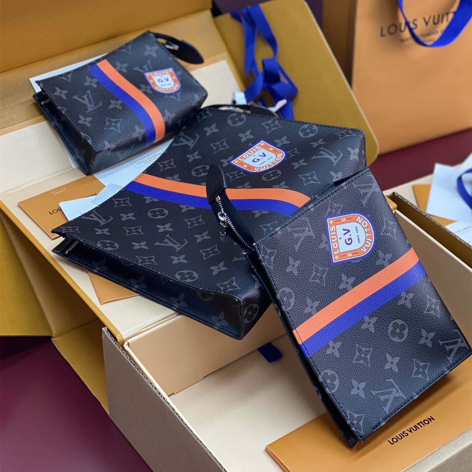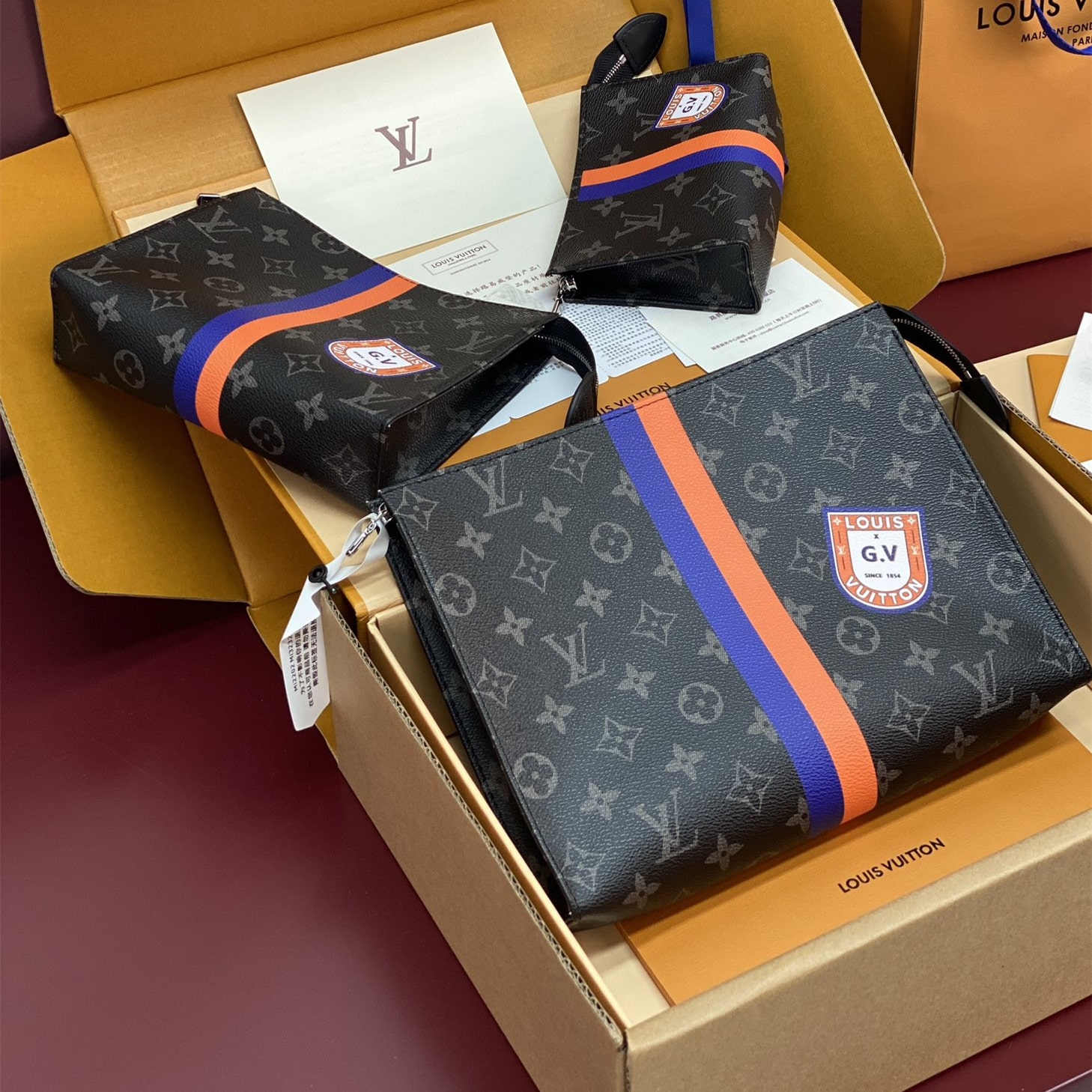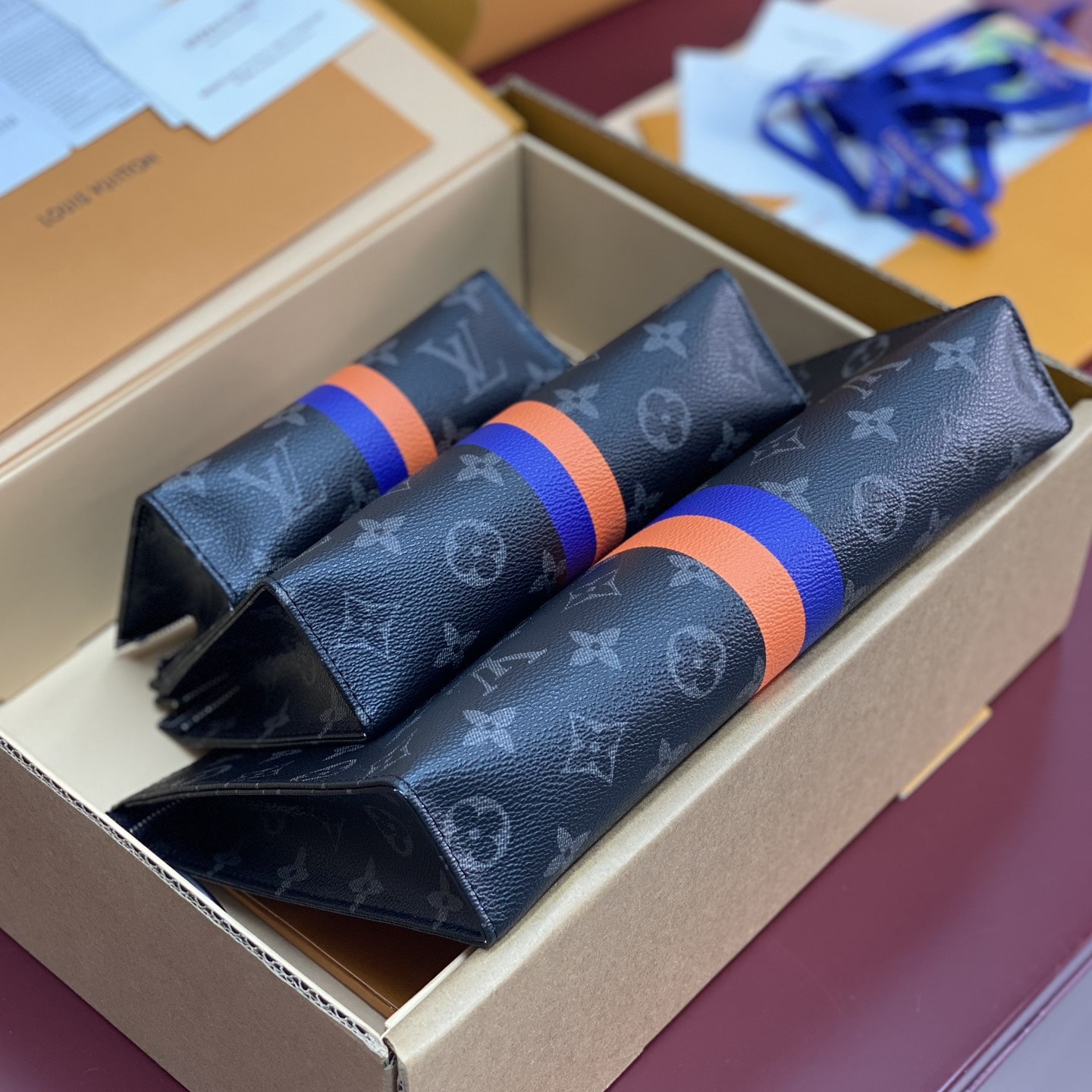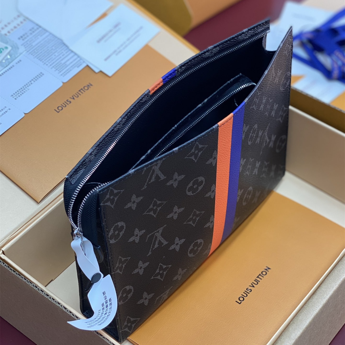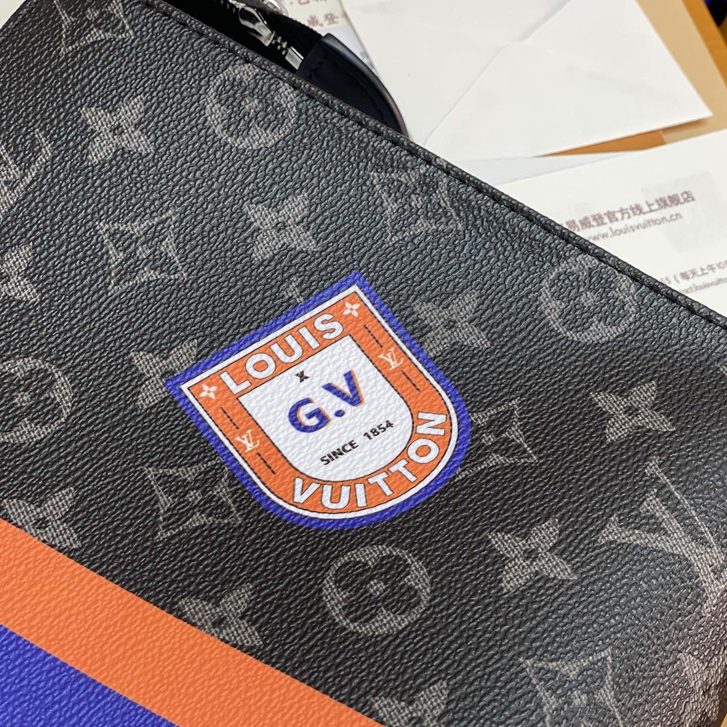 Monogram繫列借尺寸各異的手拿包實現有序收納,再以可洗滌內襯與廣口式開合道出功能考量.可為Monogram帆佈隨心添綴繽紛條紋,專屬字母及典藏風格品牌印花,打造個性風範.