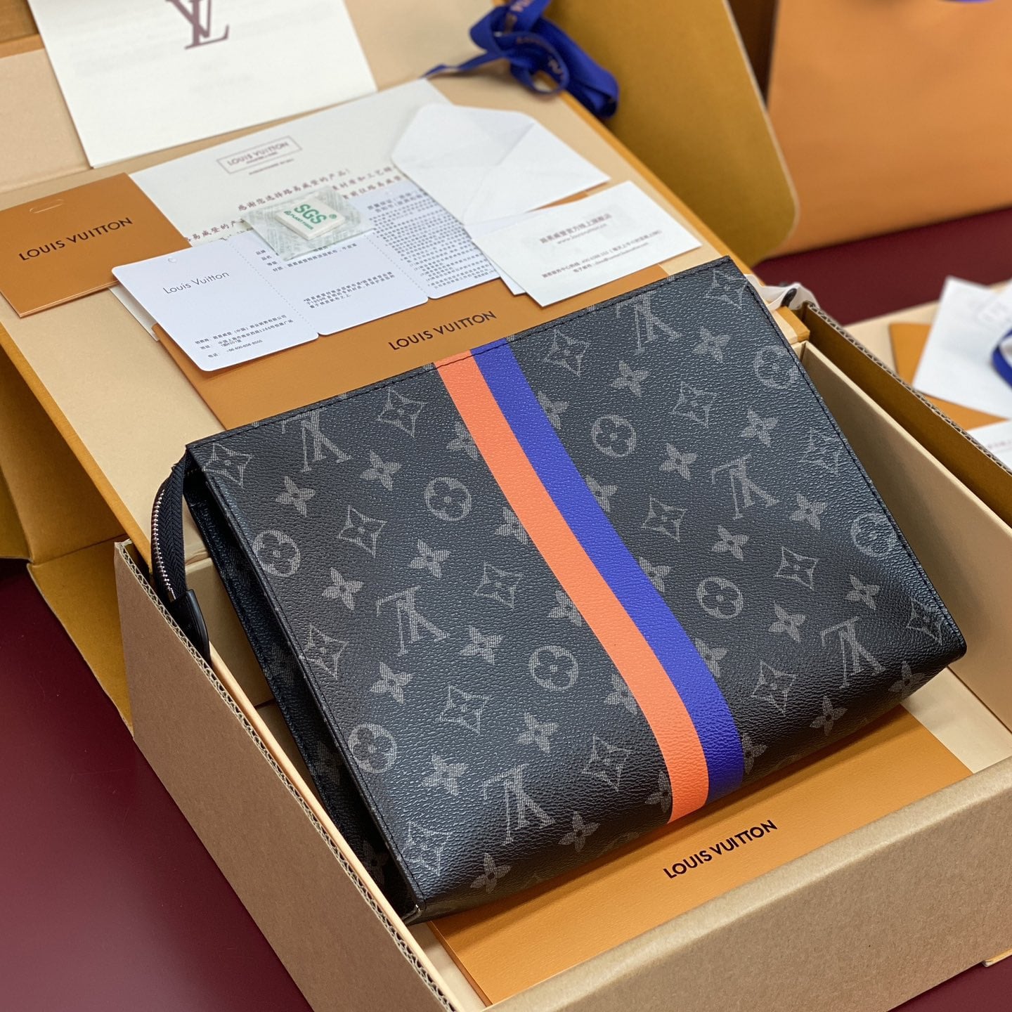 高仿LV升級版本P01957黑花三合一手拿包,男女同款使用,純原版本附帶NFC防偽晶片功能,TRIO MON MONOGRAM盥洗袋,本款Trio盥洗袋出自Mon