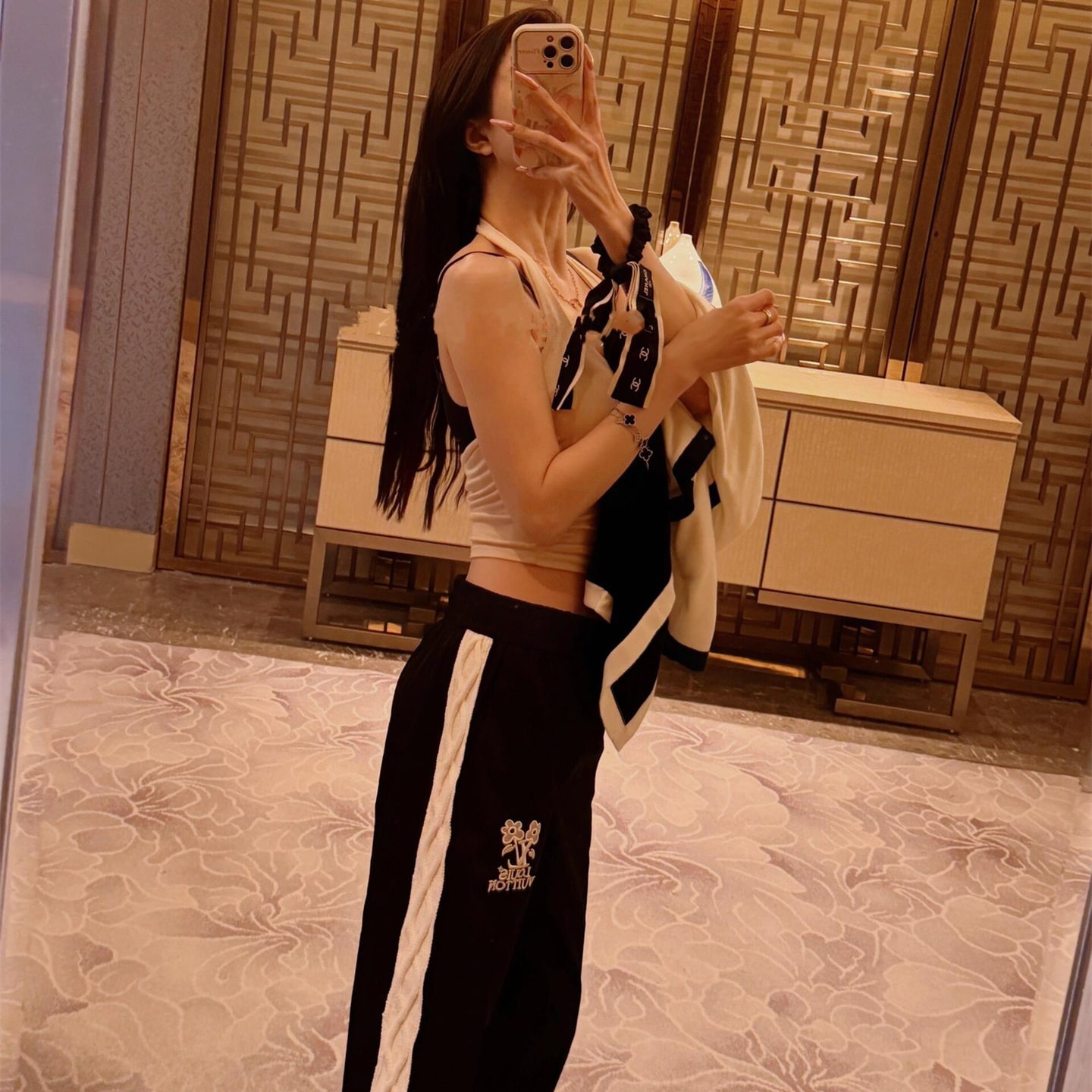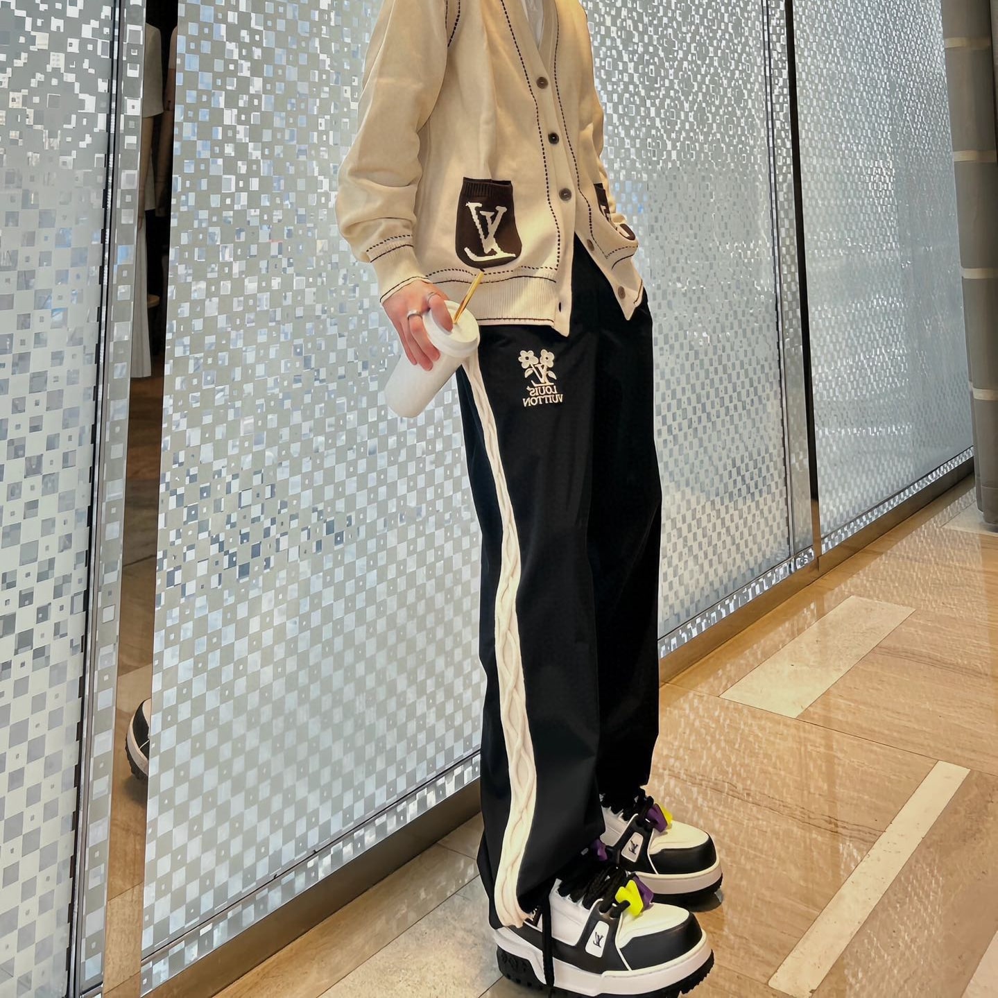 高仿LV*TulerSS24系列1AFRDR花卉刺繡運動褲