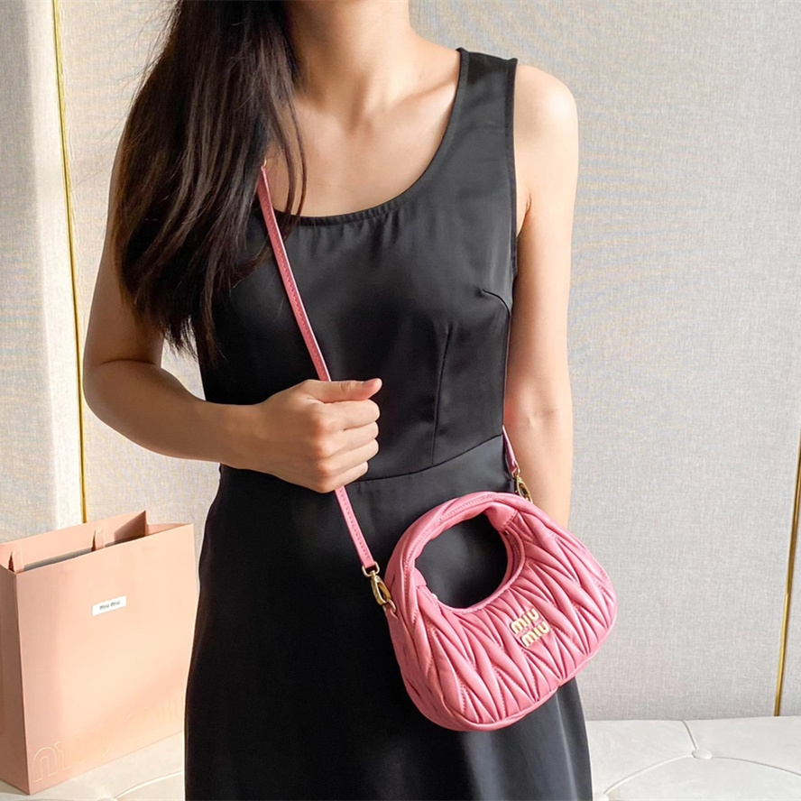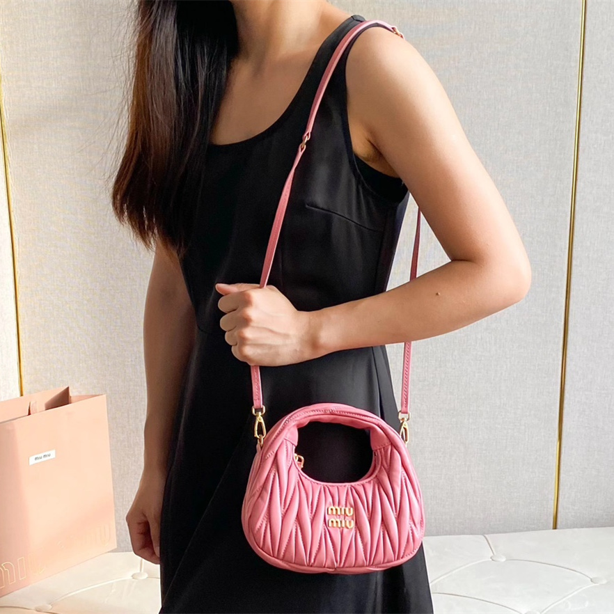 高仿miumiu繆繆*5BP078Mini單肩包海棠粉免檢版
