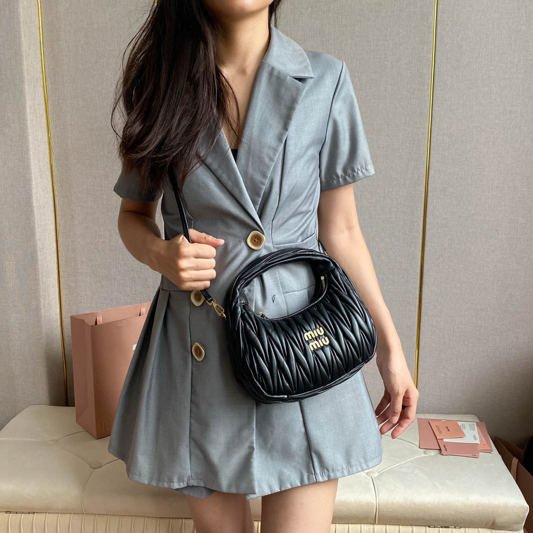 高仿miumiu繆繆*Matelasse系列5BC125手袋黑色免檢版