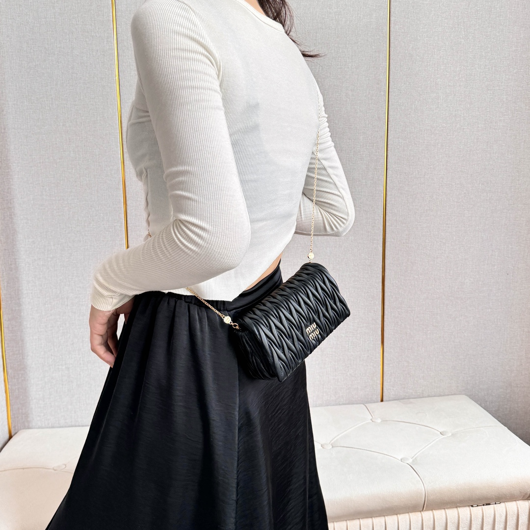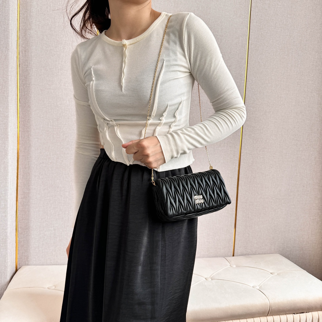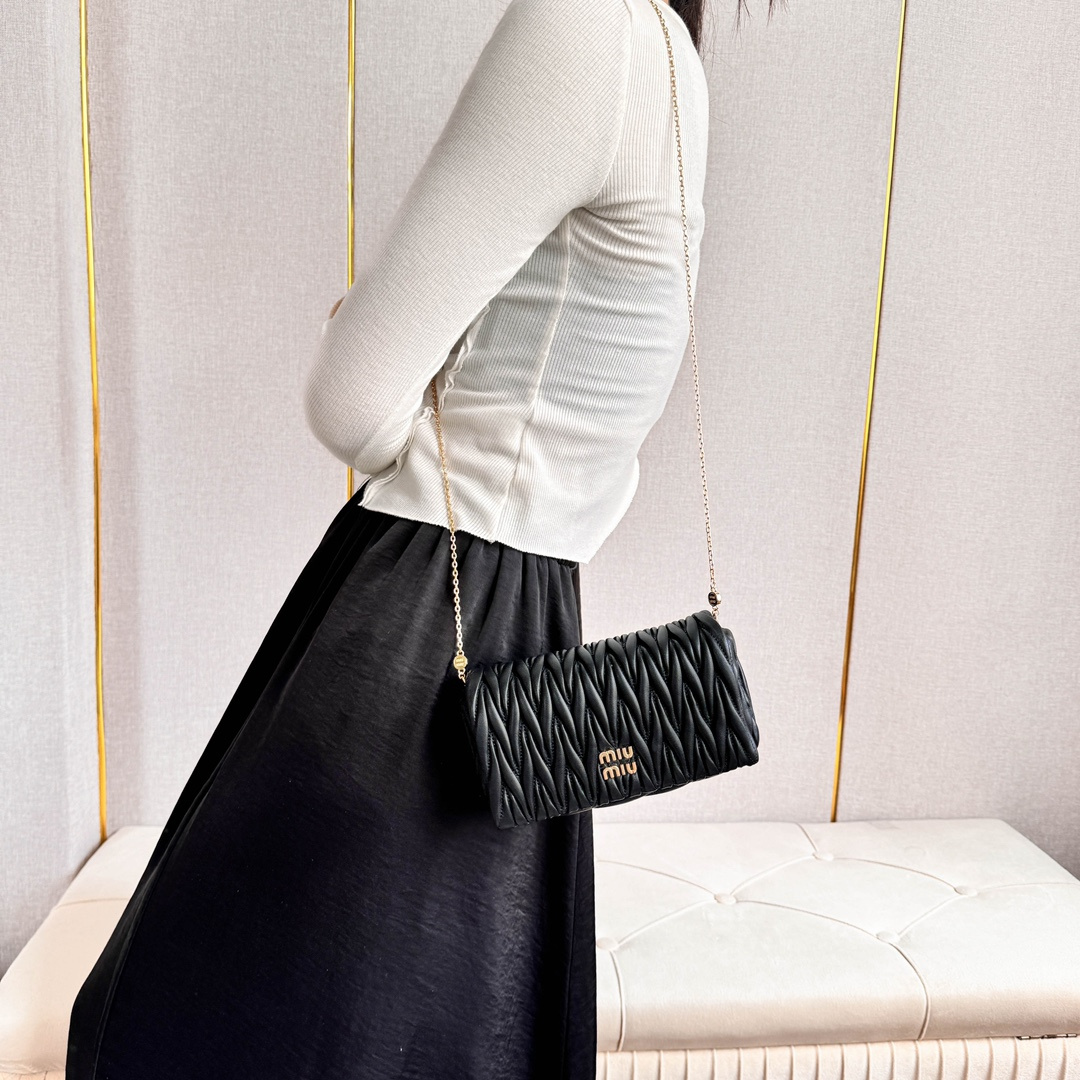 高仿miumiu繆繆*Matelasse系列5BP086單肩包黑色免檢版