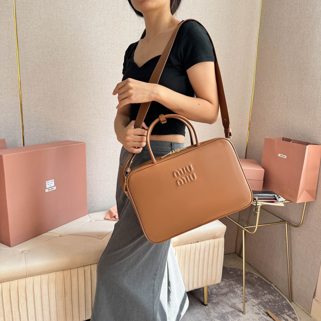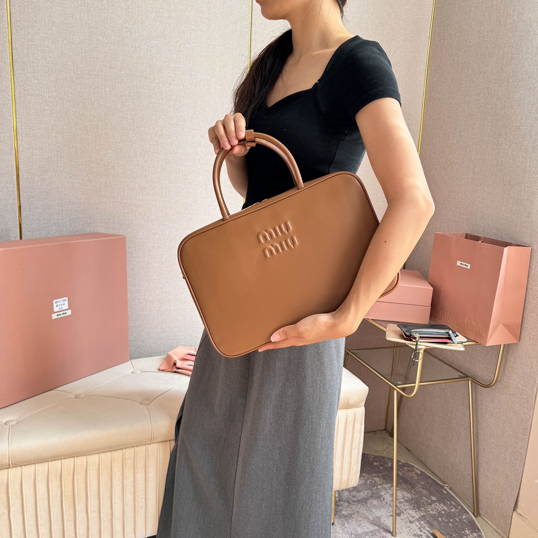 高仿MIUMIU長肩帶公文包:MiuMiu新品公文包,採用頂級進口小牛皮,皮質光滑細膩柔軟,棉質緞面襯裏,這款包包很酷,定格精致的多功能設計,融合男裝和女裝元素,增加了皮革長肩帶,實用性更高,造型更多樣化,隨性慵懶,自然灑脫,充滿個性,超大容量還很輕便,簡約卻不簡單,