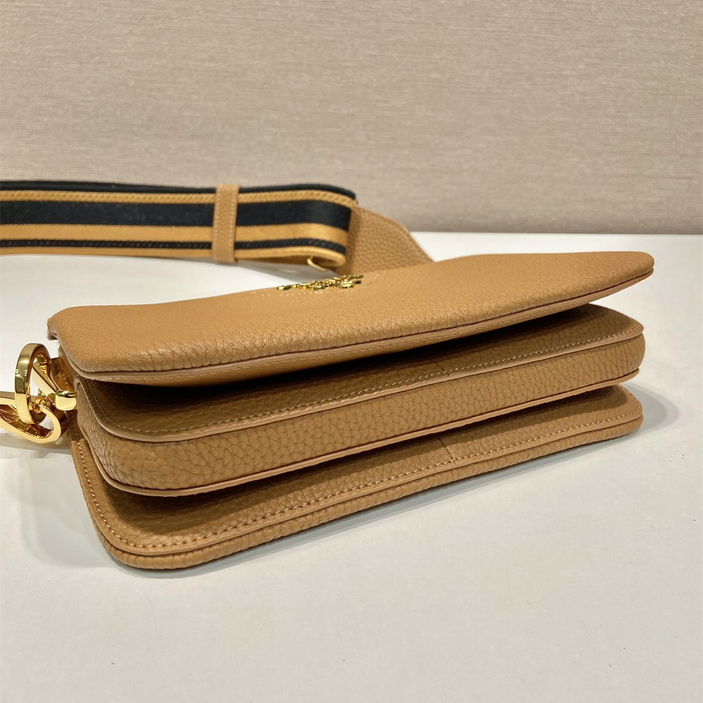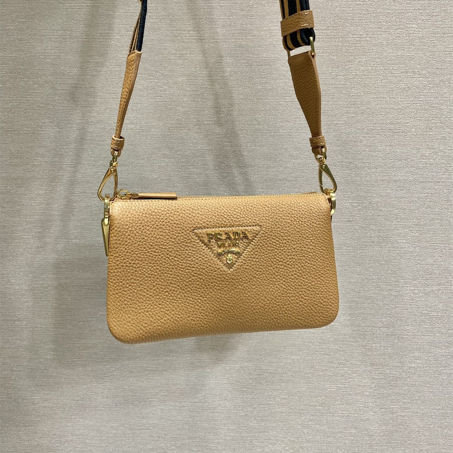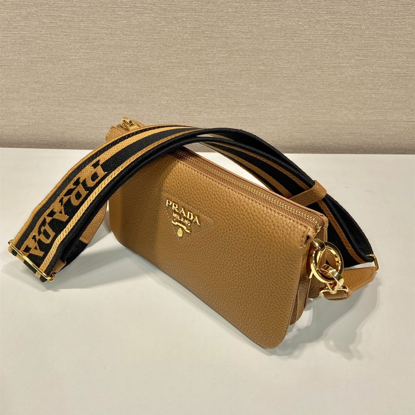 高仿Prada單肩三層包1BH194棕色免檢版