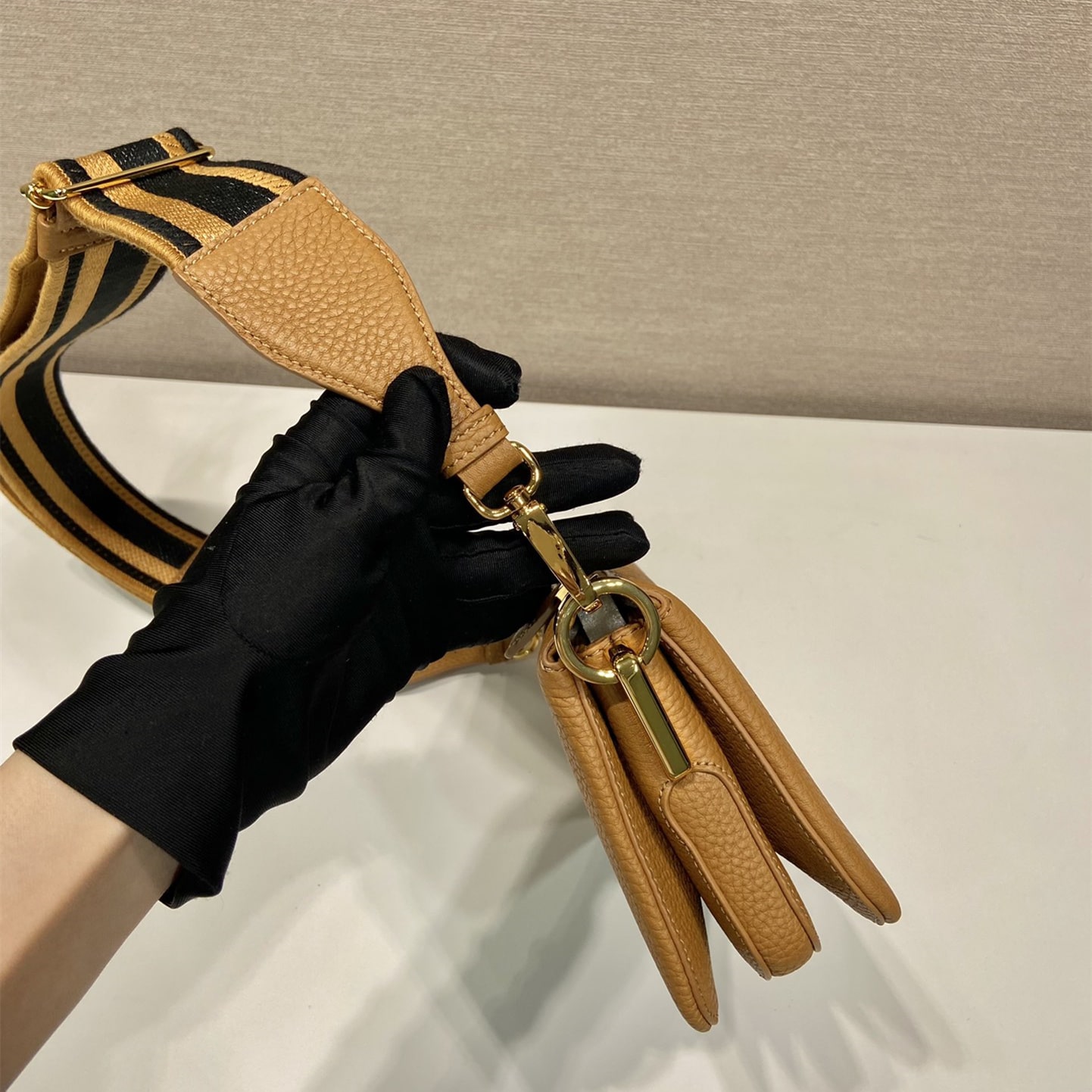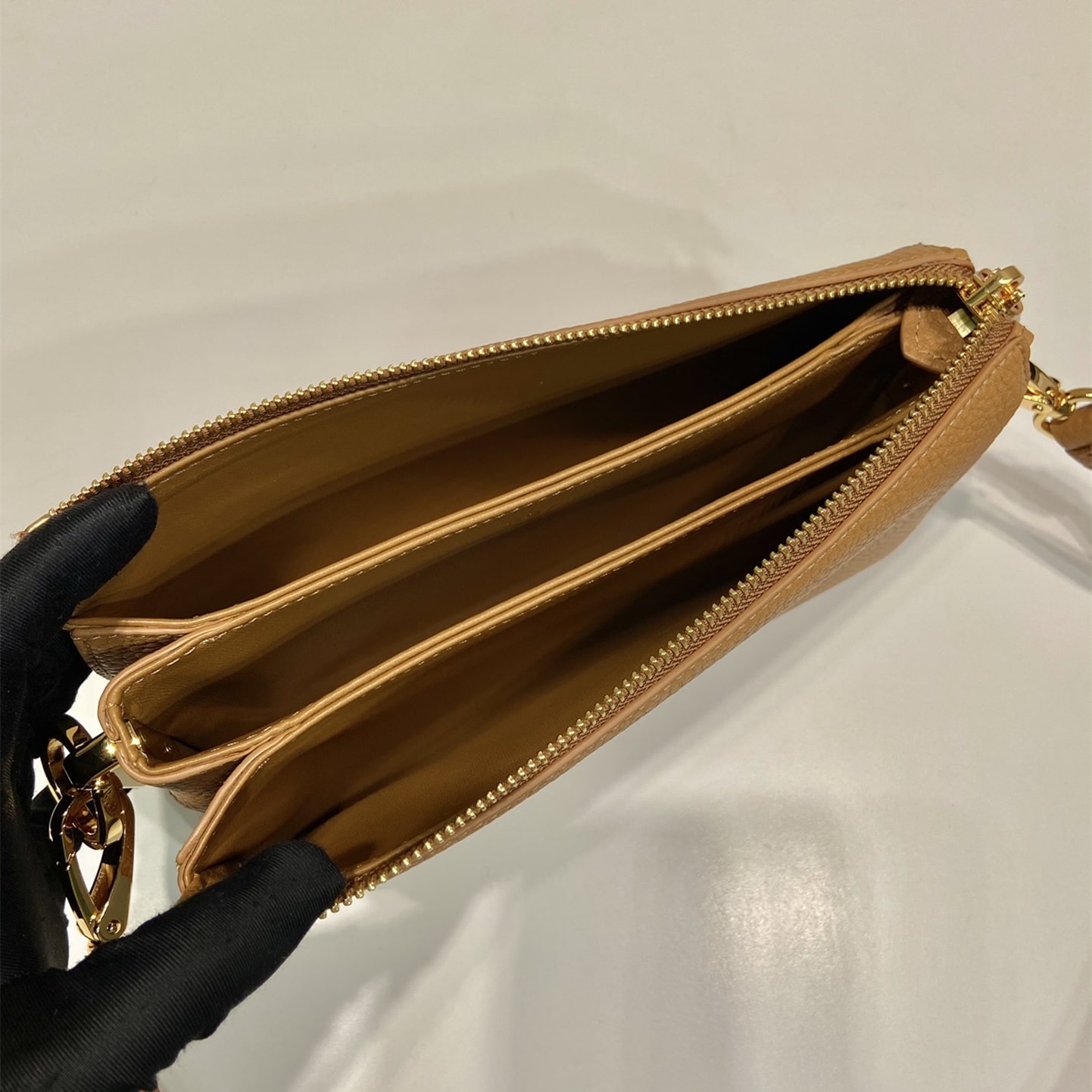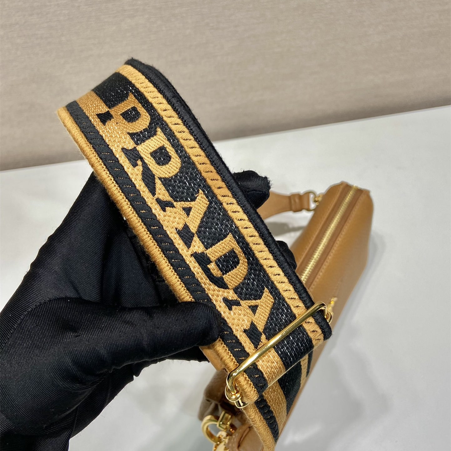 高仿Prada單肩三層包1BH194棕色免檢版