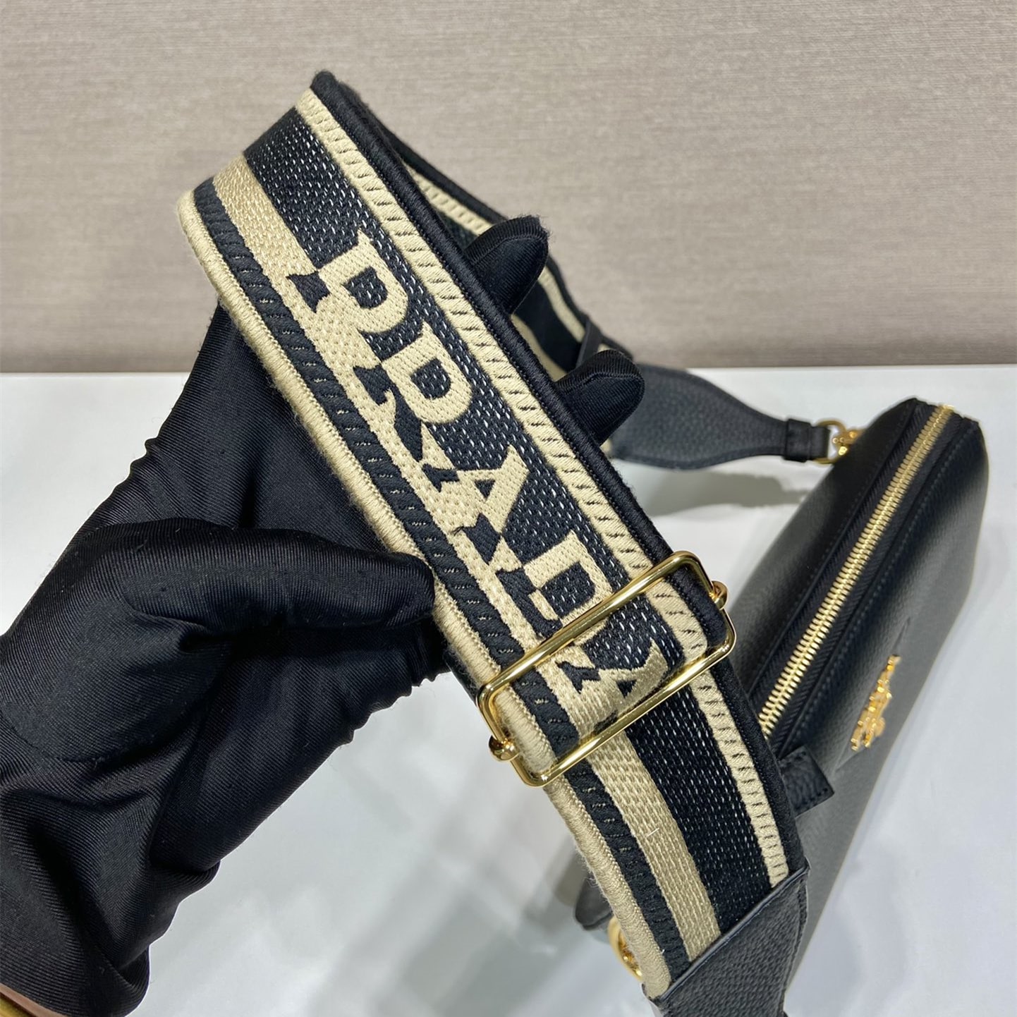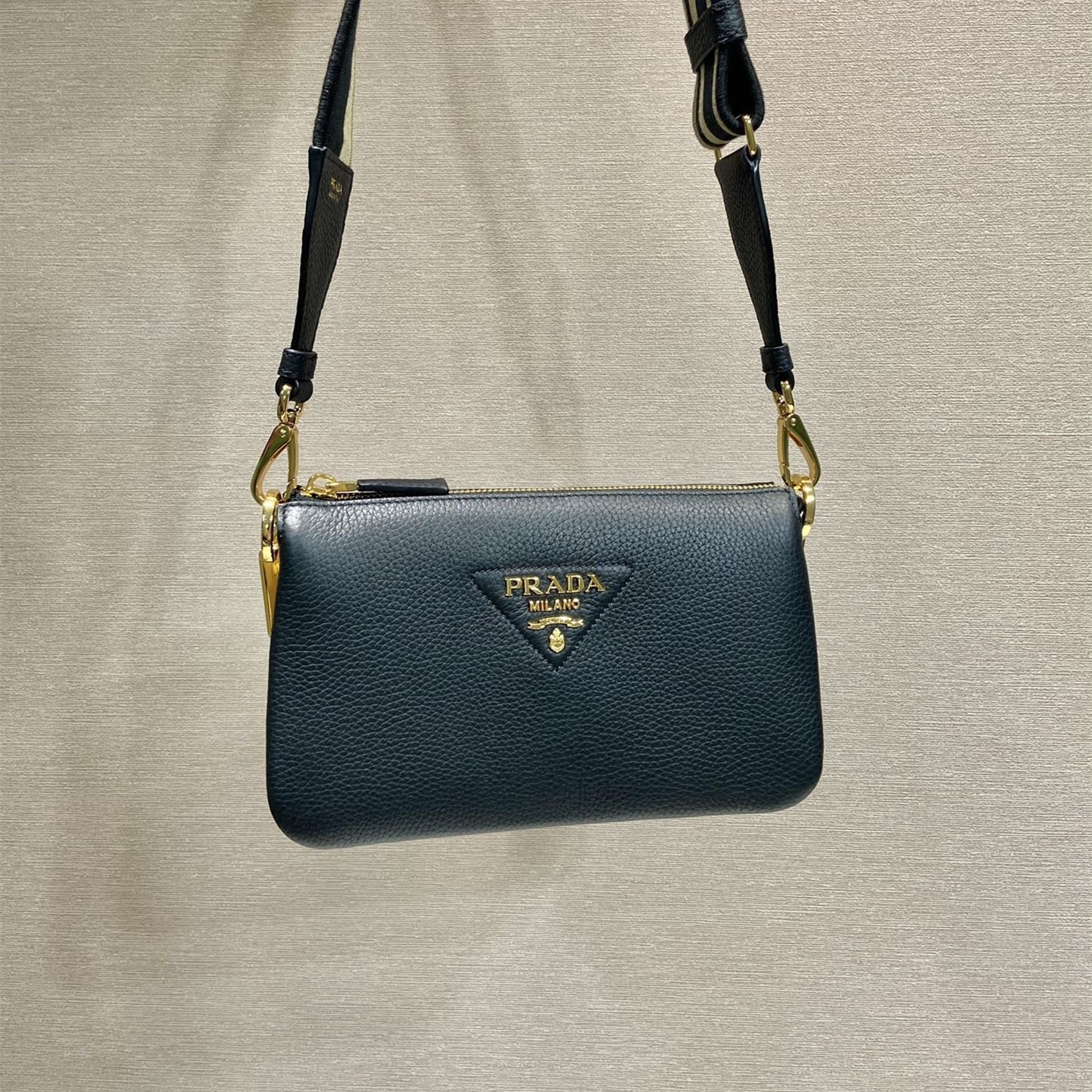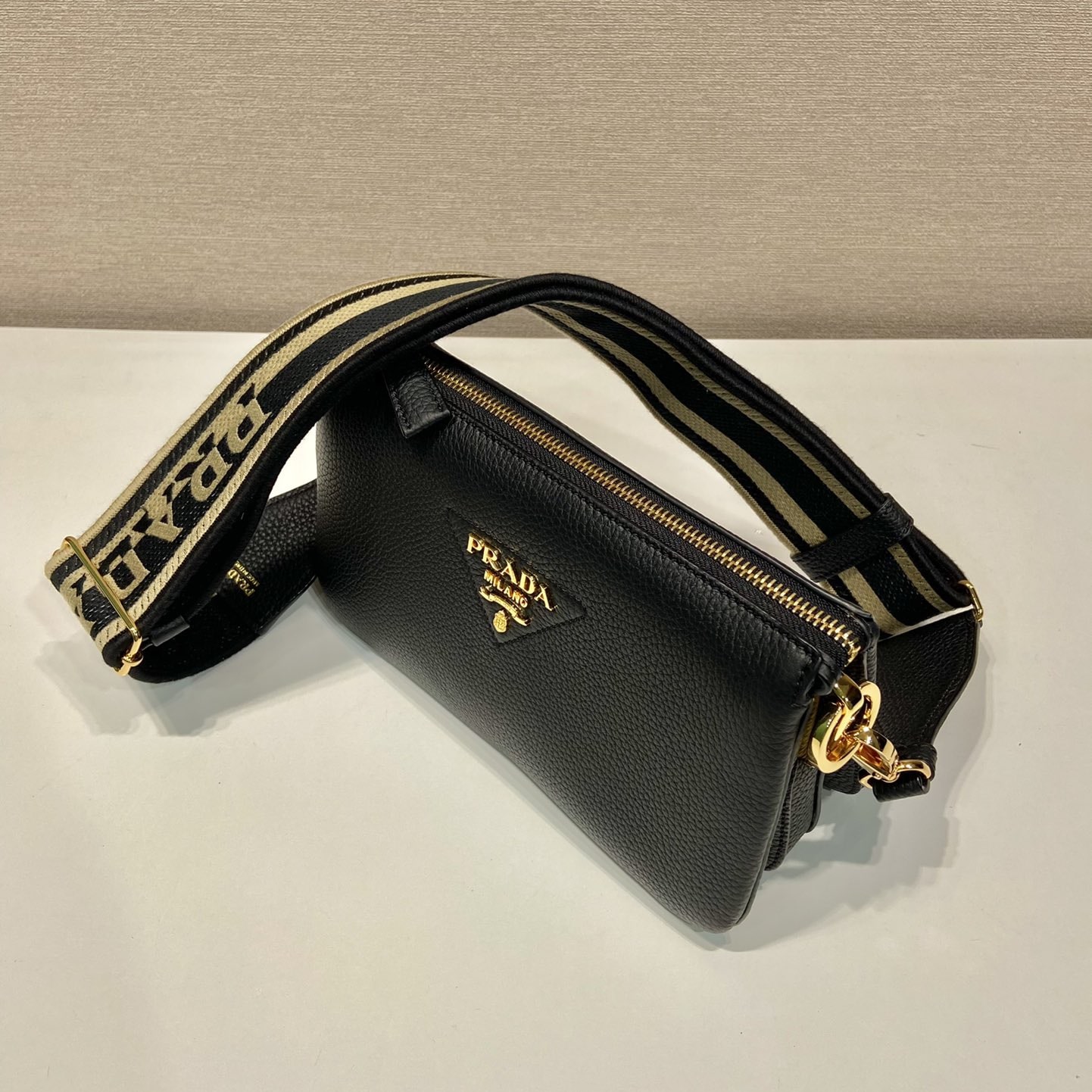 高仿Prada單肩三層包1BH194黑色免檢版
