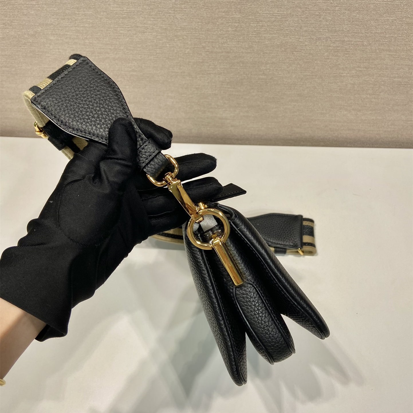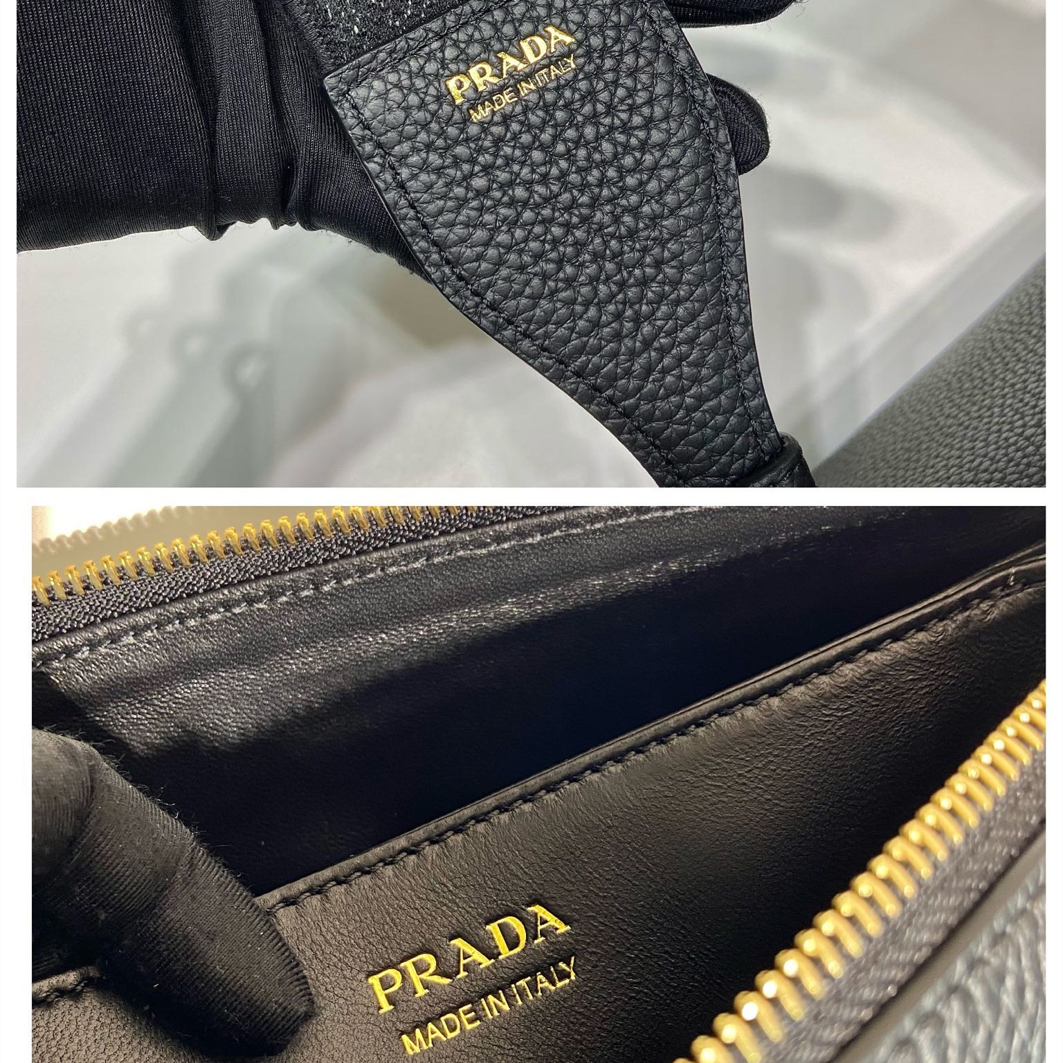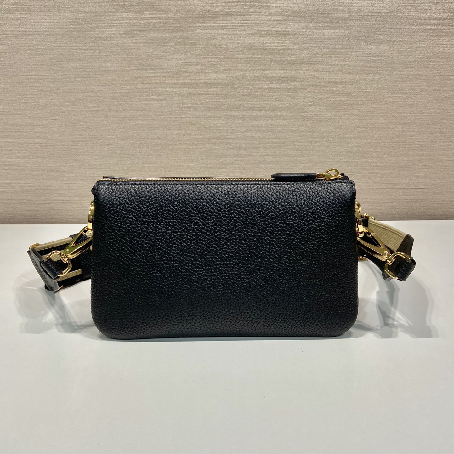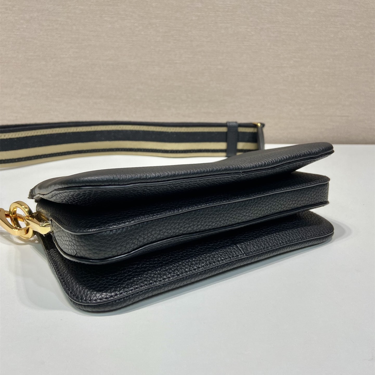 高仿Prada單肩三層包1BH194黑色免檢版