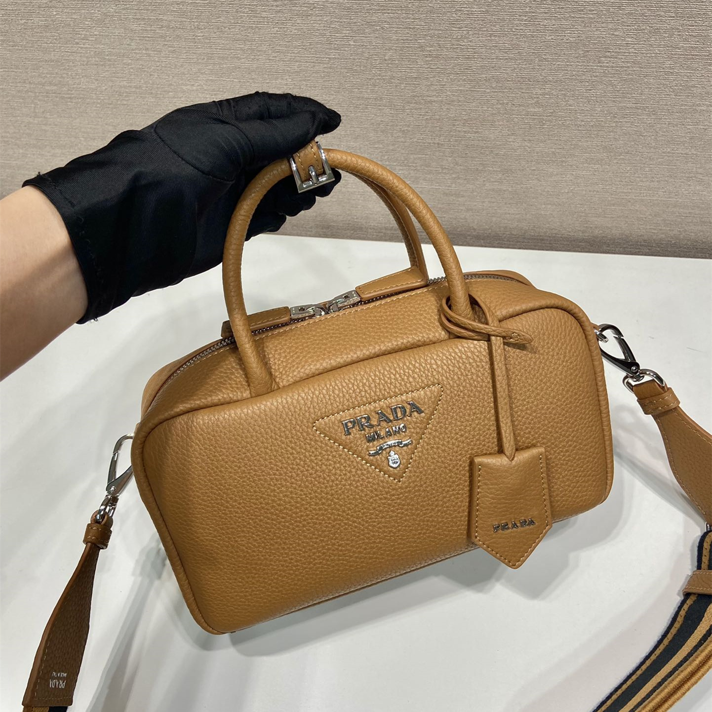 高仿Prada手提包1BB102棕色免檢版