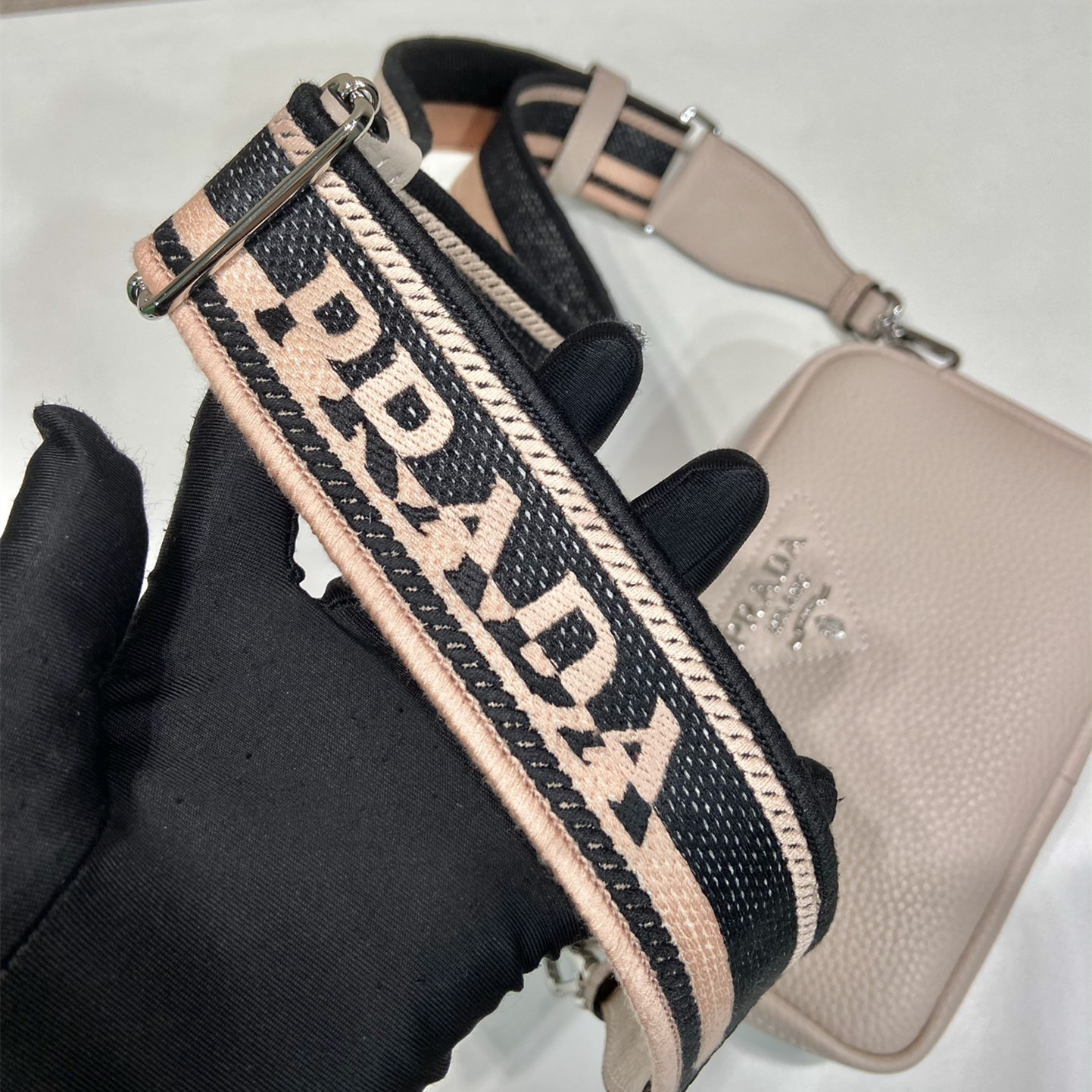 高仿Prada斜跨包1BH192沙色免檢版