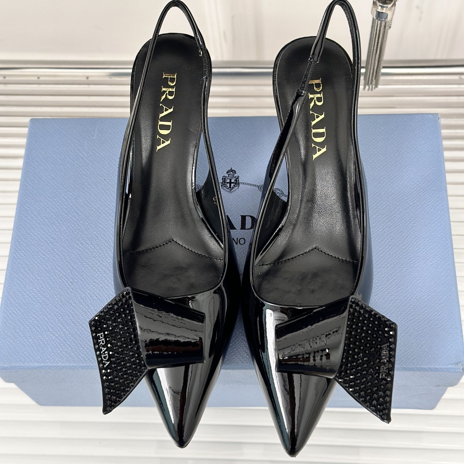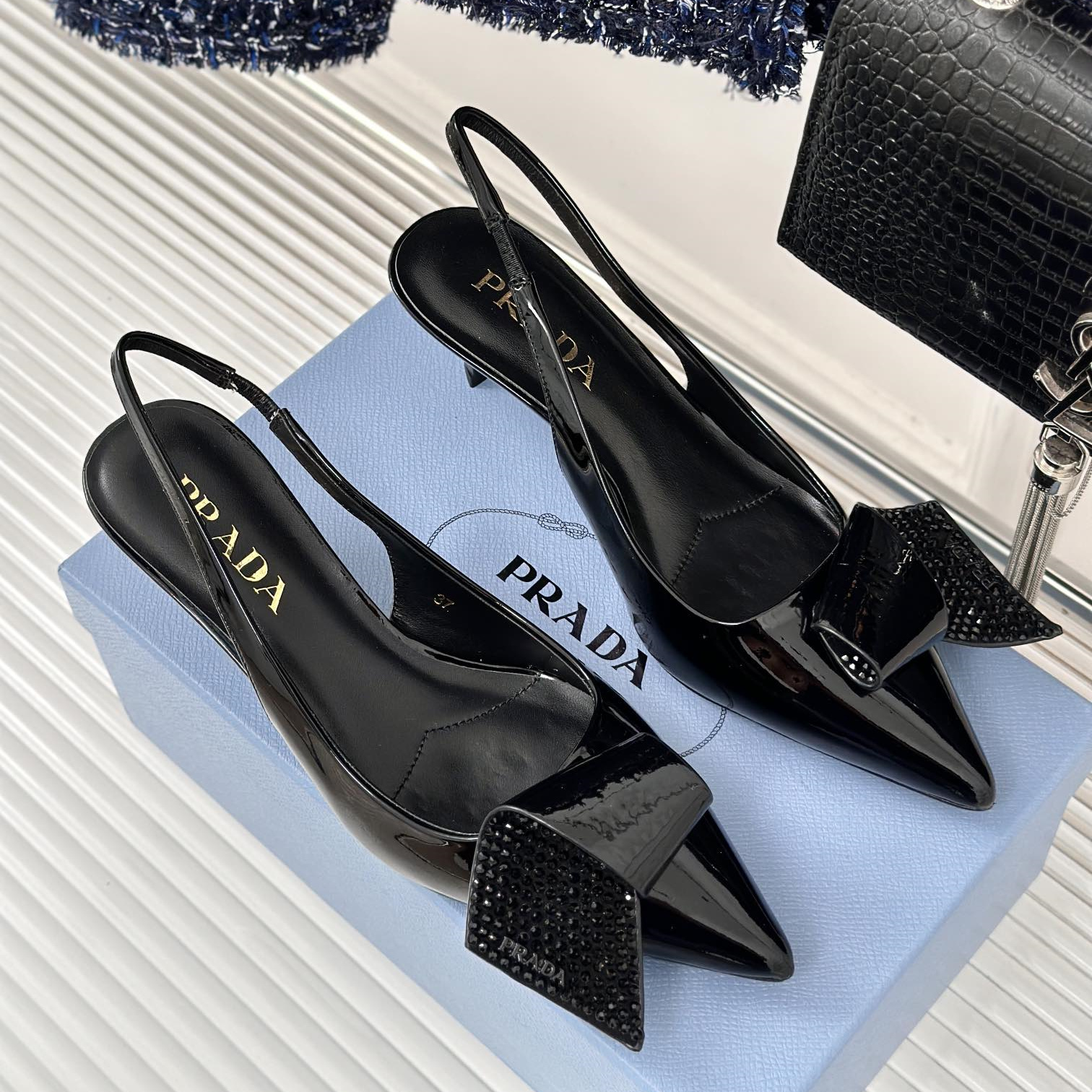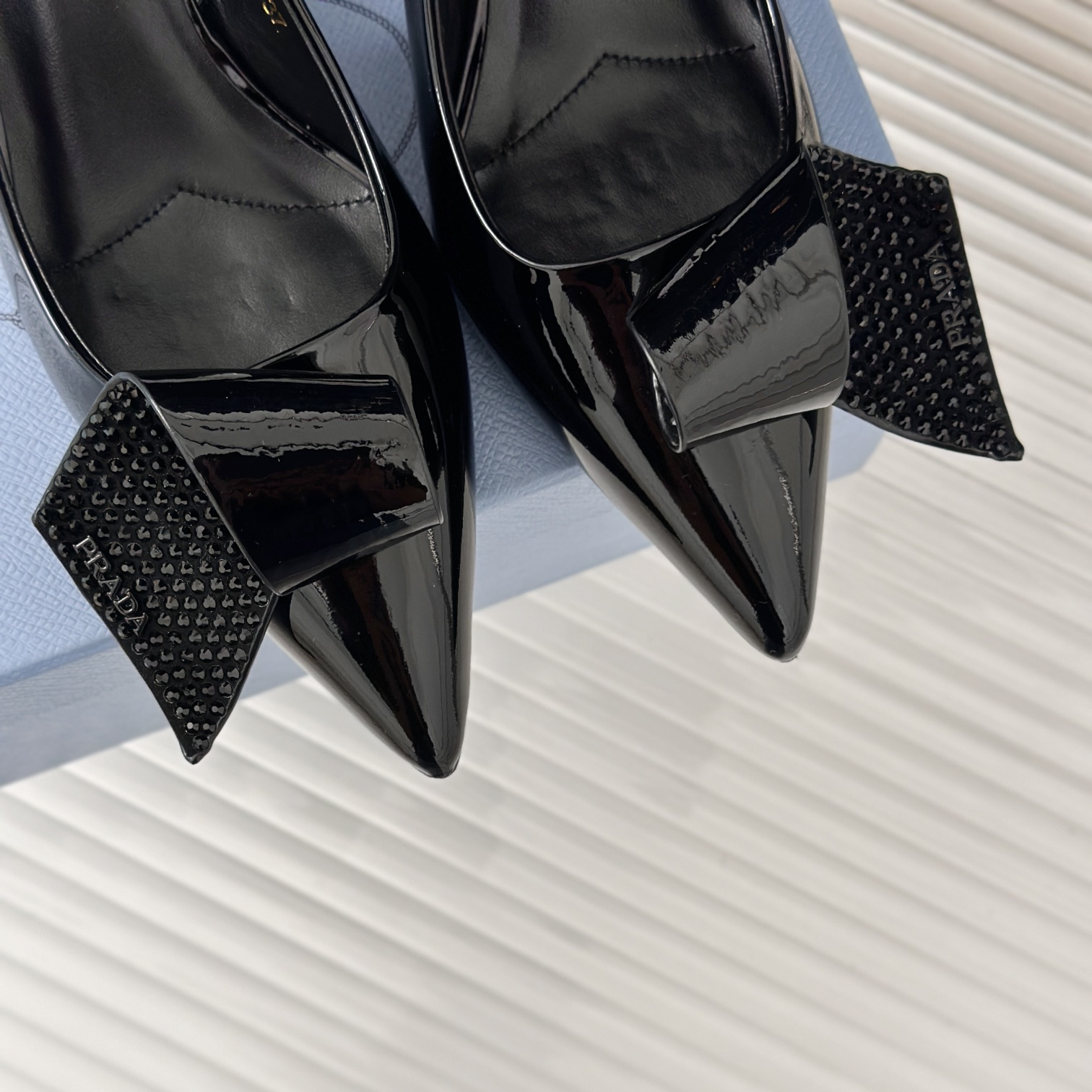 高仿Prada*1I345N水鑽蝴蝶結高踭鞋漆皮黑色5.5CM免檢版
