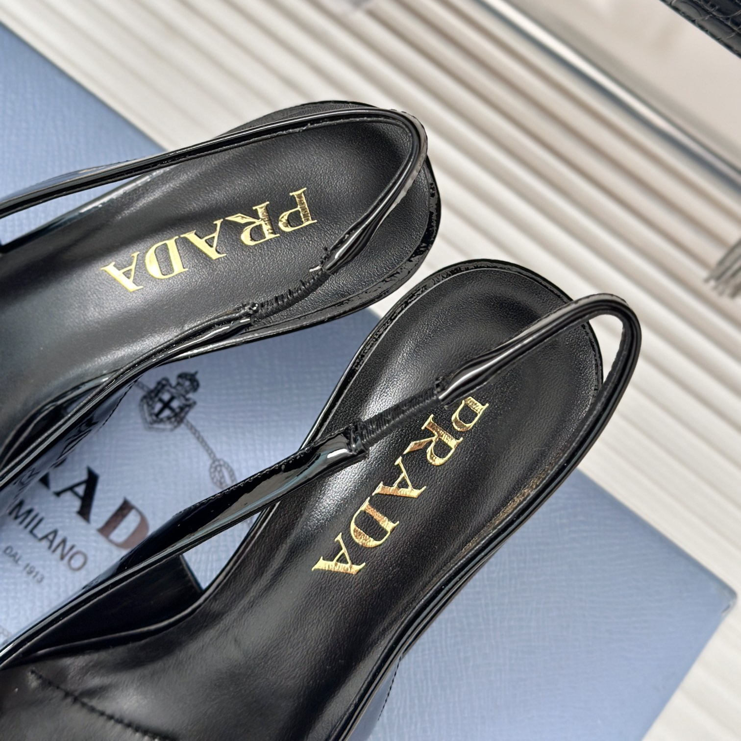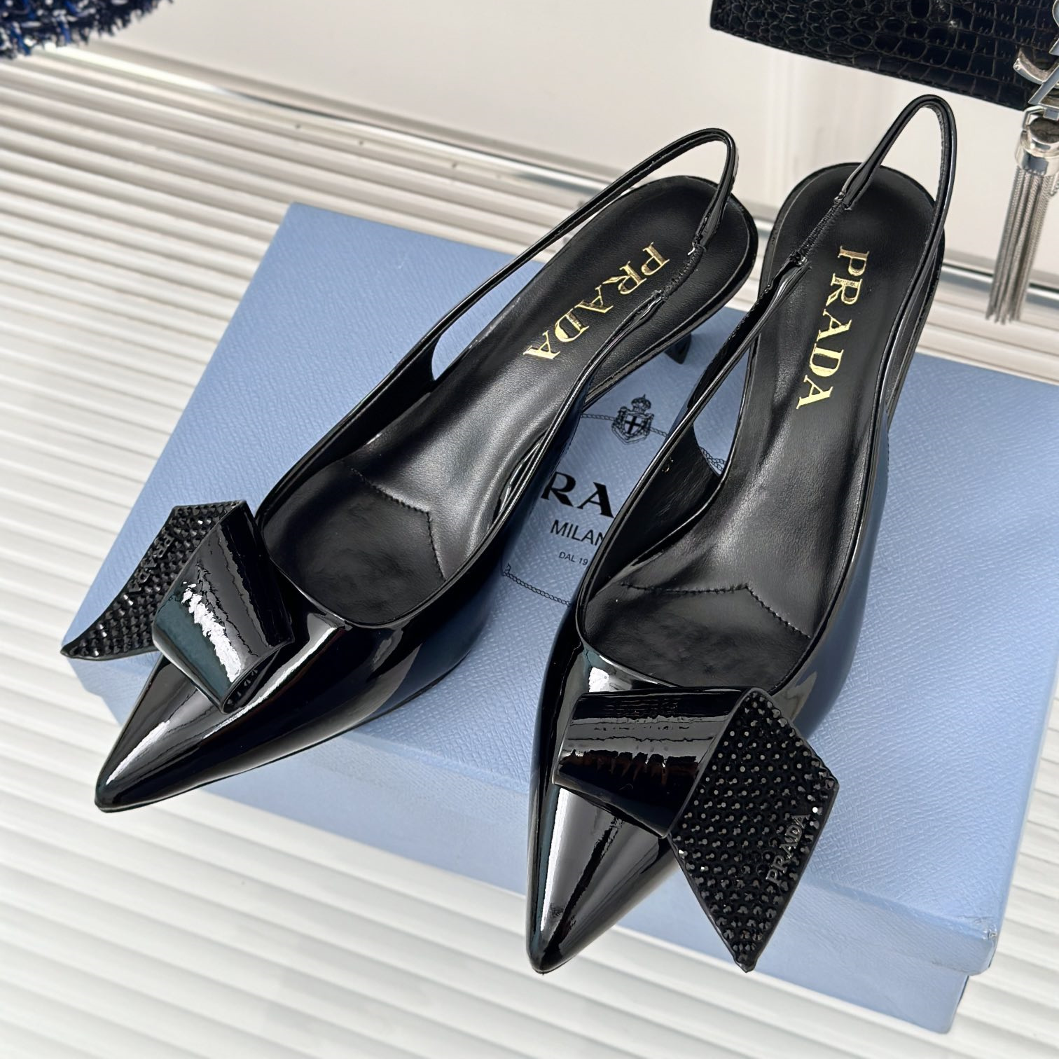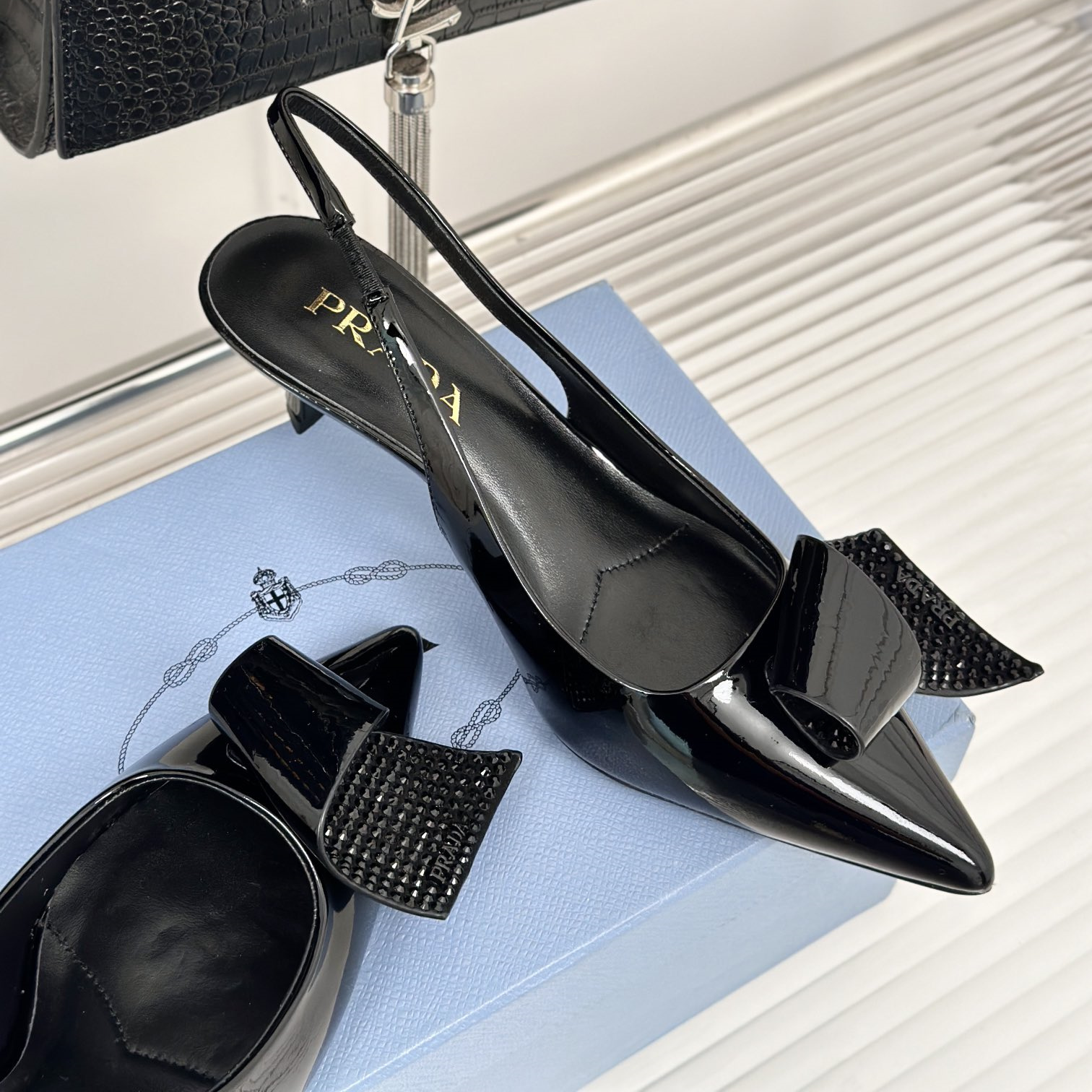 高仿Prada*1I345N水鑽蝴蝶結高踭鞋漆皮黑色5.5CM免檢版