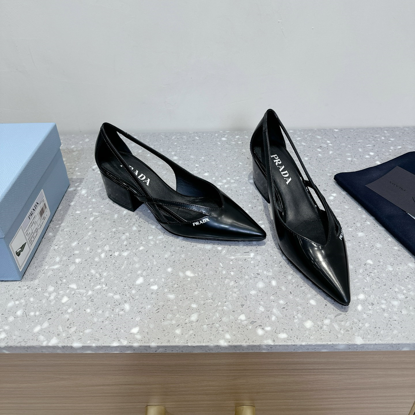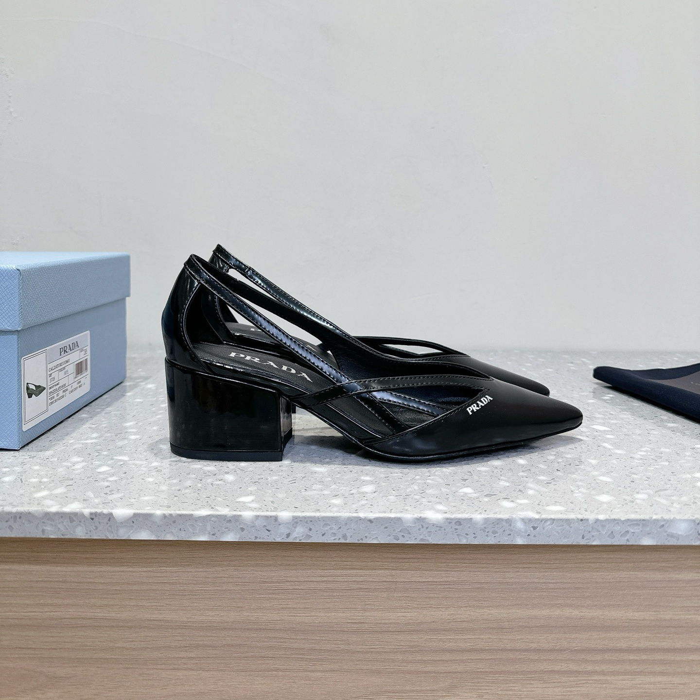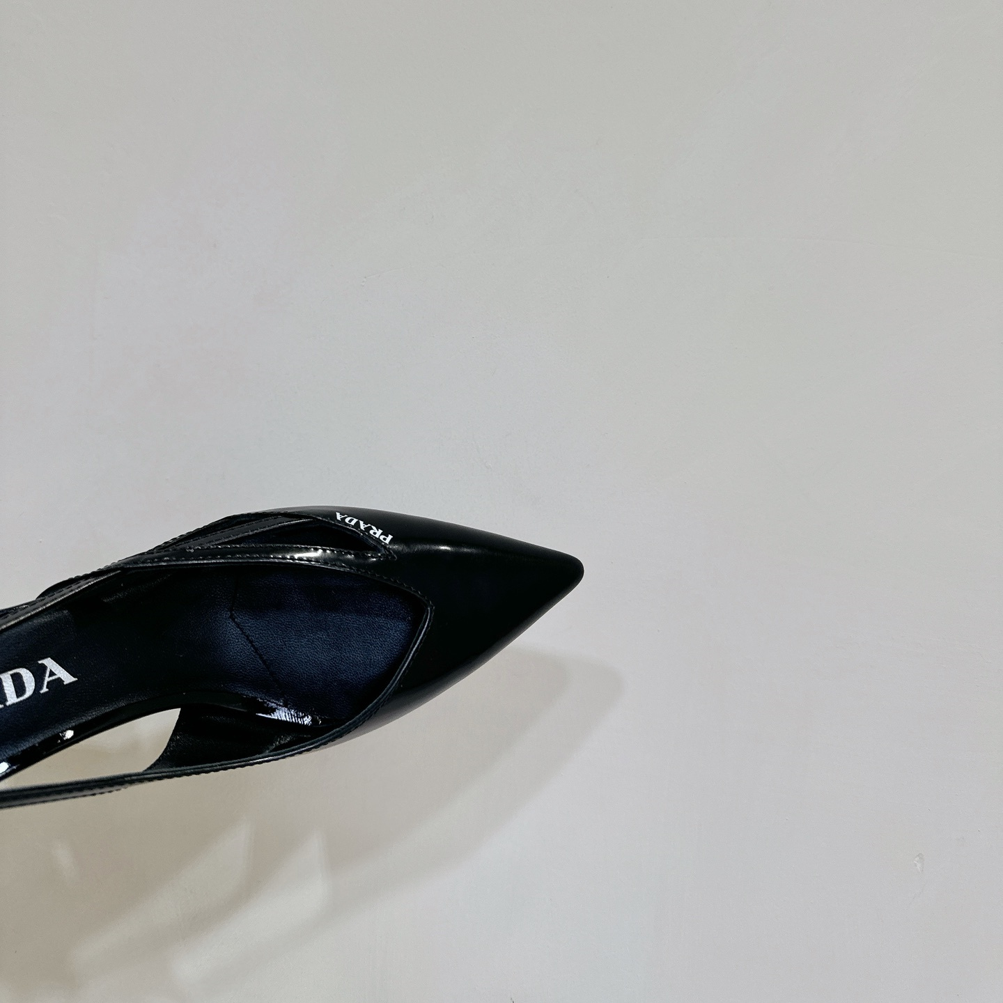 高仿Prada*1I747N尖頭粗跟高踭鞋5.5CM黑色免檢版
