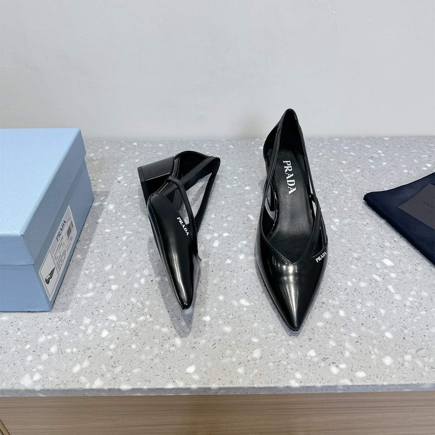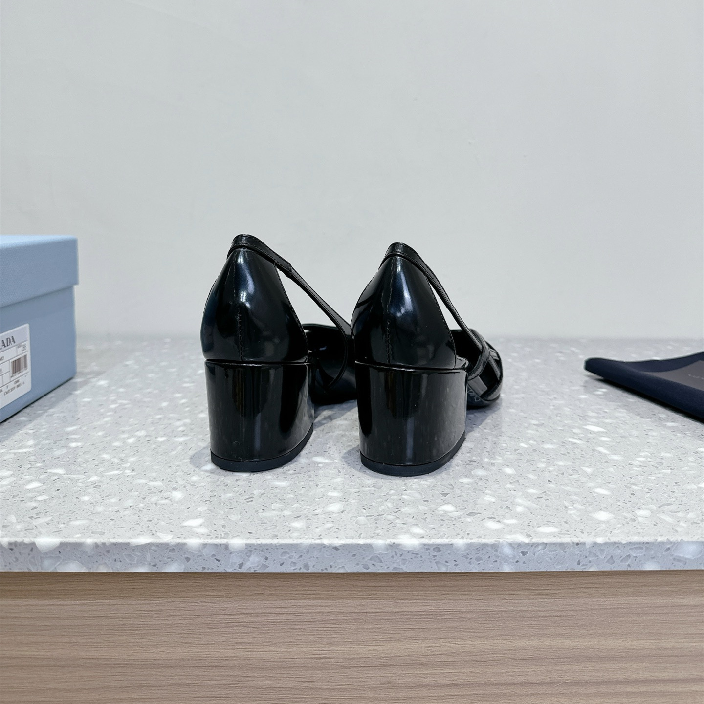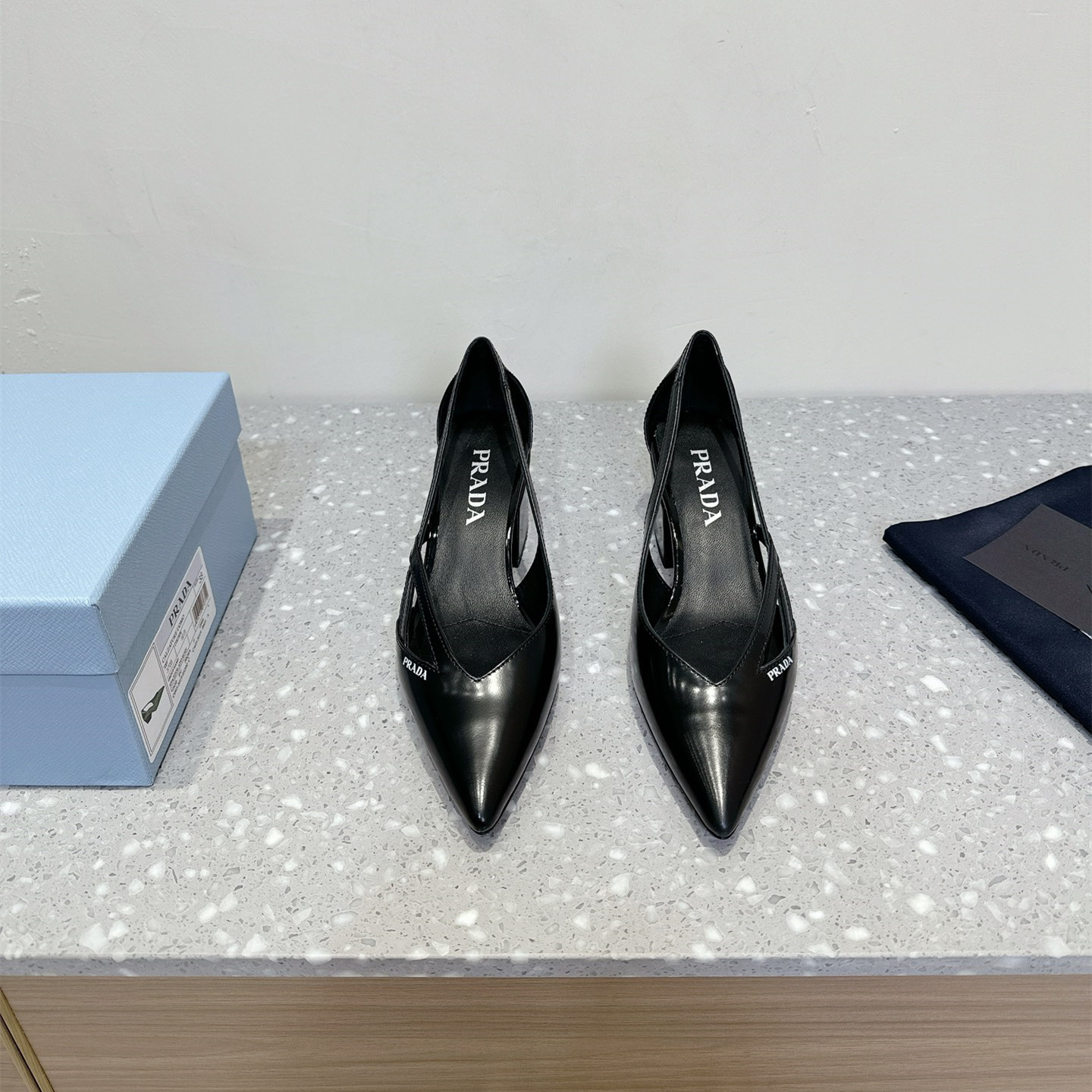 高仿Prada*1I747N尖頭粗跟高踭鞋5.5CM黑色免檢版