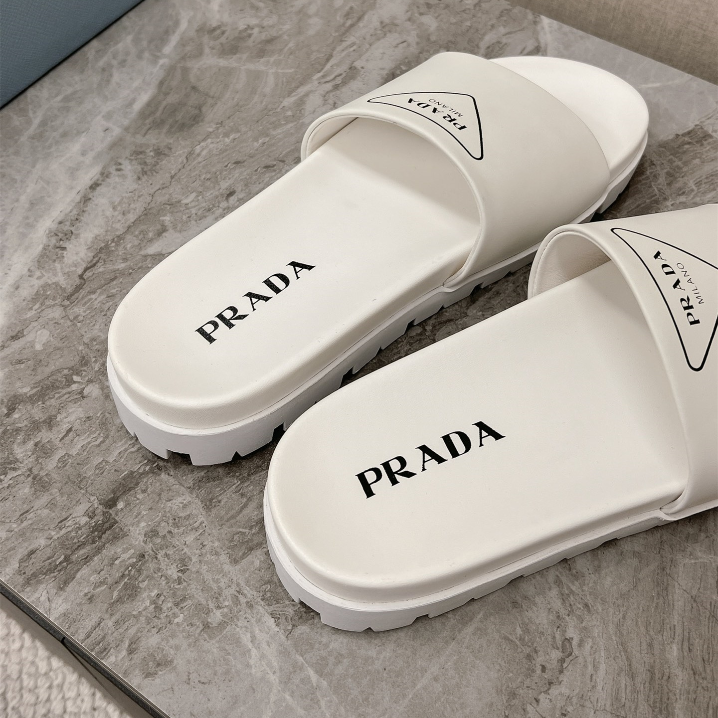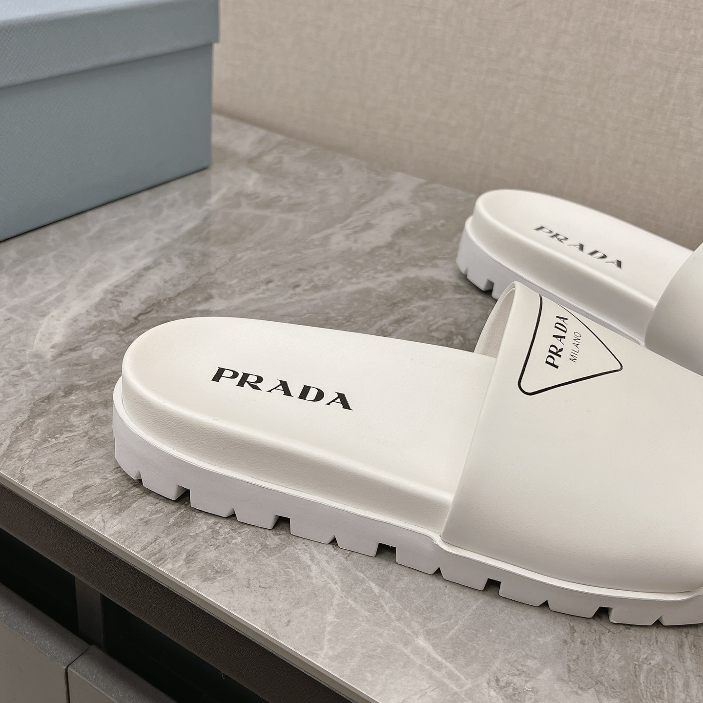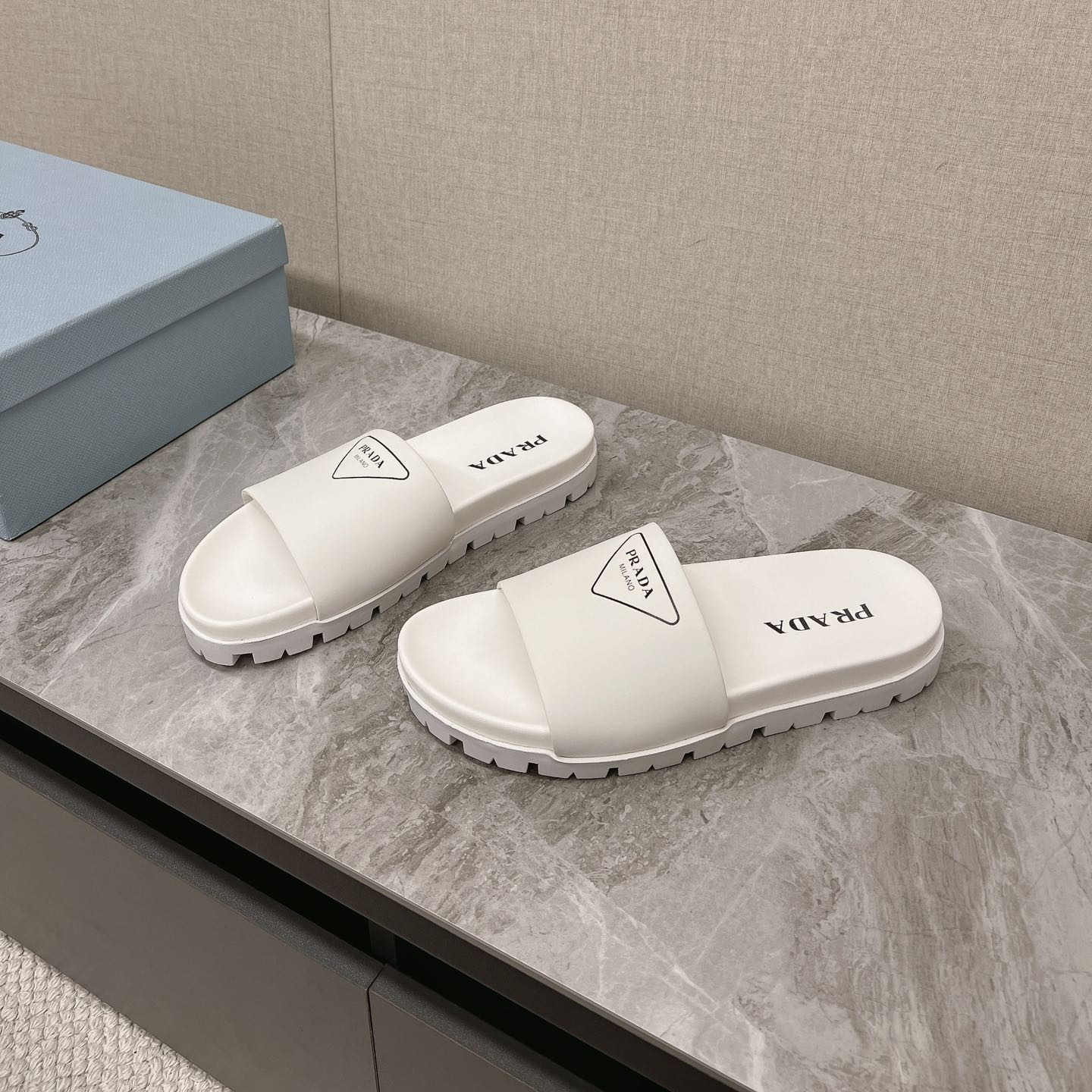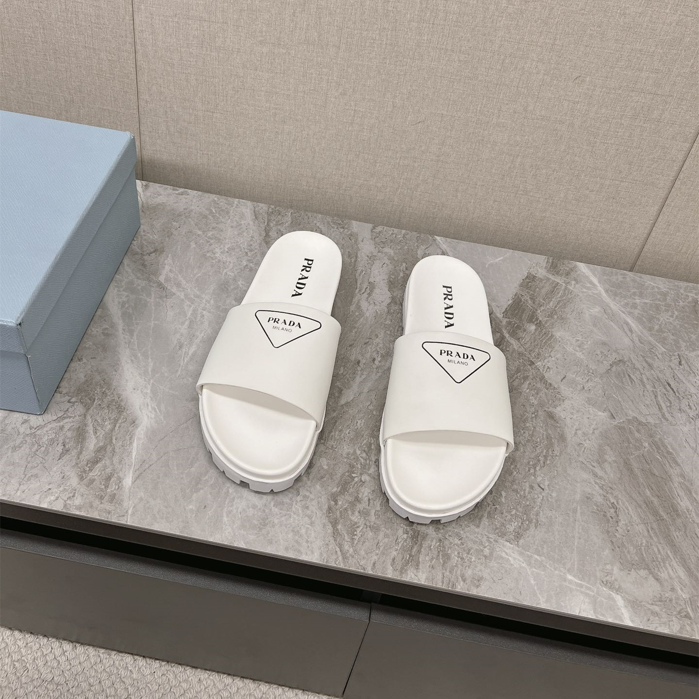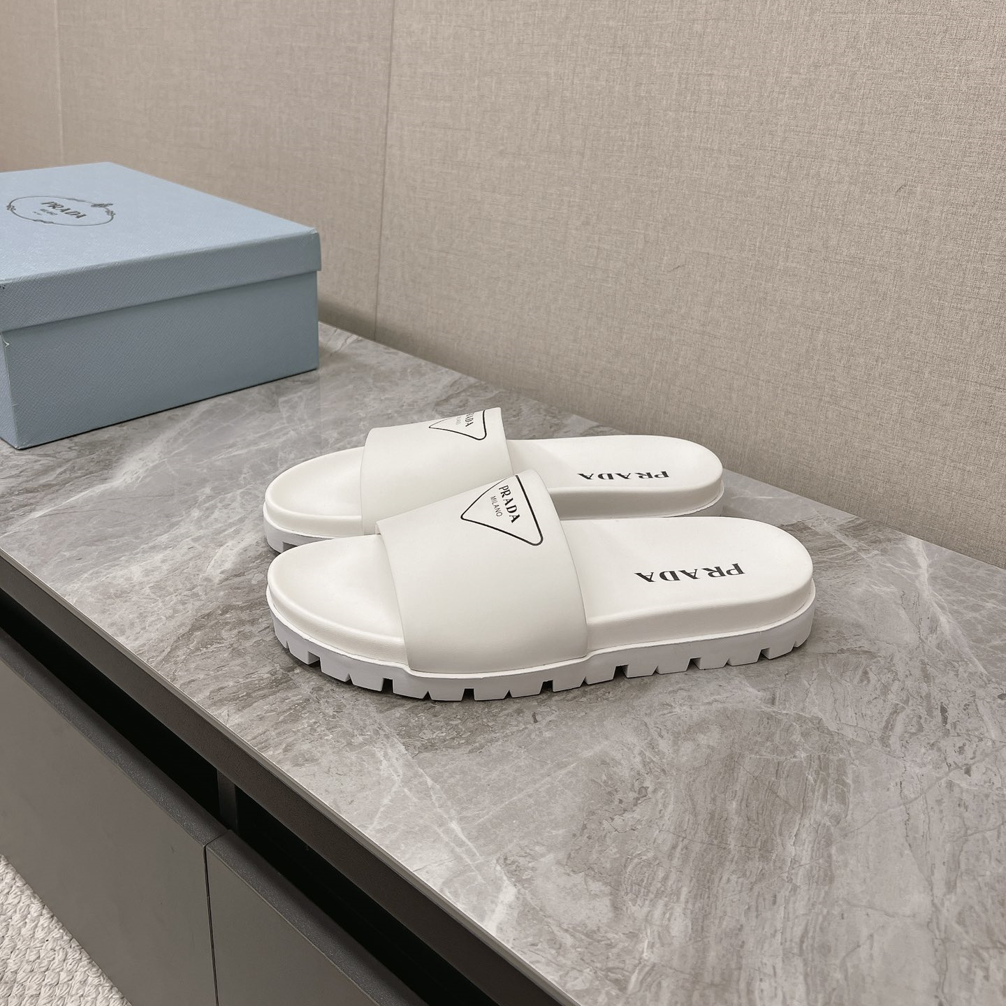 / 高仿Prada*1XX582M男女同款拖鞋塗層字母白色免檢版
