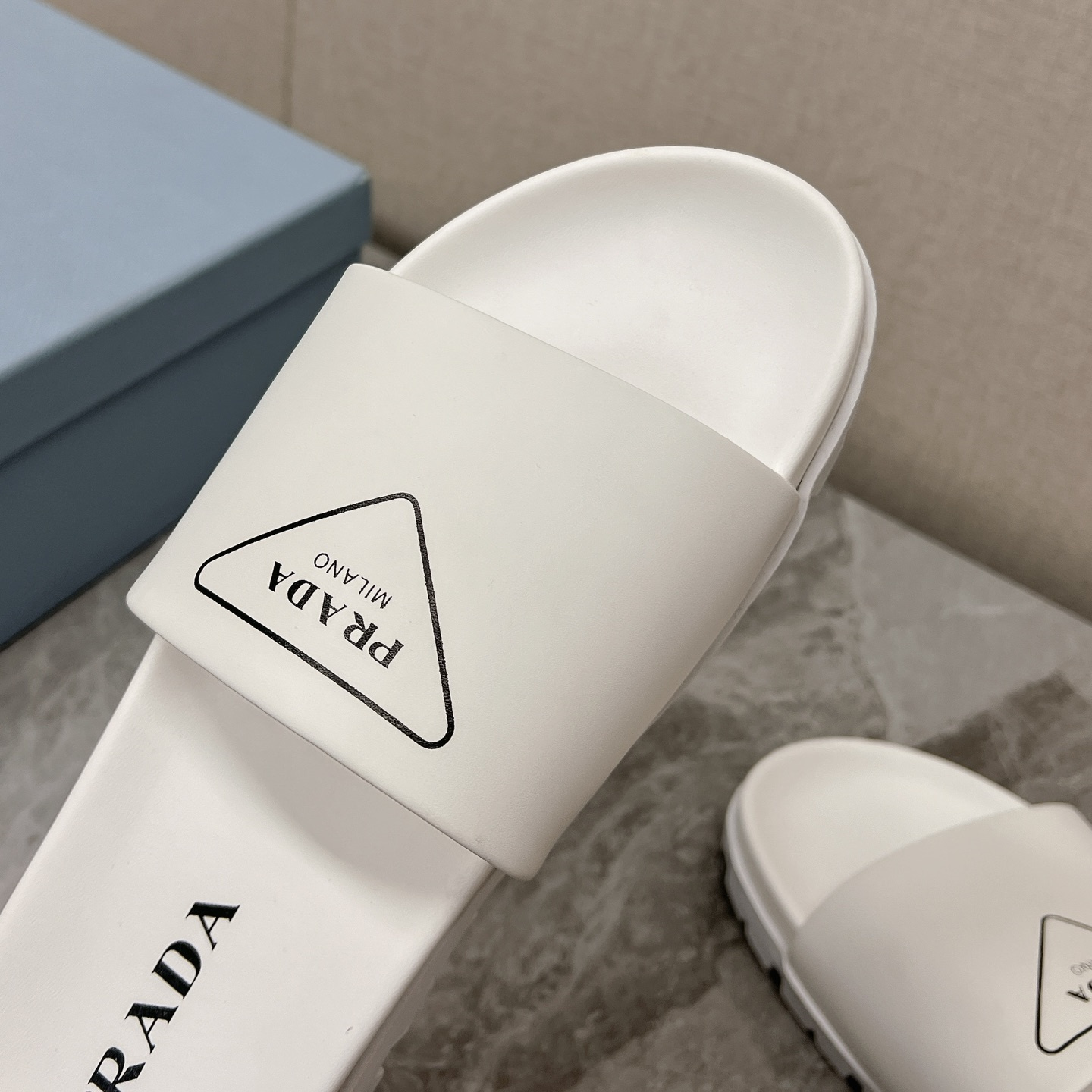 高仿Prada*1XX582M男女同款拖鞋塗層字母白色免檢版