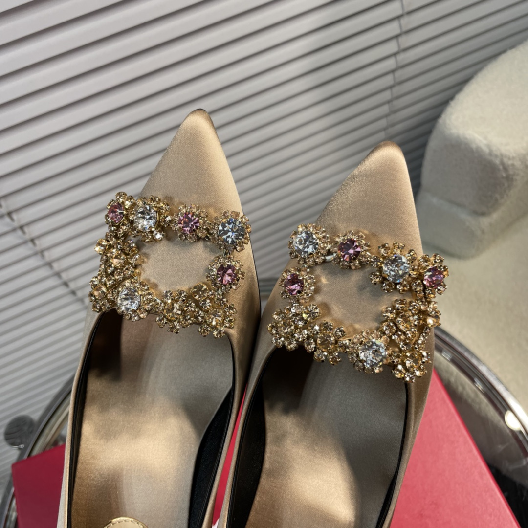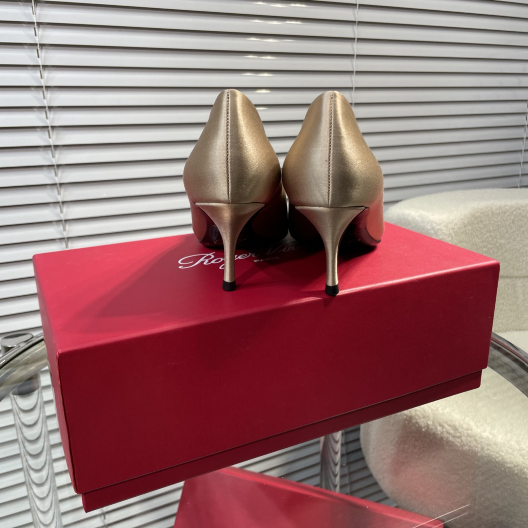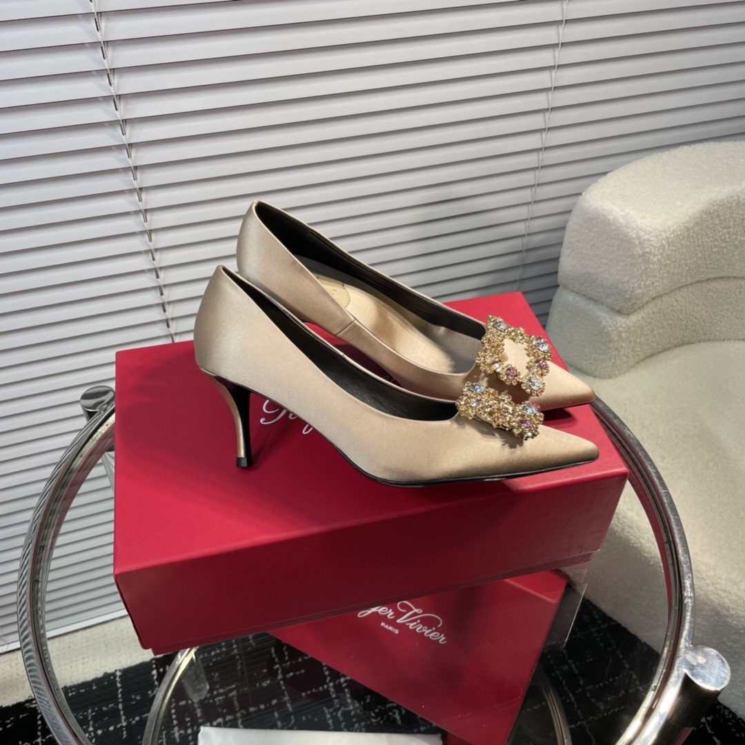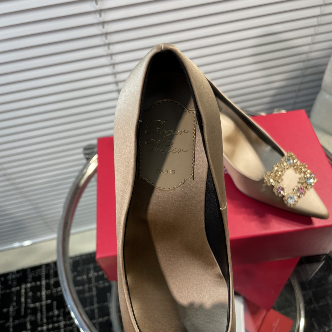 高仿RogerVivier*RVW4142水鑽真絲高踭鞋銅色6.5CM免檢版