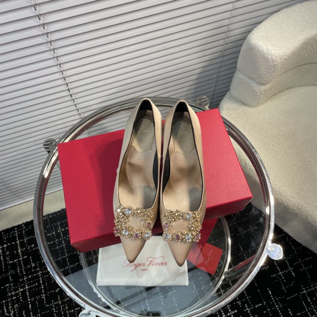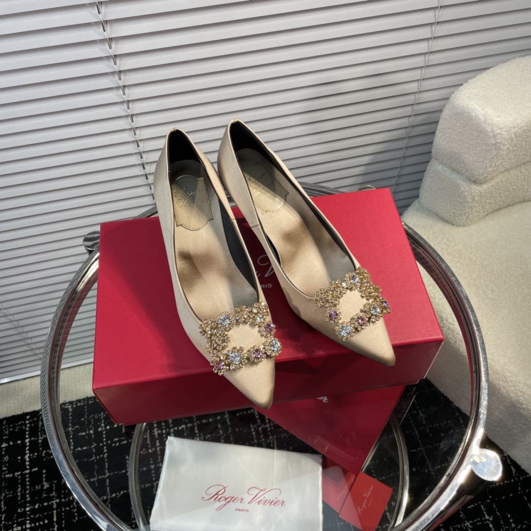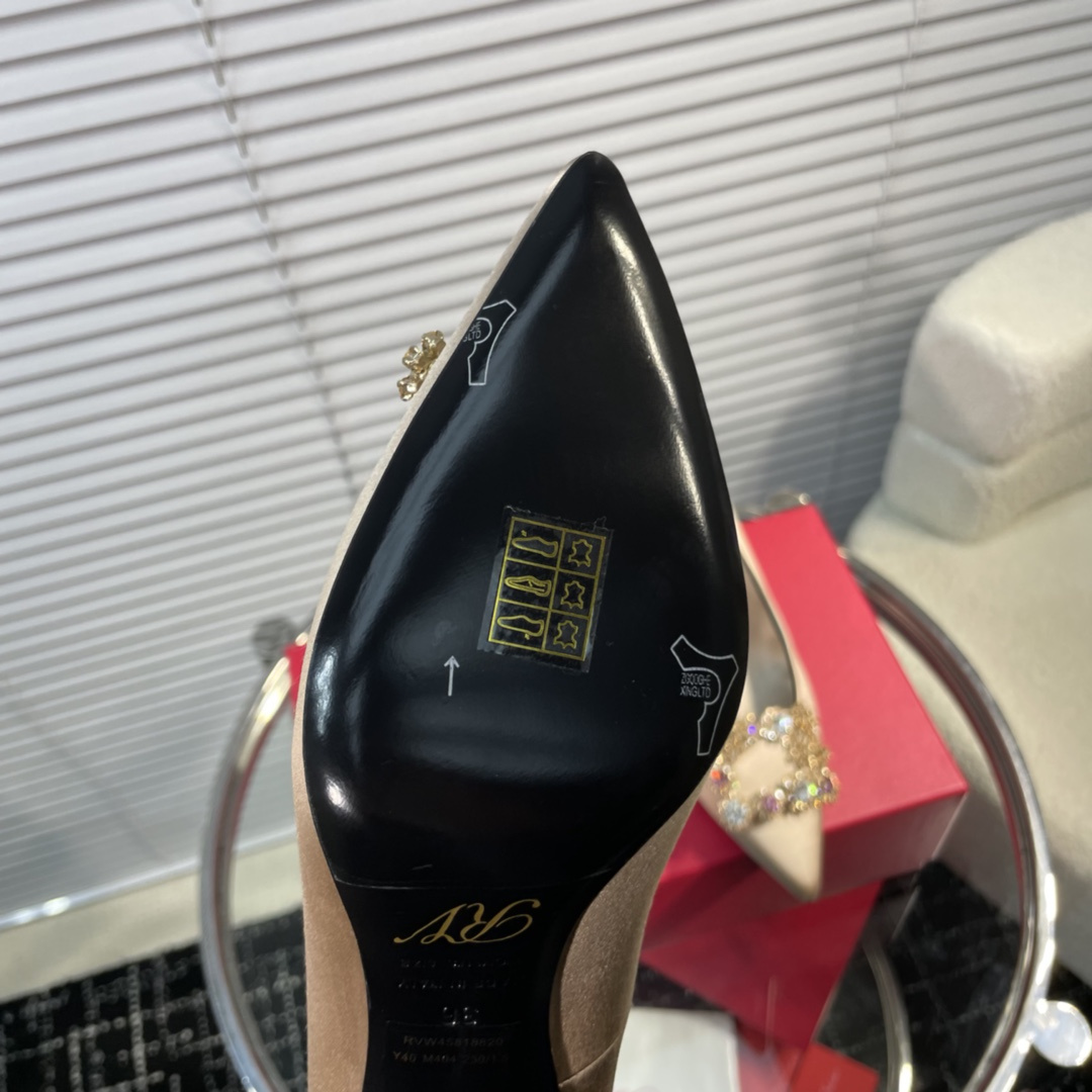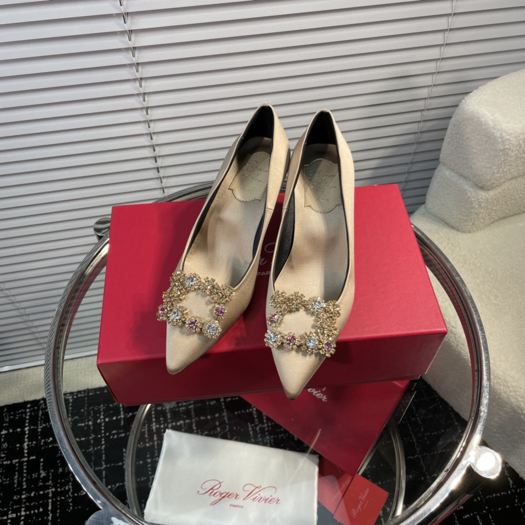 高仿RogerVivier*RVW4142水鑽真絲高踭鞋銅色6.5CM免檢版