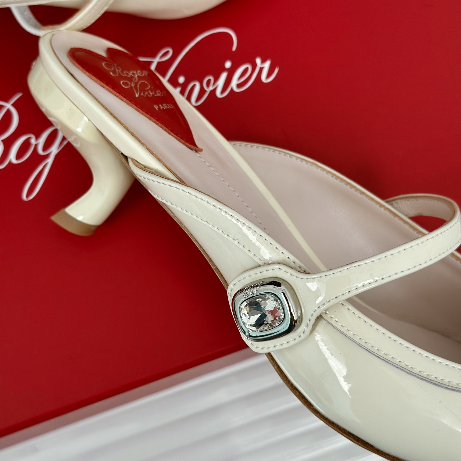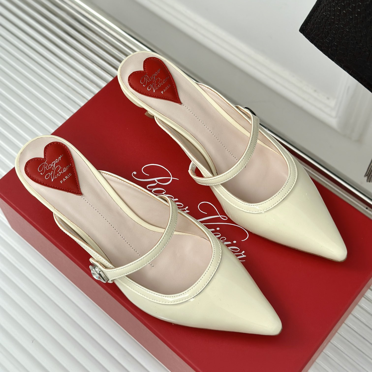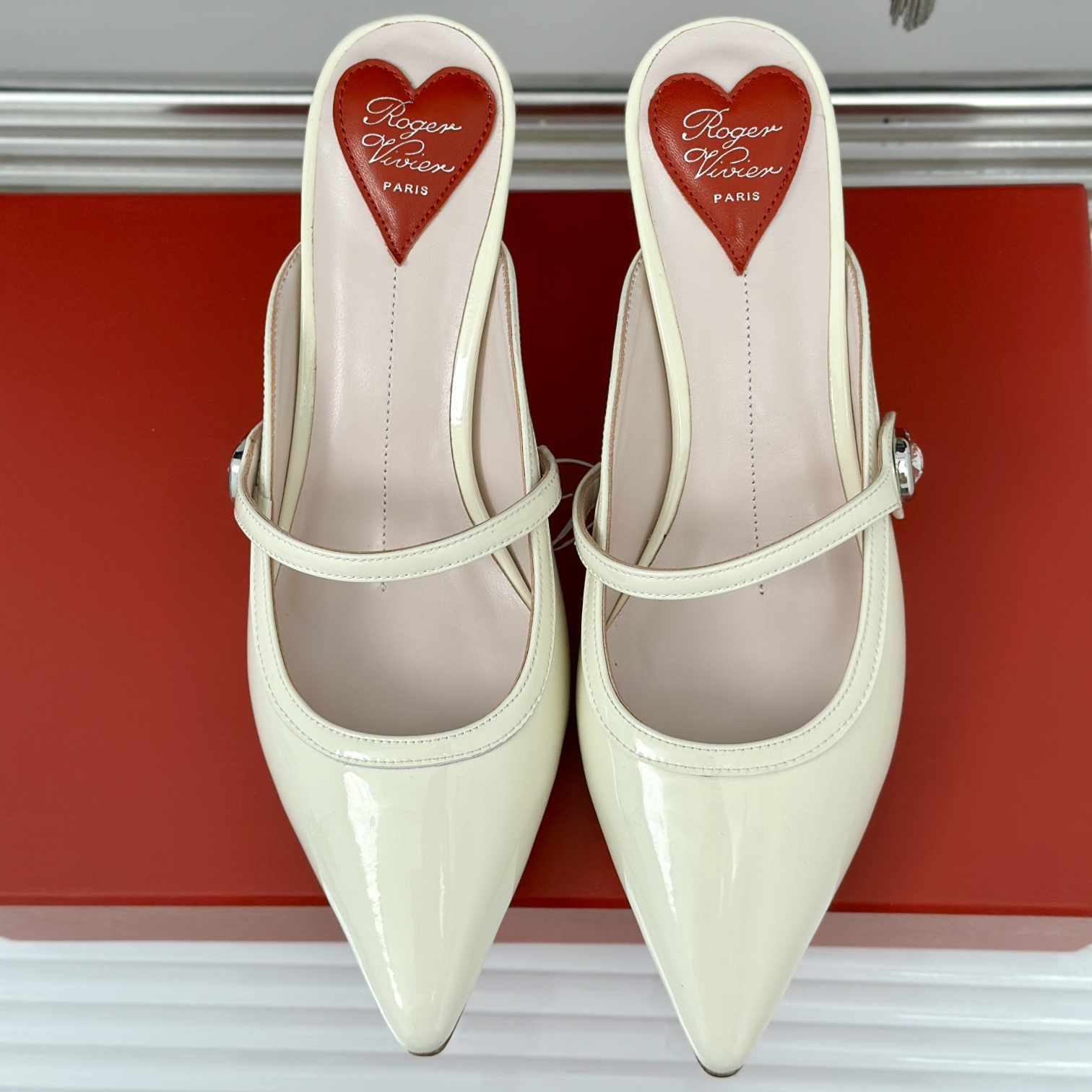 高仿RogerVivier*RVW6385尖頭鑽扣拖鞋裸色5.6CM免檢版