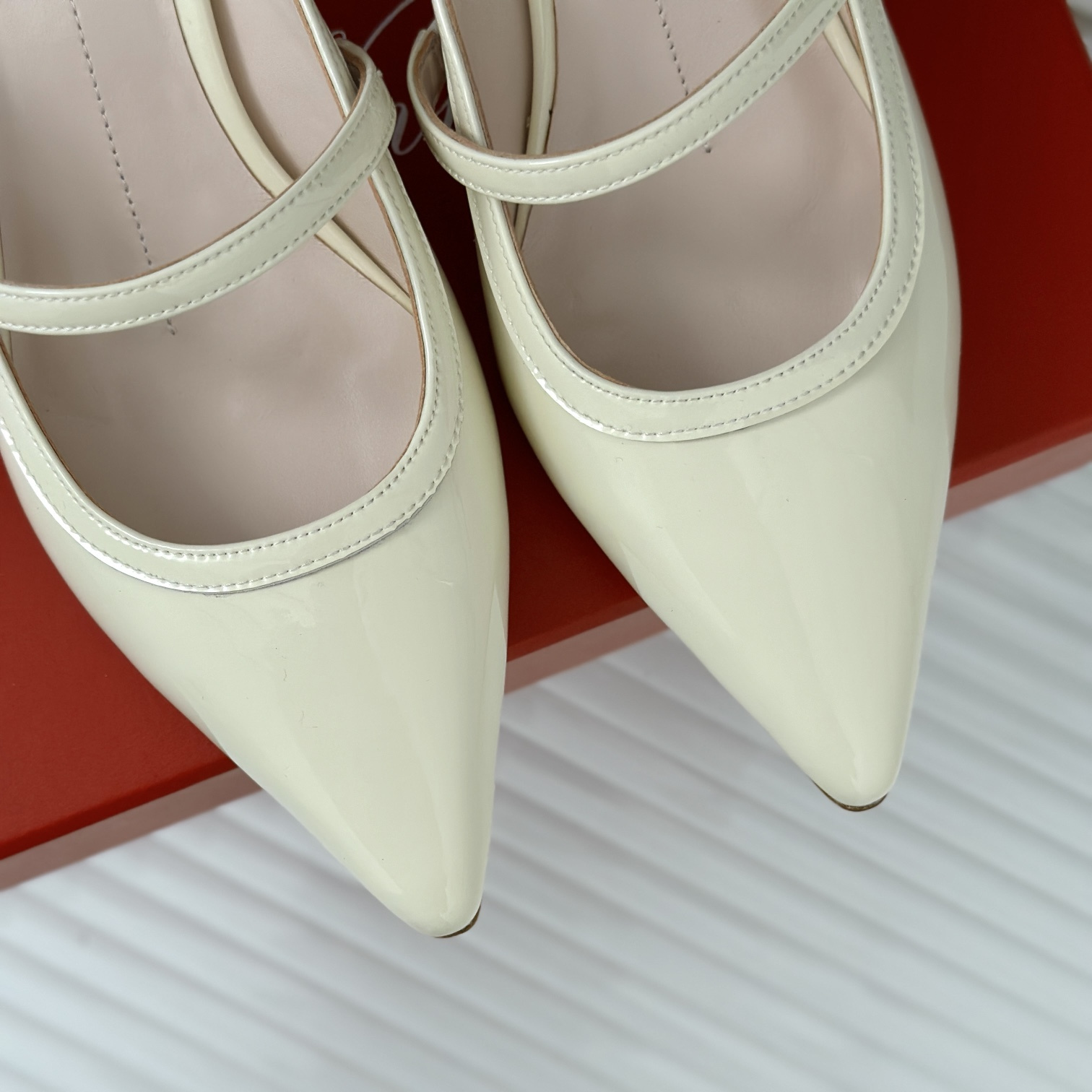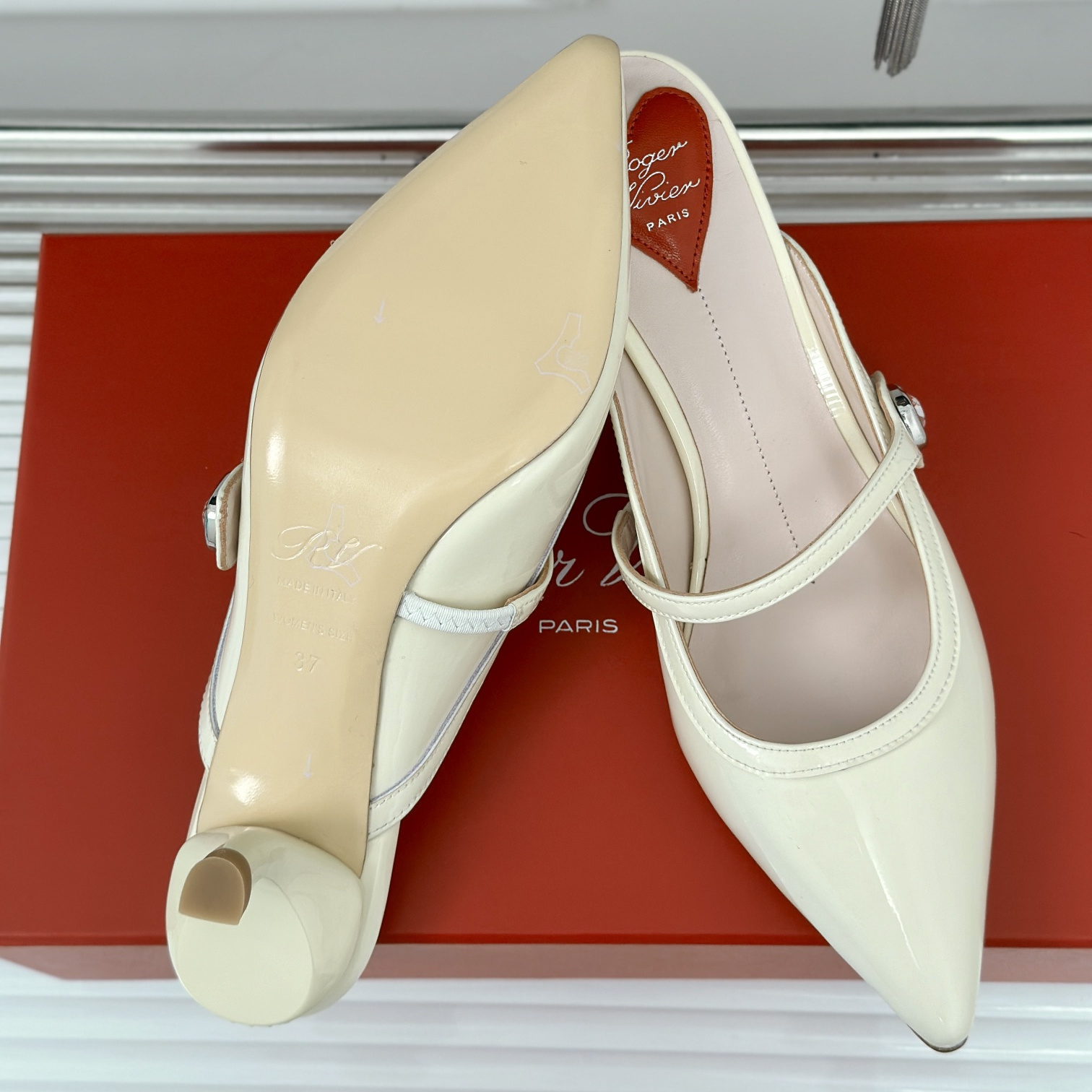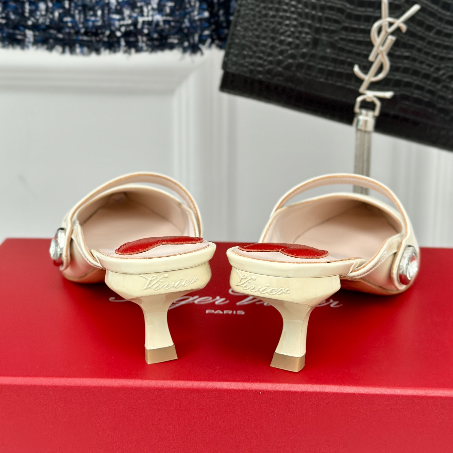 高仿RogerVivier*RVW6385尖頭鑽扣拖鞋裸色5.6CM免檢版