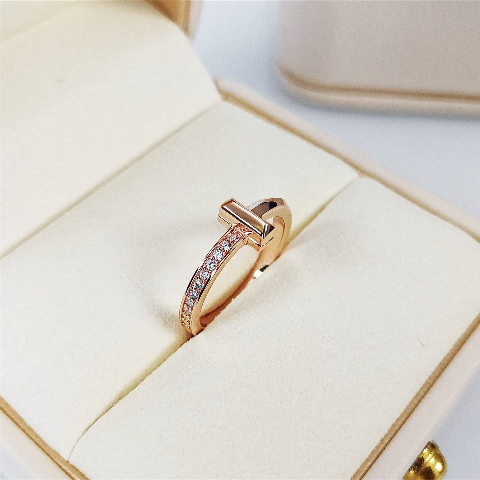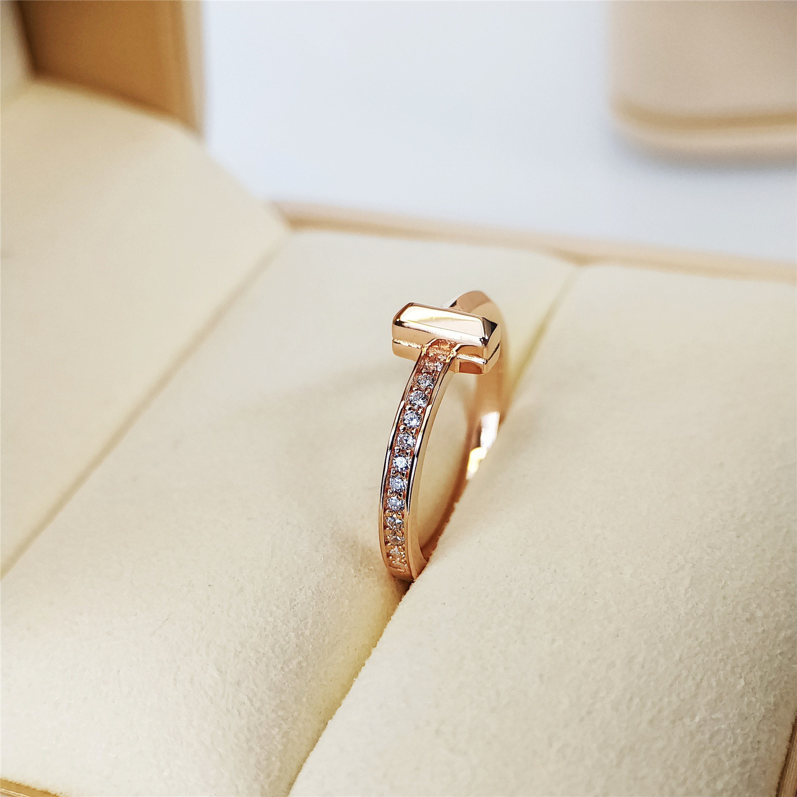 高仿Tiffany&CO蒂芙尼T系列GRP11292窄式鑲嵌戒指玫瑰金