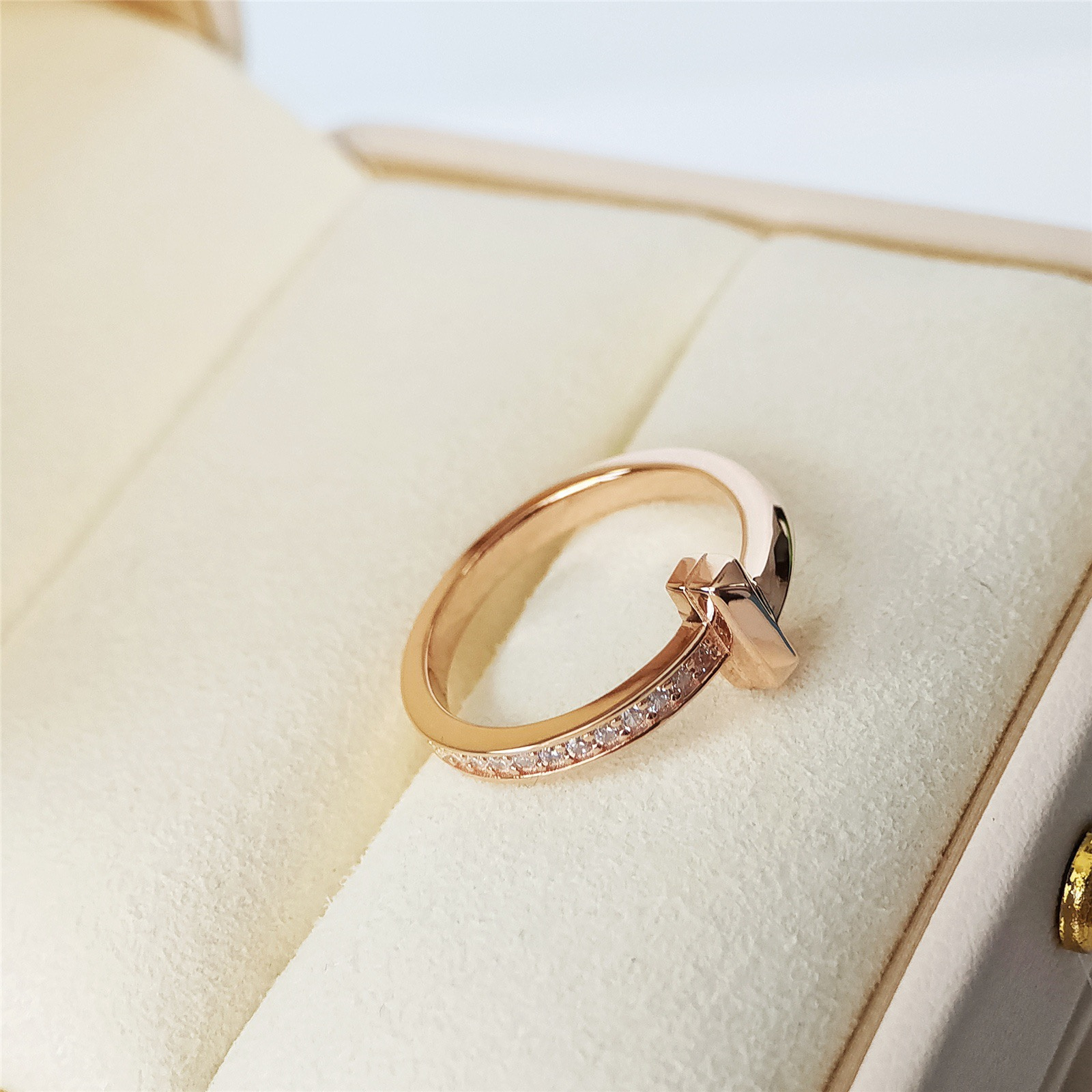 高仿Tiffany&CO蒂芙尼T系列T窄版半鉆T字戒指!當之無愧今天C位出道重磅系列,而戒指中最火爆的當屬窄版半鉆這款!絕對是一見挪不開眼系列!!!簡潔線條,鮮明棱角,彰顯獨立主張與個性風采.打版有一段時間了,一直在對細節精雕細琢,以致敬C位!款式很簡單,功夫全在細節