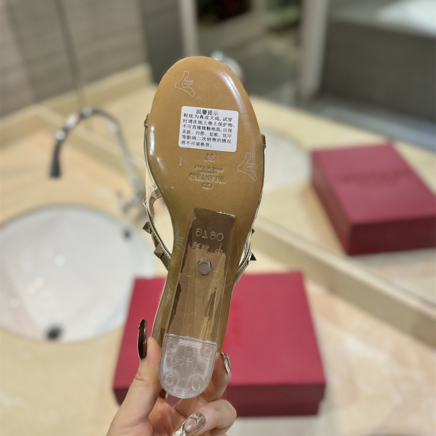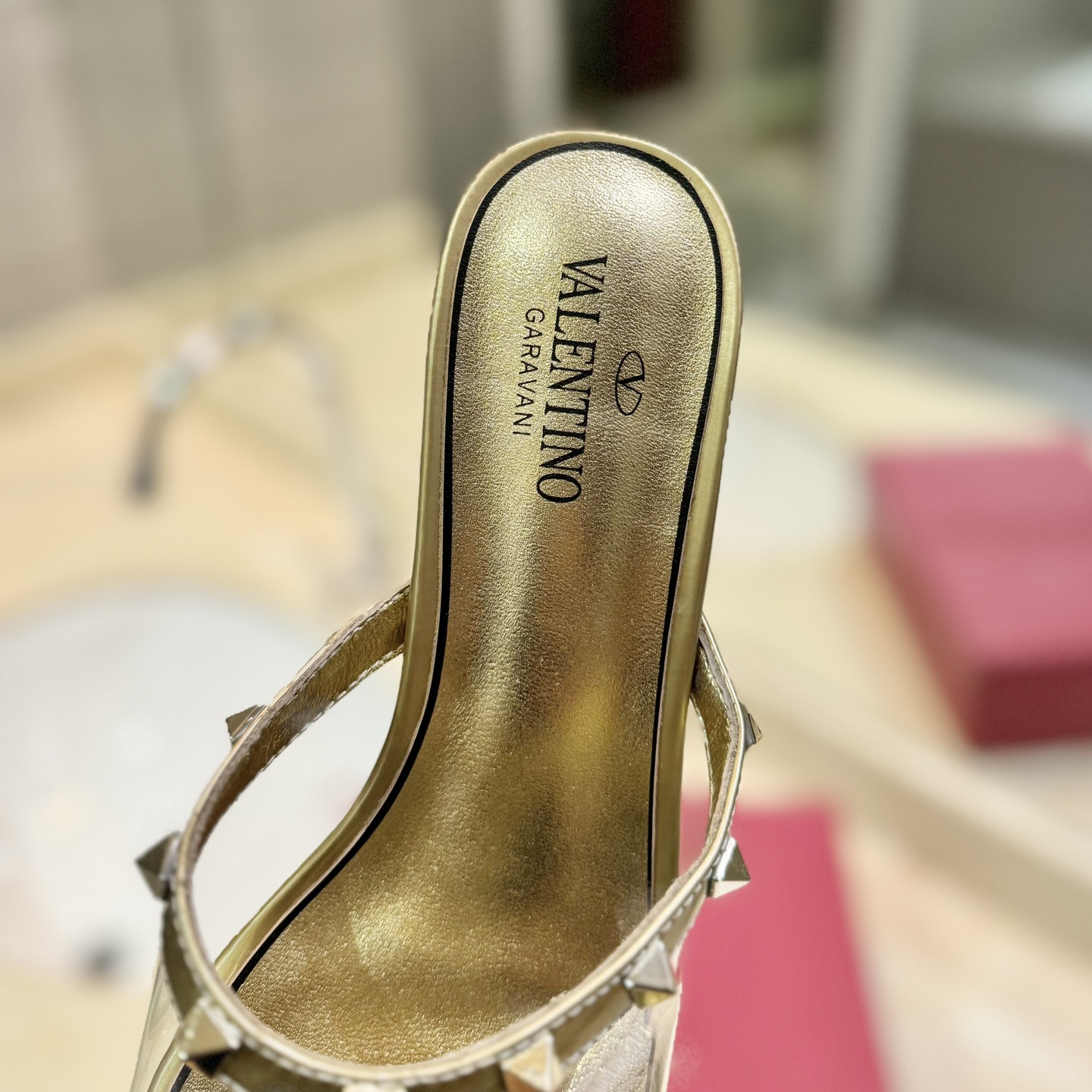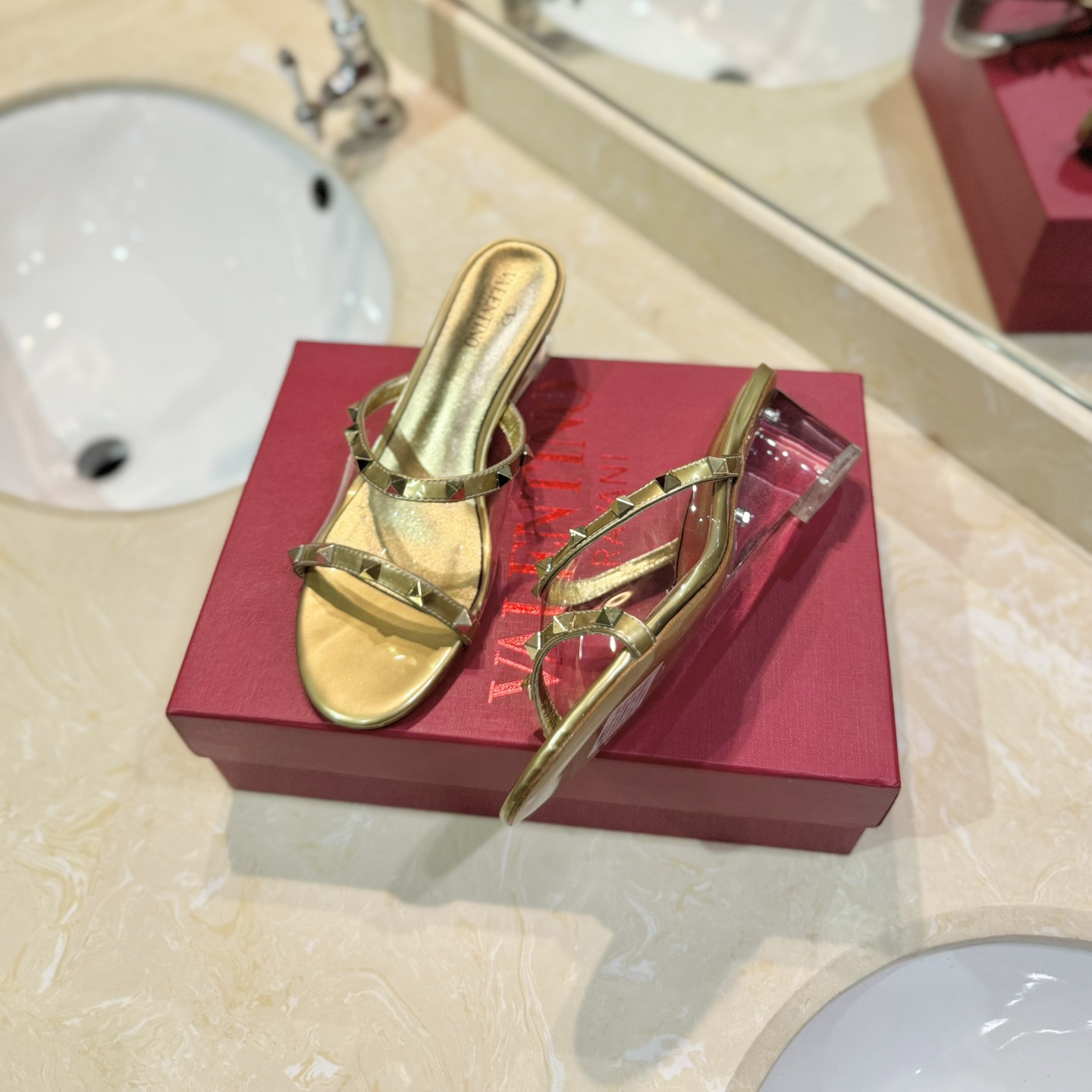 高仿Valentino*2W0S0GK鉚釘水晶踭涼鞋金色膠片4.5CM免檢版