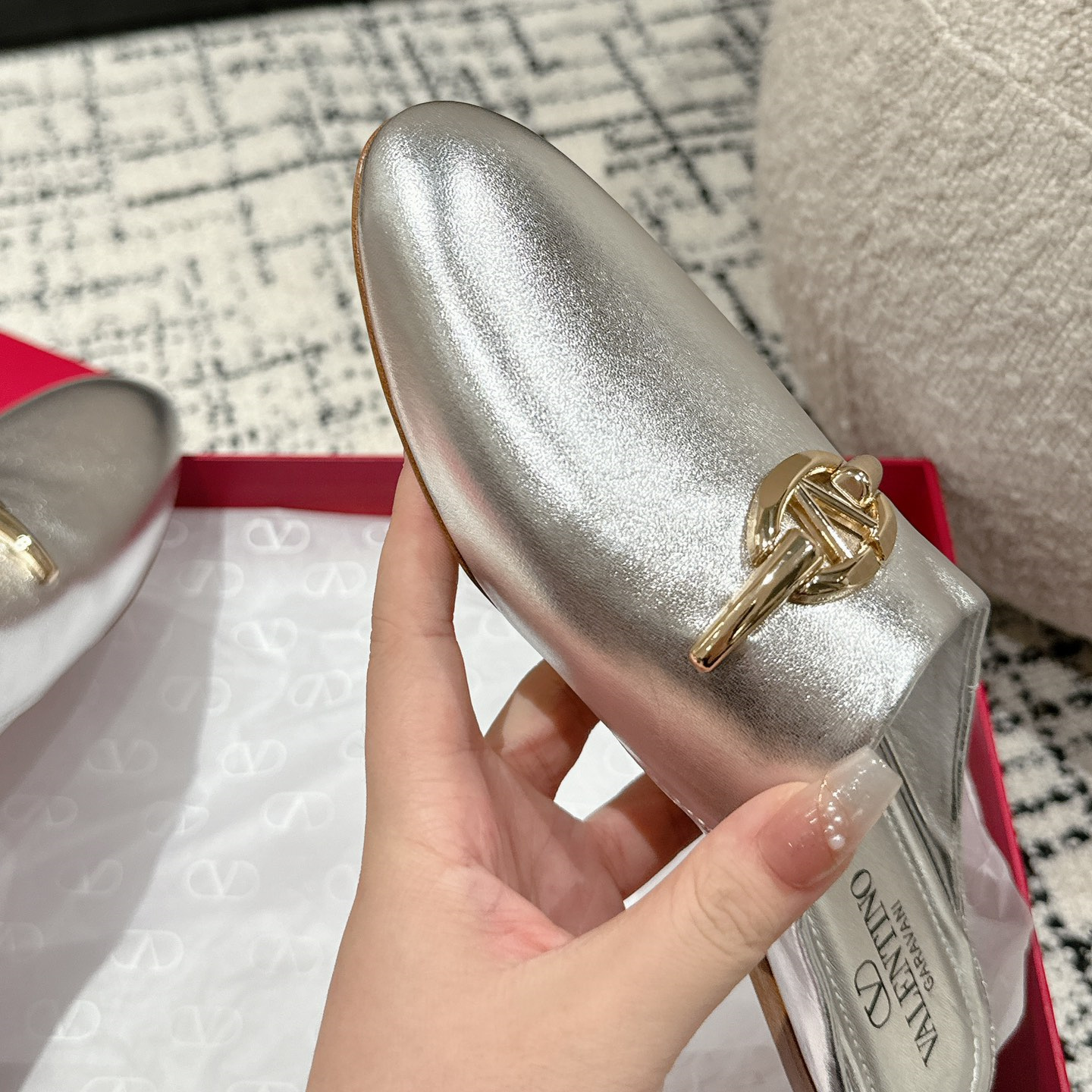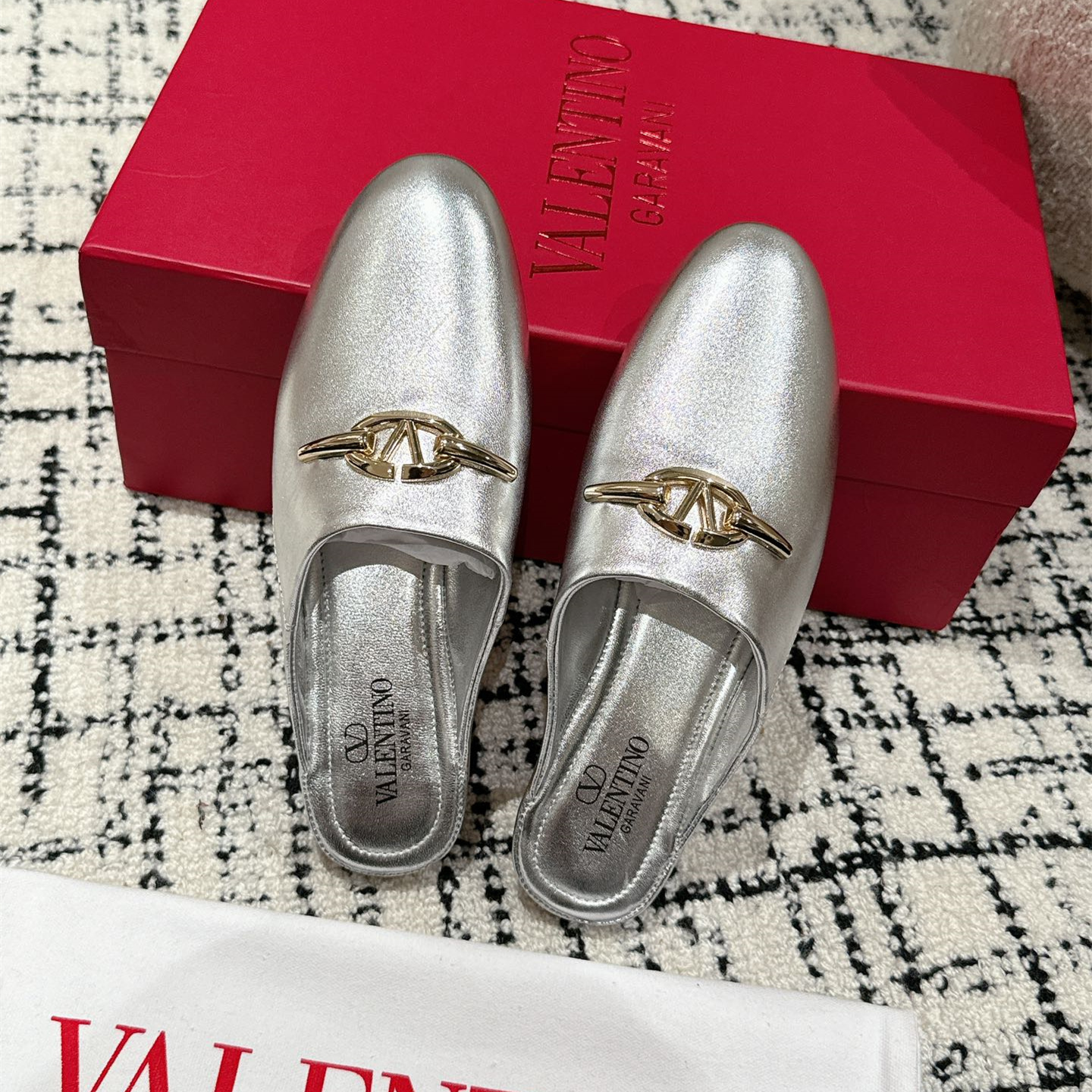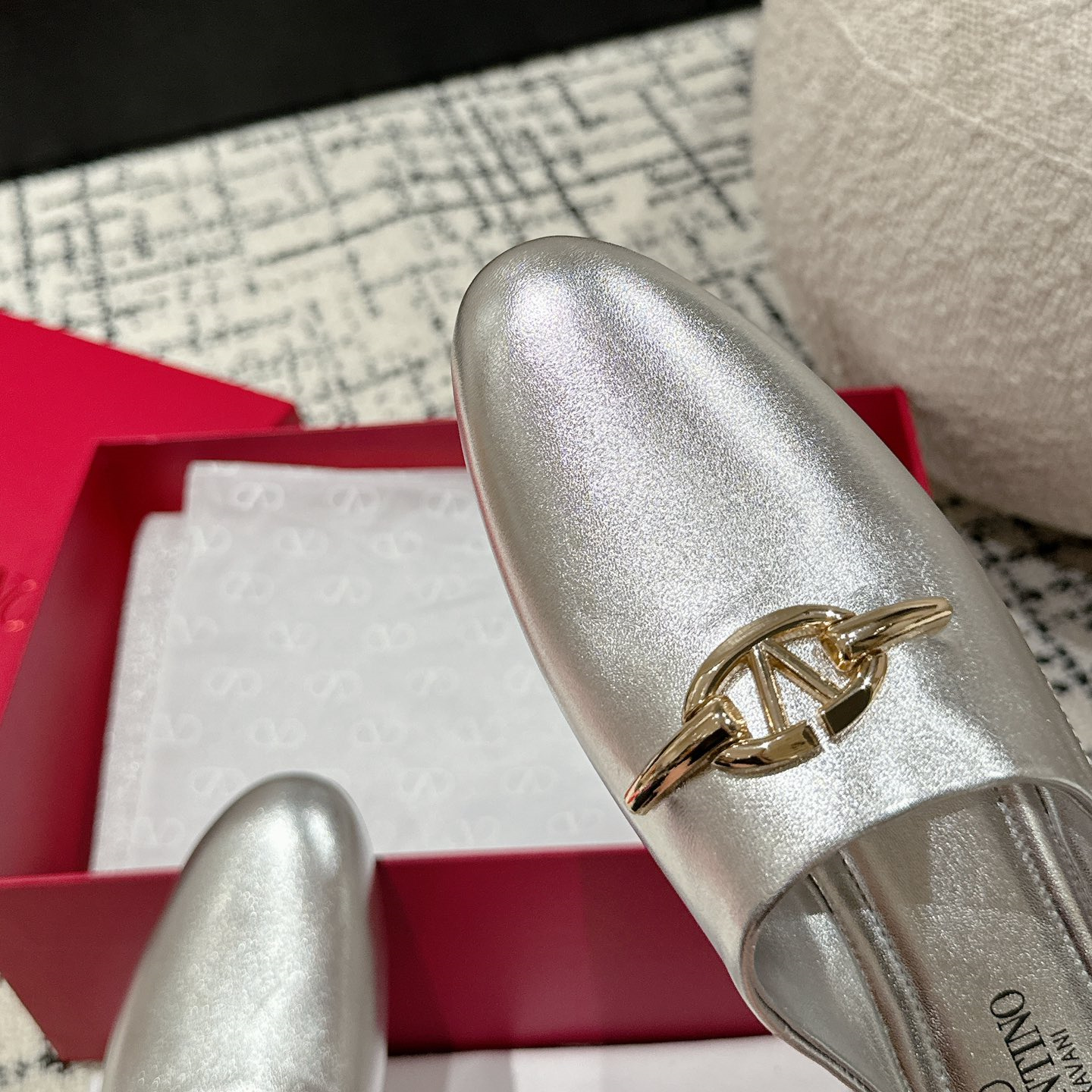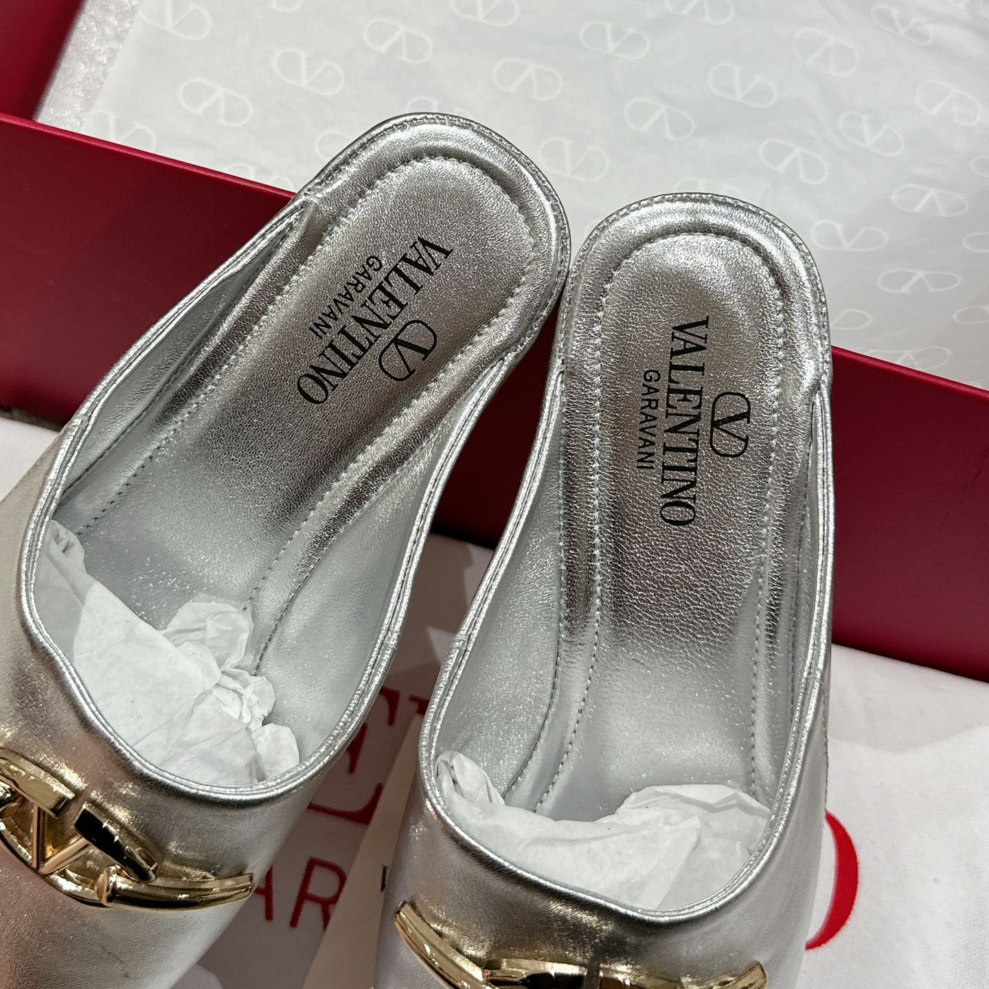 高仿Valentino*4W2S0IQ簡約包頭拖鞋漆皮銀色免檢版