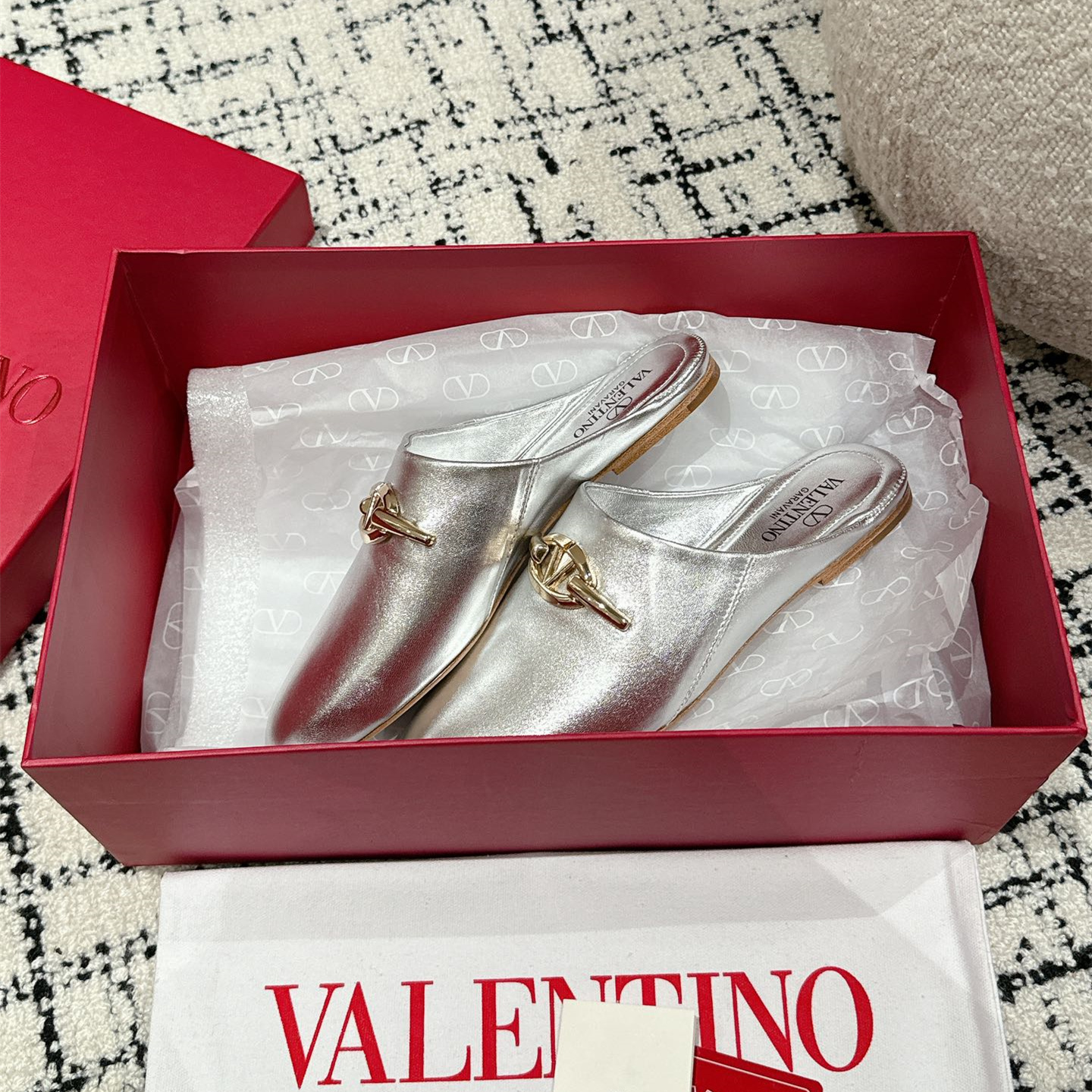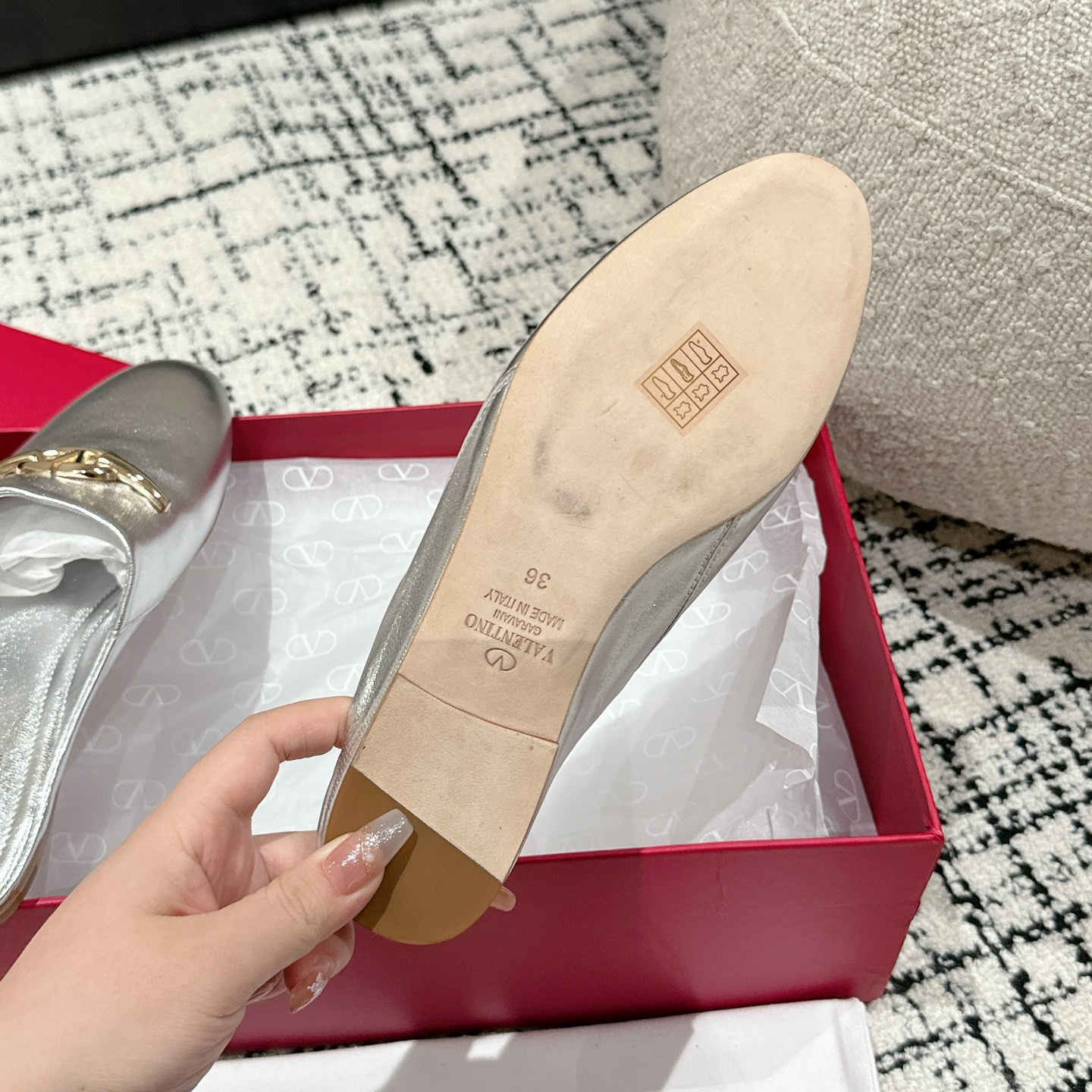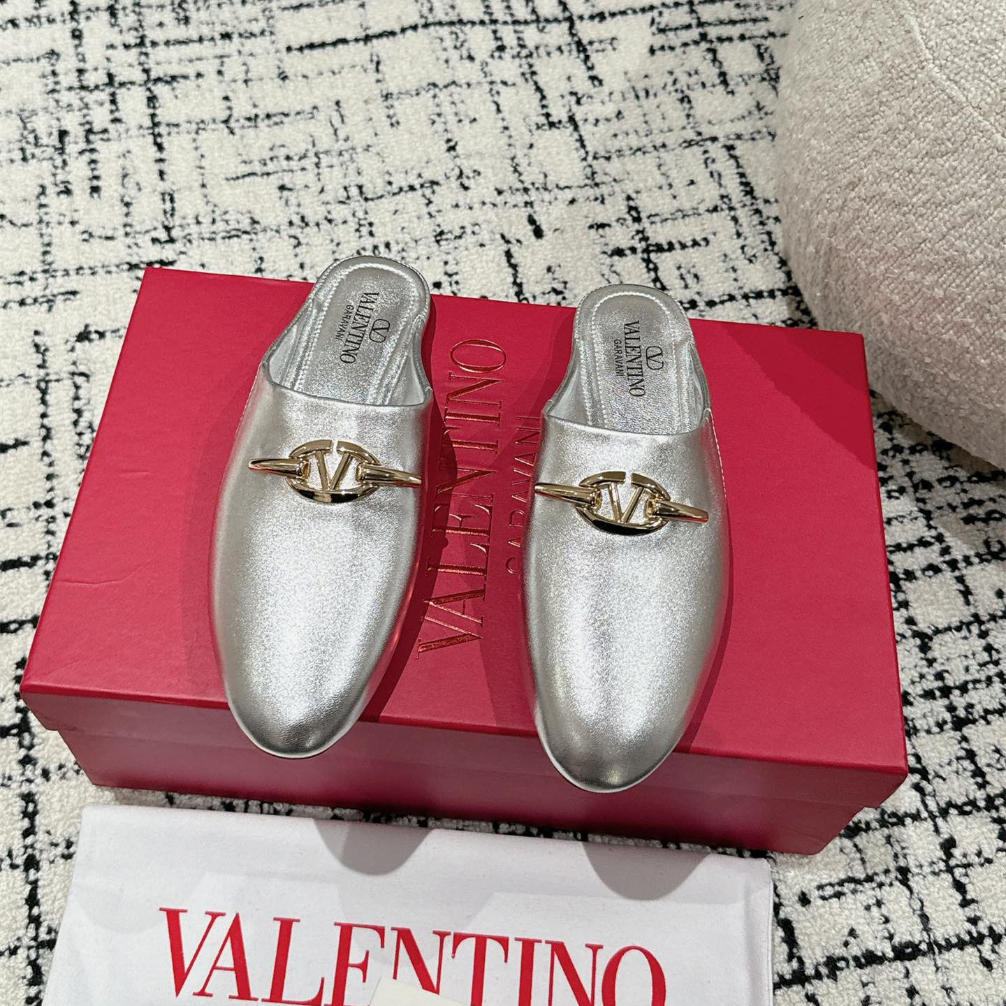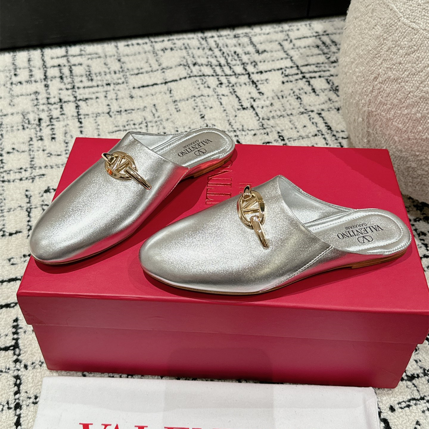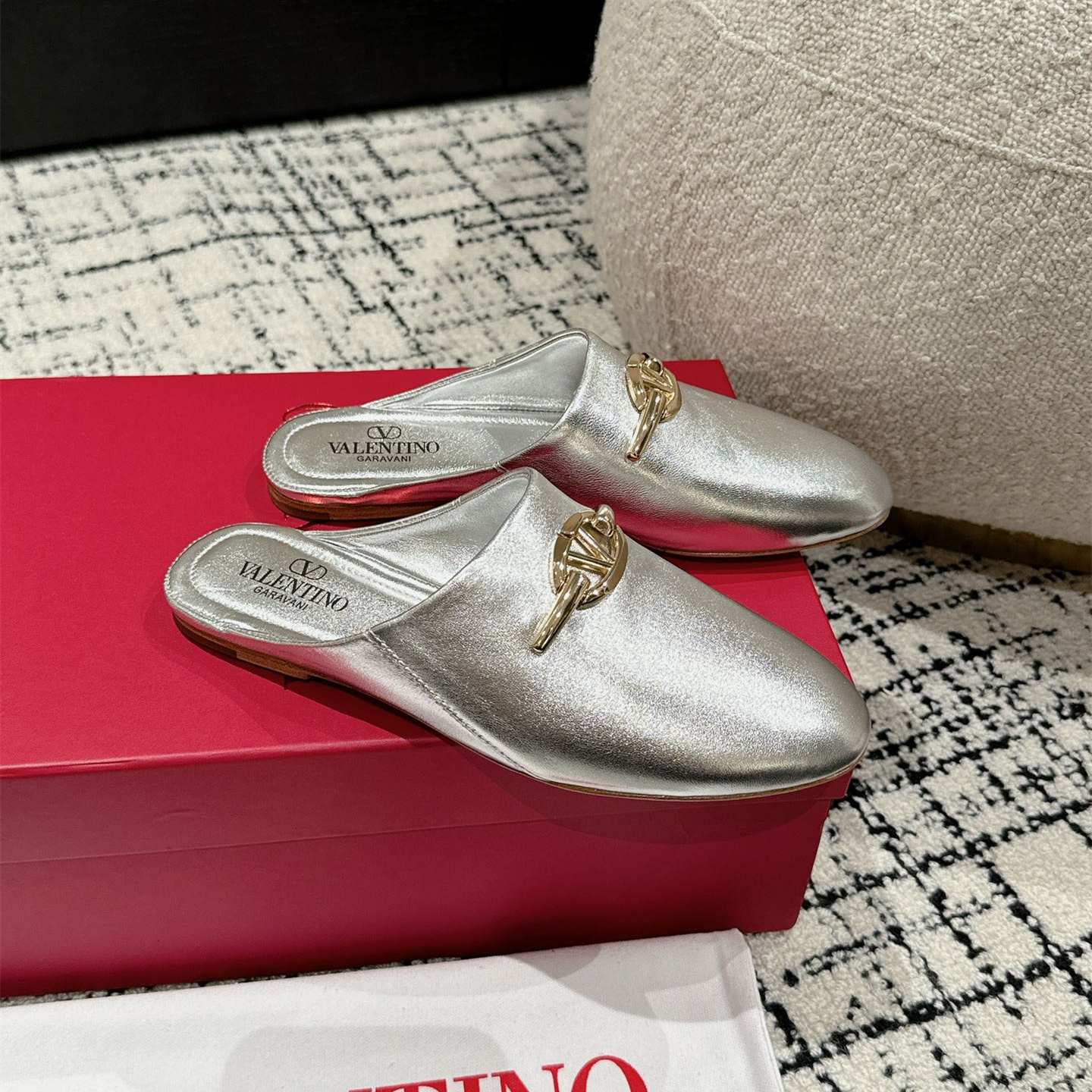 高仿Valentino*4W2S0IQ簡約包頭拖鞋漆皮銀色免檢版
