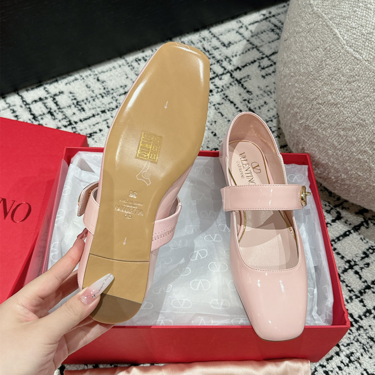 鞋面:進口小牛漆皮
