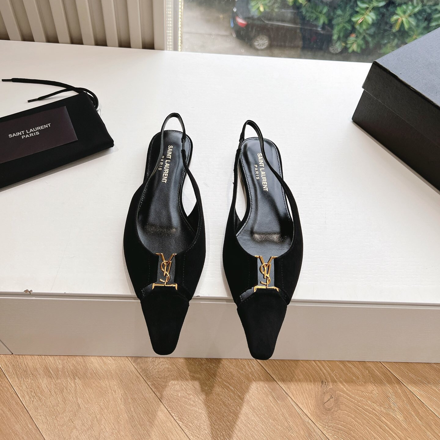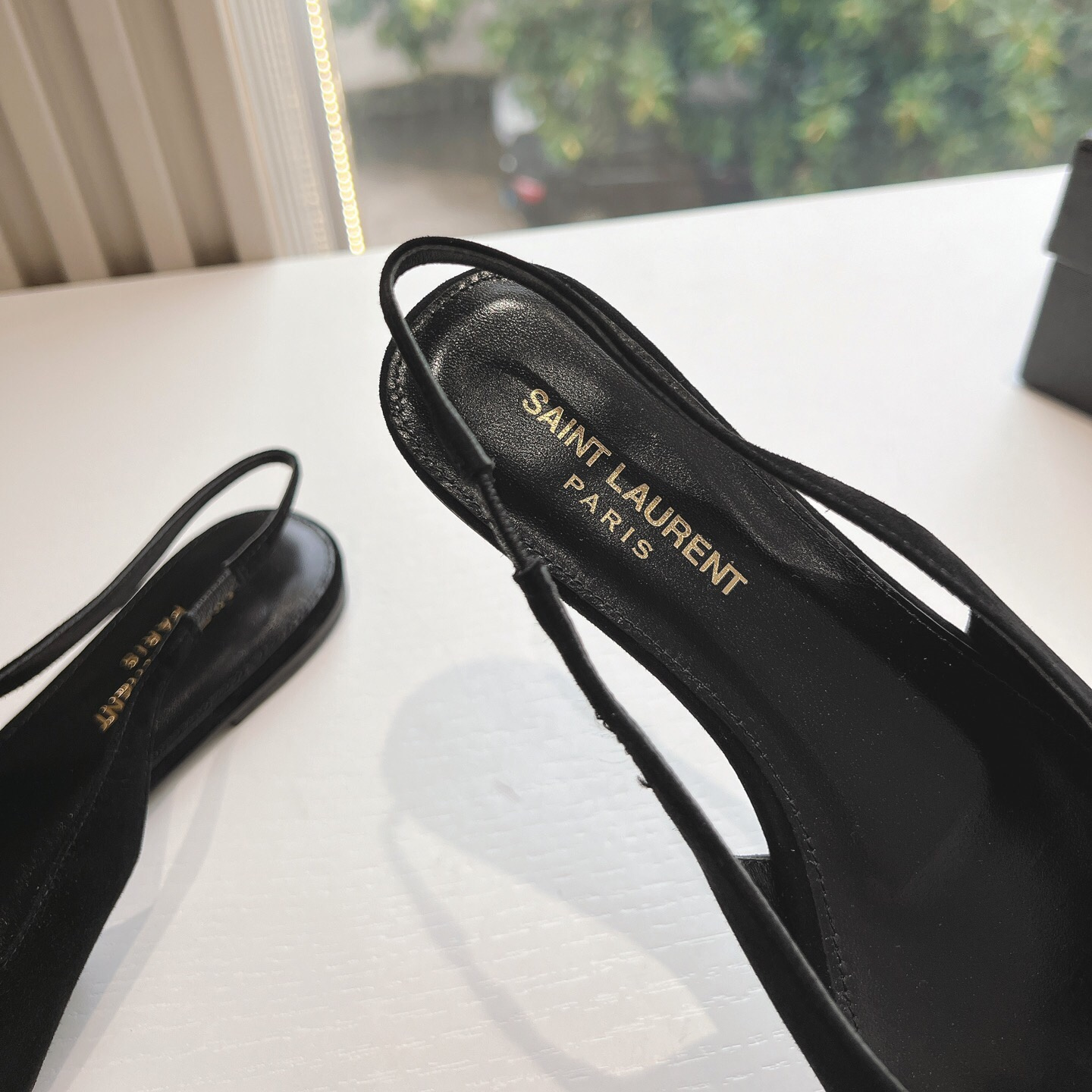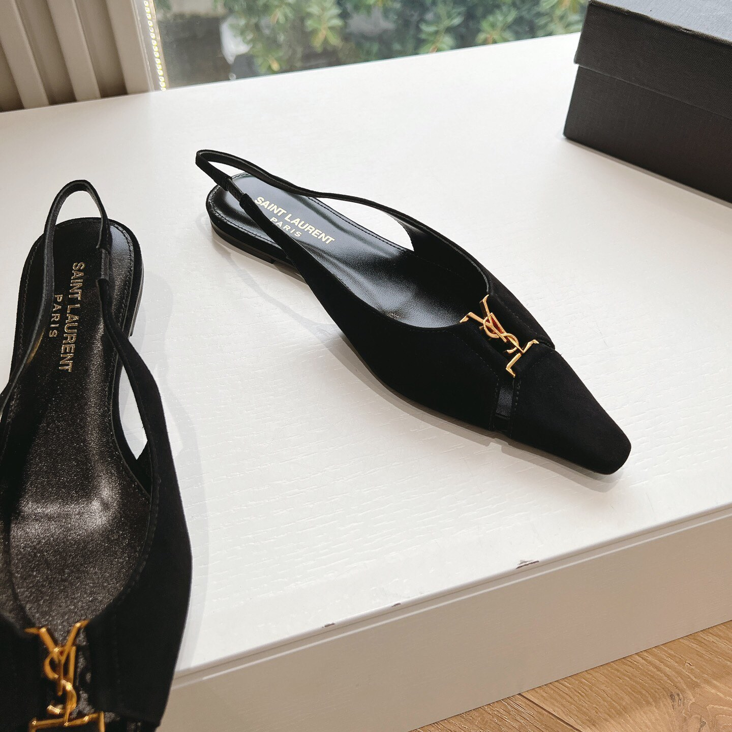 高仿YSL/聖羅蘭*Babylone系列803646T尖頭露跟平底鞋翻毛皮免檢版