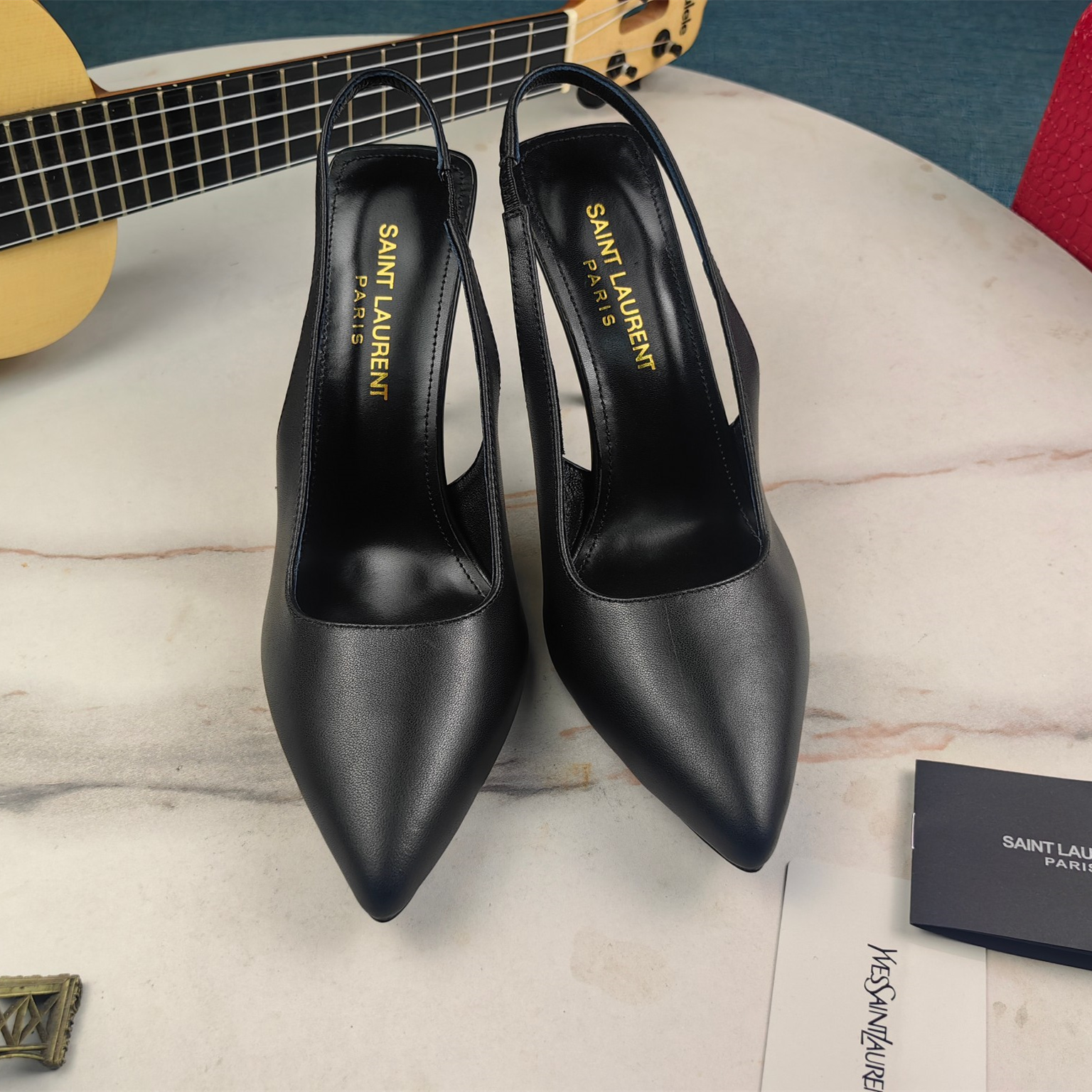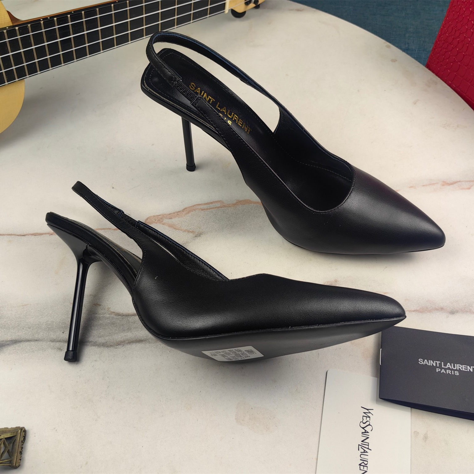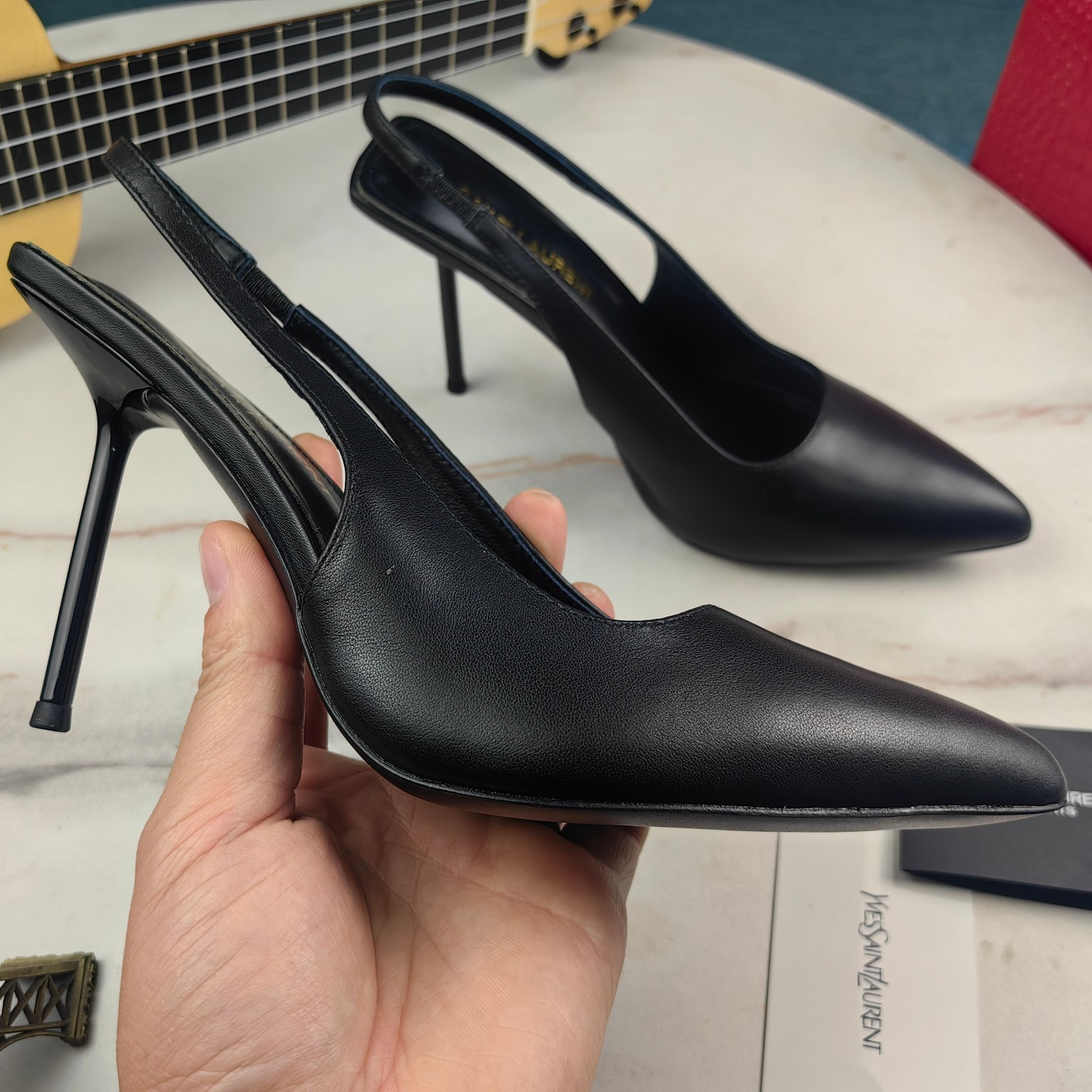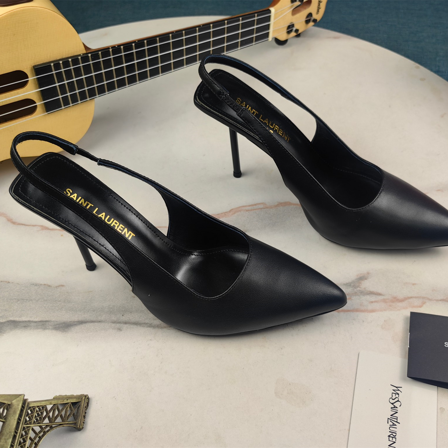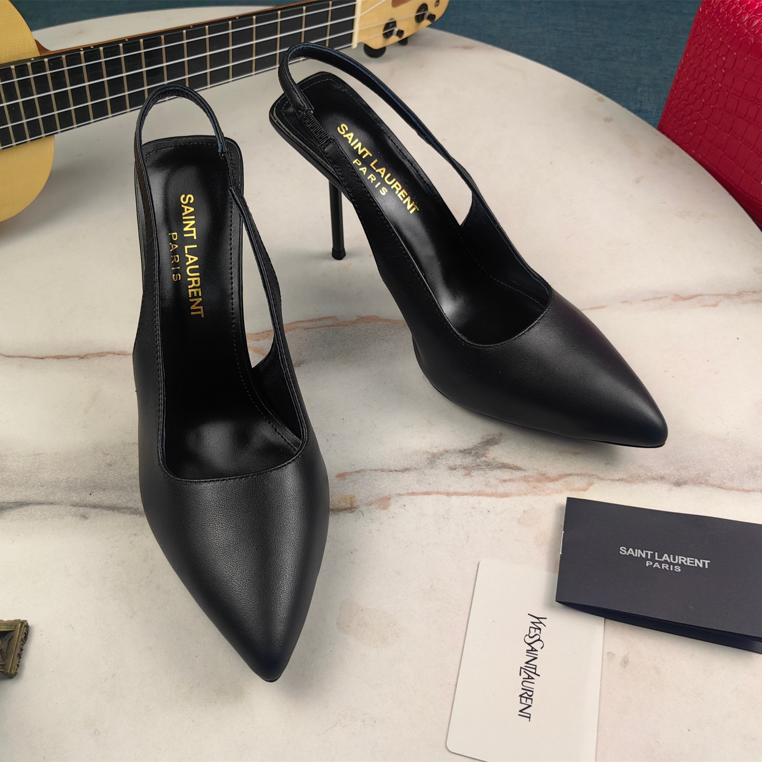 高仿YSL/聖羅蘭*Cherish系列755200A尖頭高跟鞋小牛皮黑免檢版