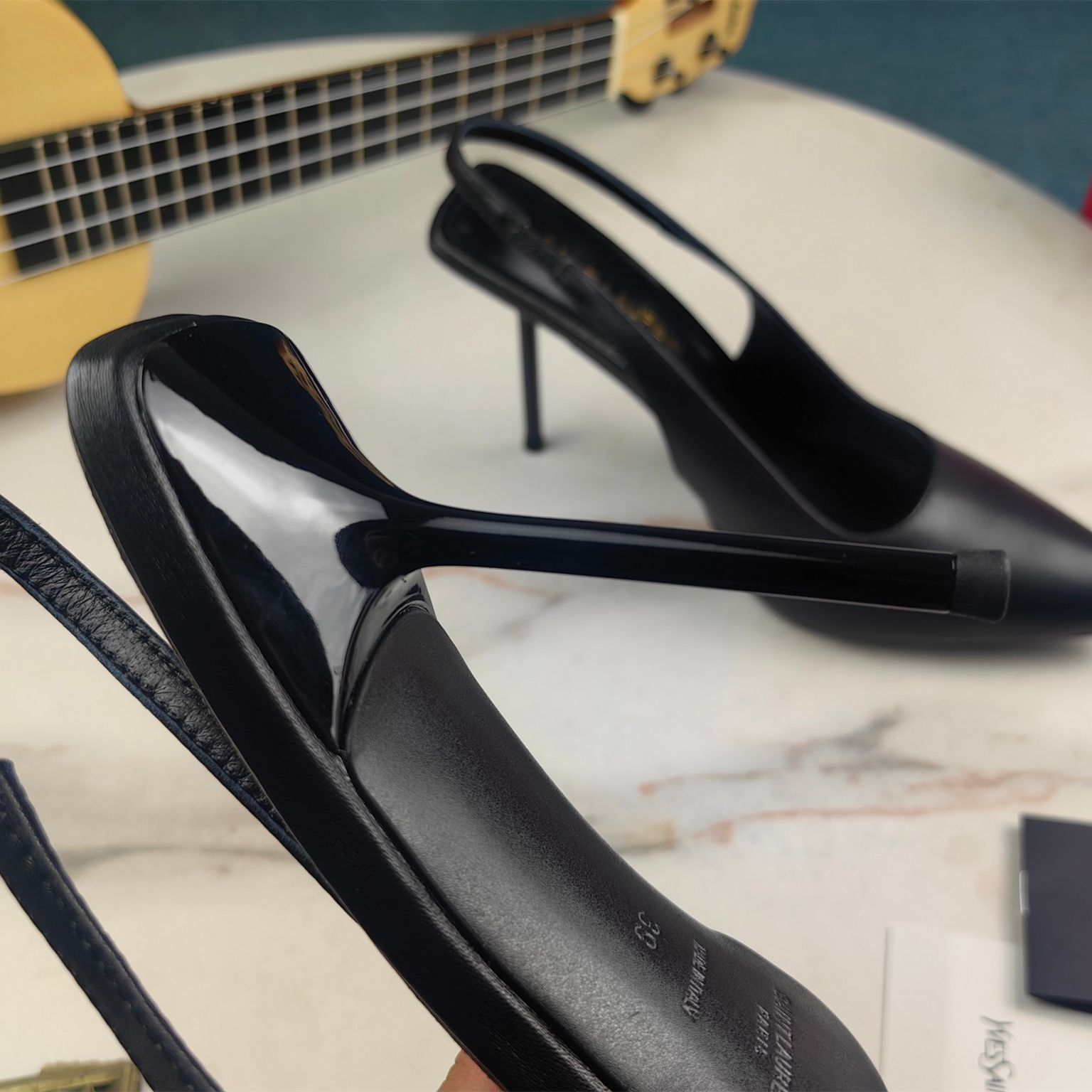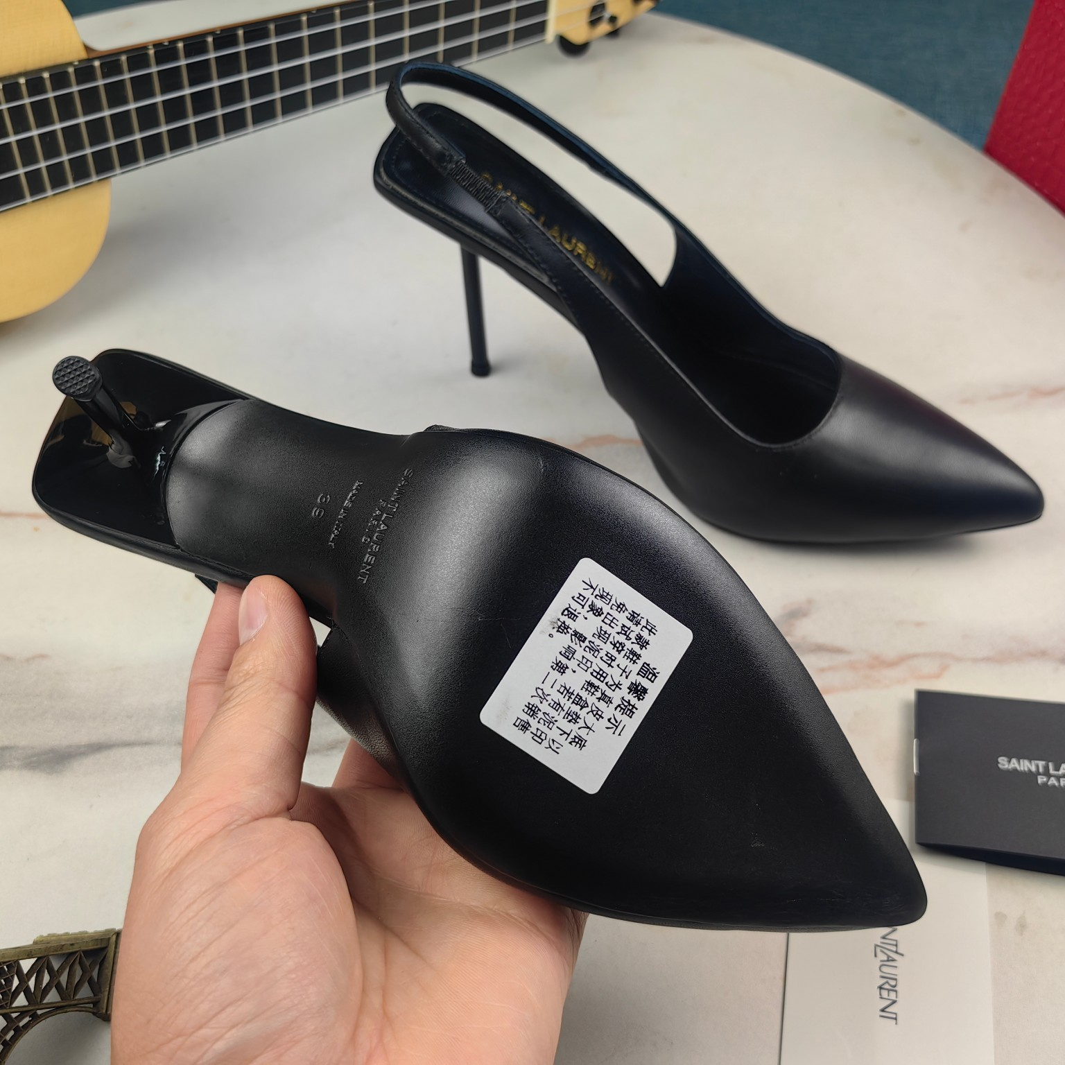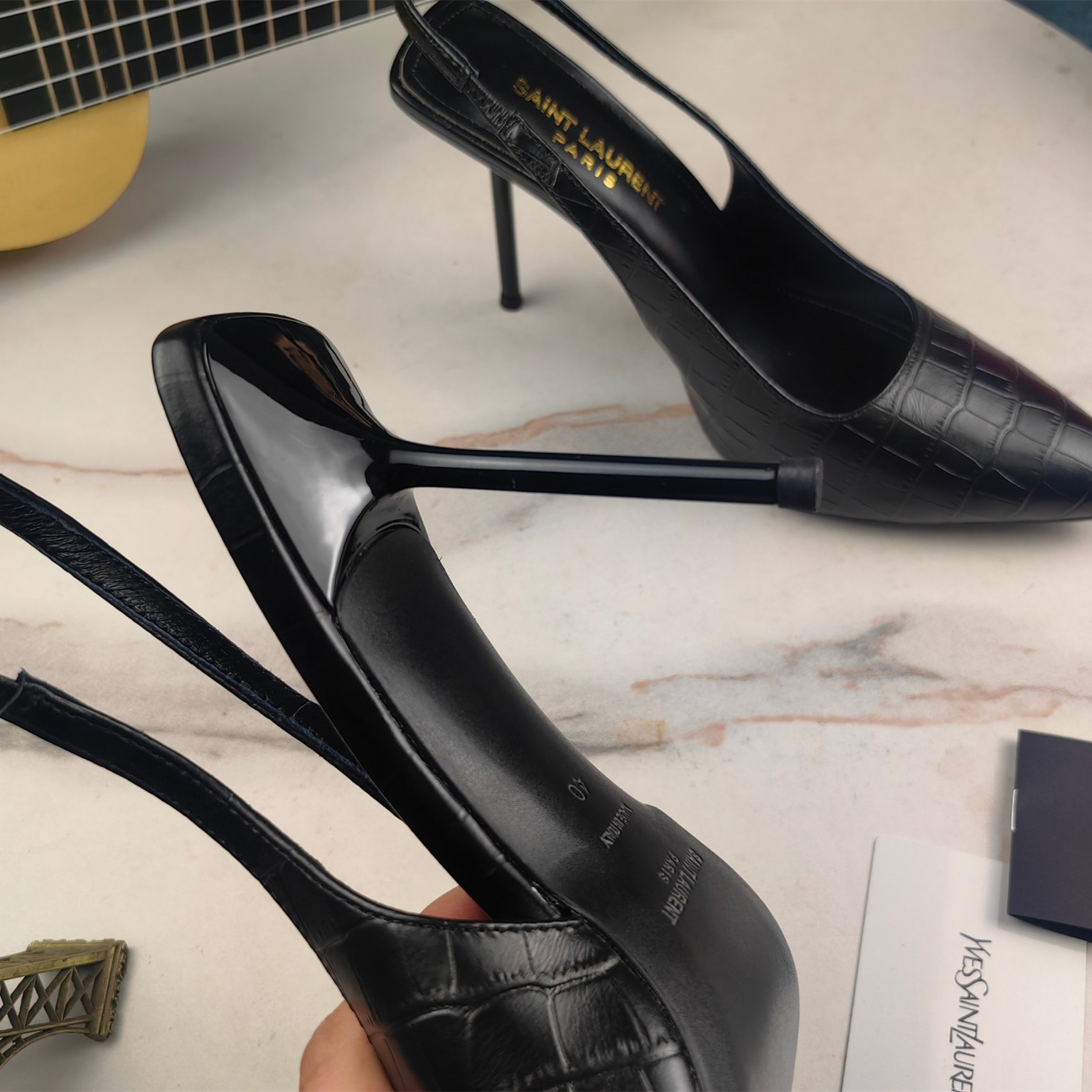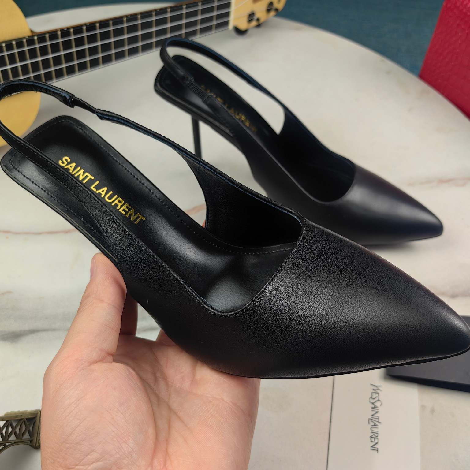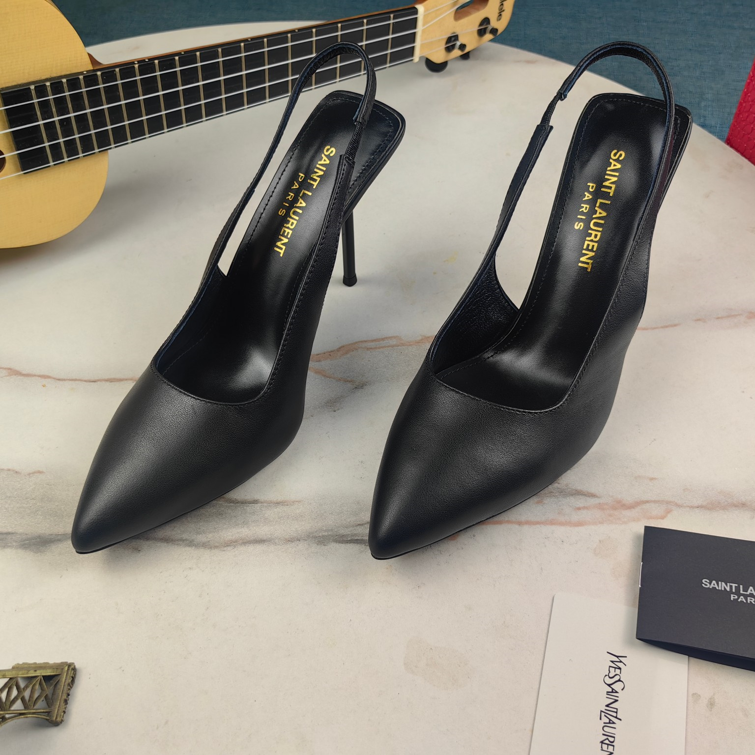 高仿YSL/聖羅蘭*Cherish系列755200A尖頭高跟鞋小牛皮黑免檢版