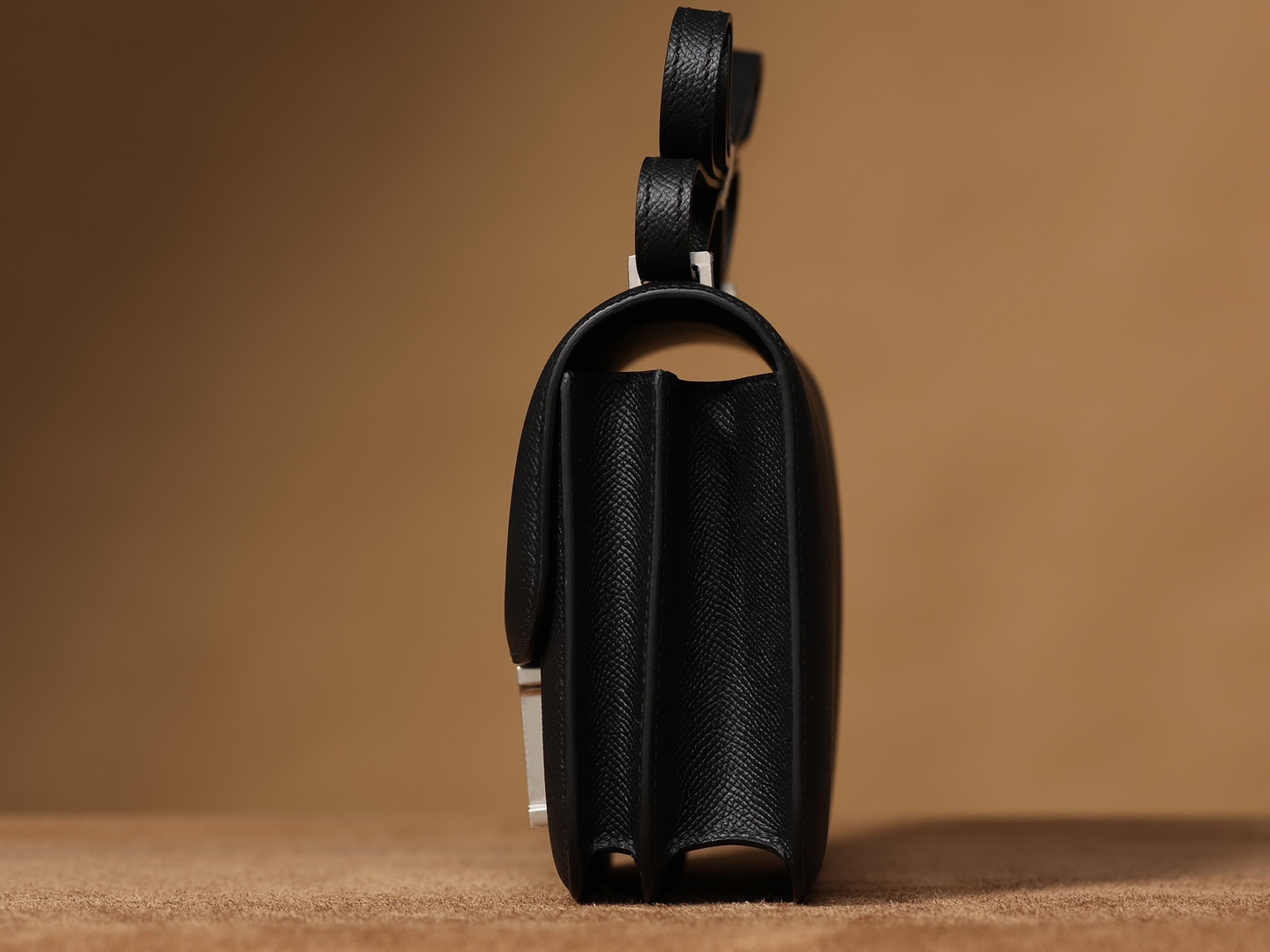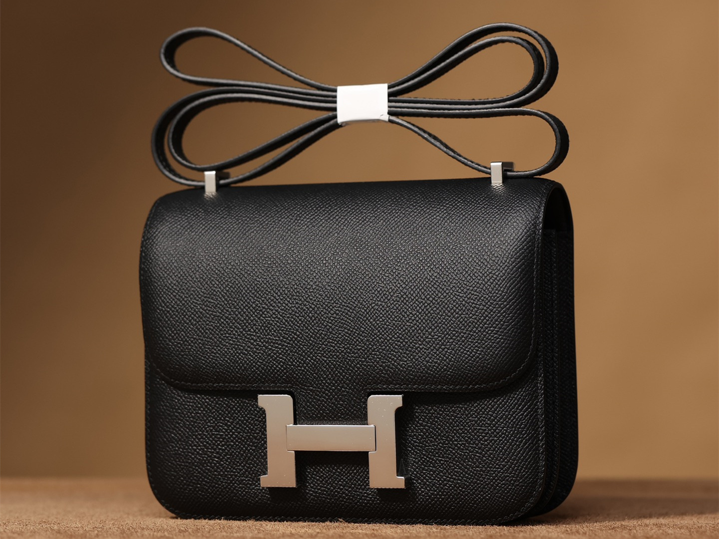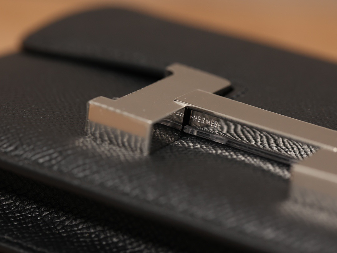 Hermes復刻包包Constance系列獨家工藝純手工製作,1:1還原正品細節處理.這款黑色銀扣採用的是Epsom牛皮,也是百分百純原皮質作為主材料,並且和愛馬仕專櫃用的都是同一種渠道真皮革.同時高仿Hermes使用Epsom牛皮也叫EP皮,在高仿市面上已經是一個統稱了.什麼是EP皮?是Hermes官方使用了一歲以上的成年公牛皮.皮革通過印壓工藝呈現手掌紋路,但細膩感和光澤度還是能夠保持到頂級質感.